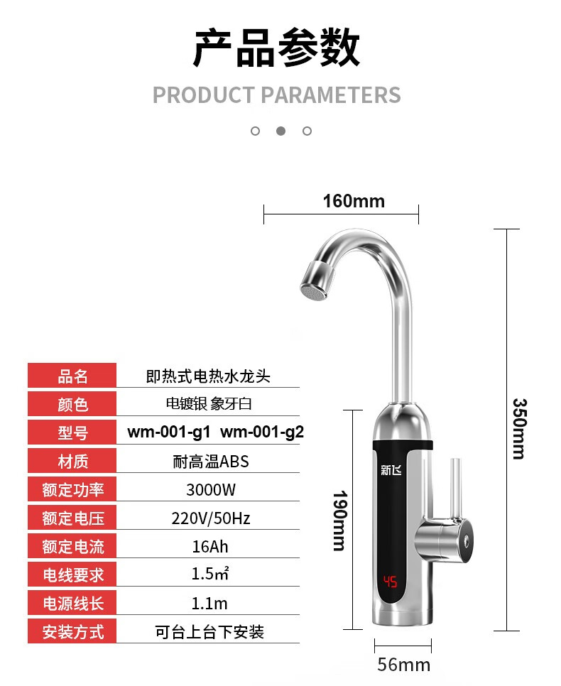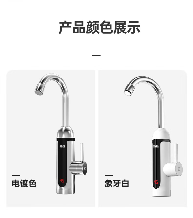 Xinfei (Frestec) electric hot water faucet instant hot rapid heating electric hot water faucet kitchen water heater tap water bathroom digital display lower water inlet electroplating white digital display lower water inlet + ordinary plug