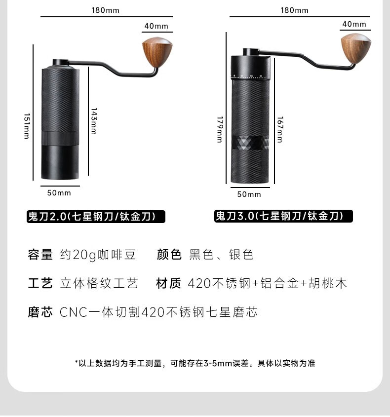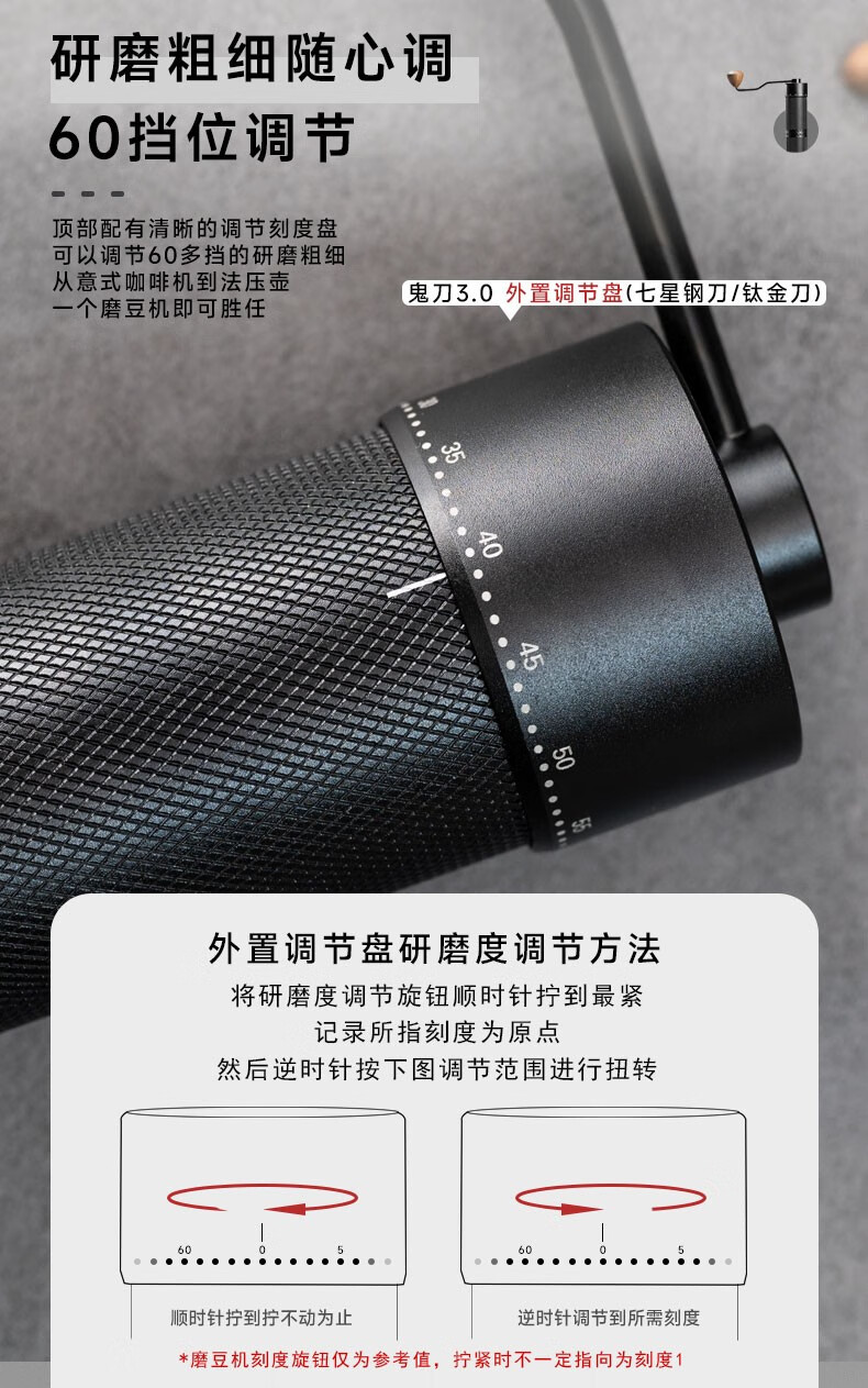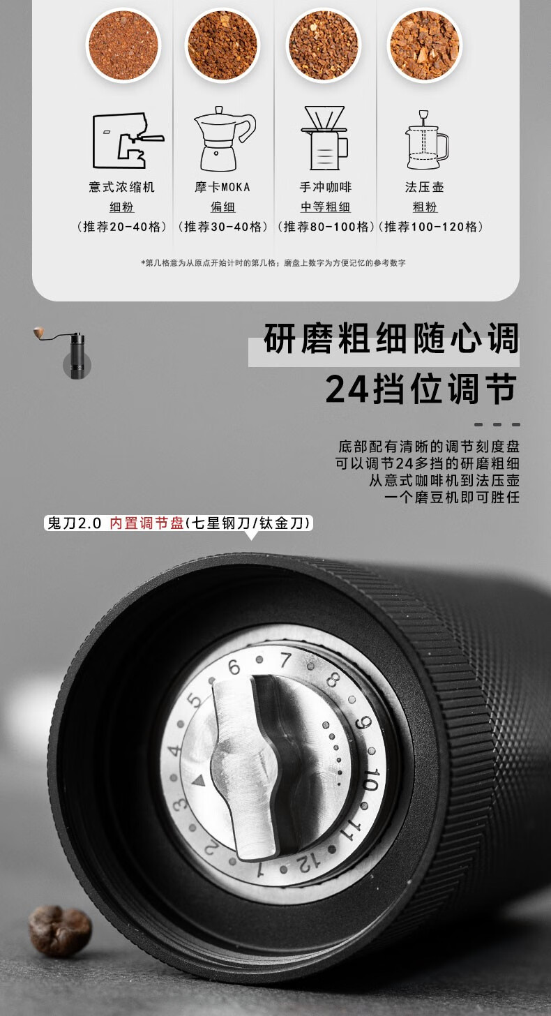 Yeweika Y1 Ghost Knife double bearing hand grinder titanium stainless steel grinder full alloy body hand coffee grinder Ghost Knife SE (five-star stainless steel grinding core)