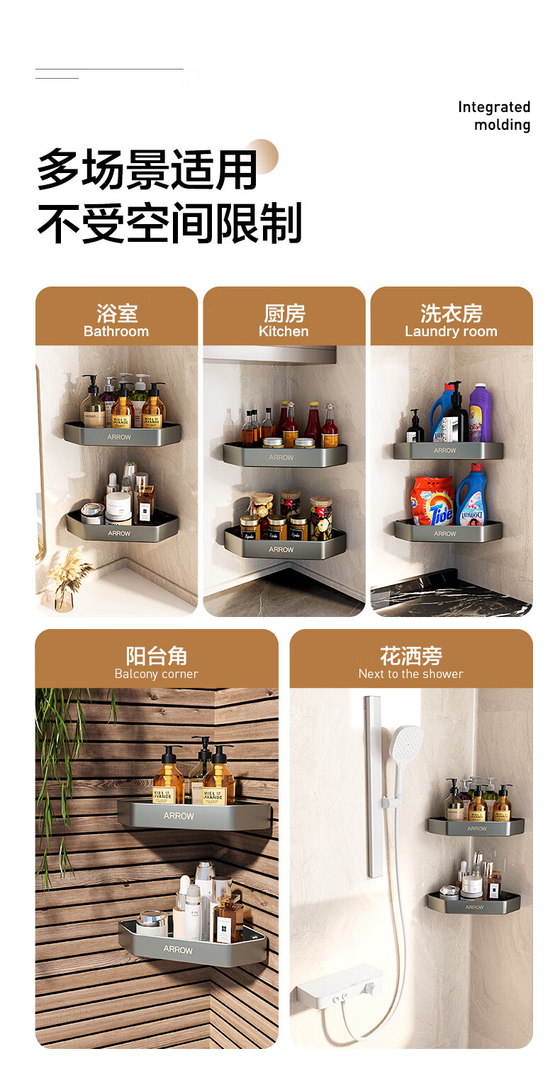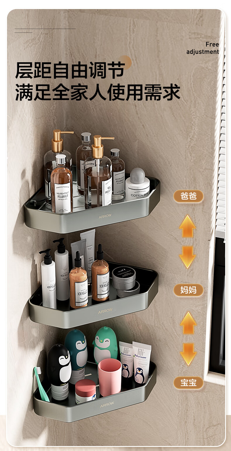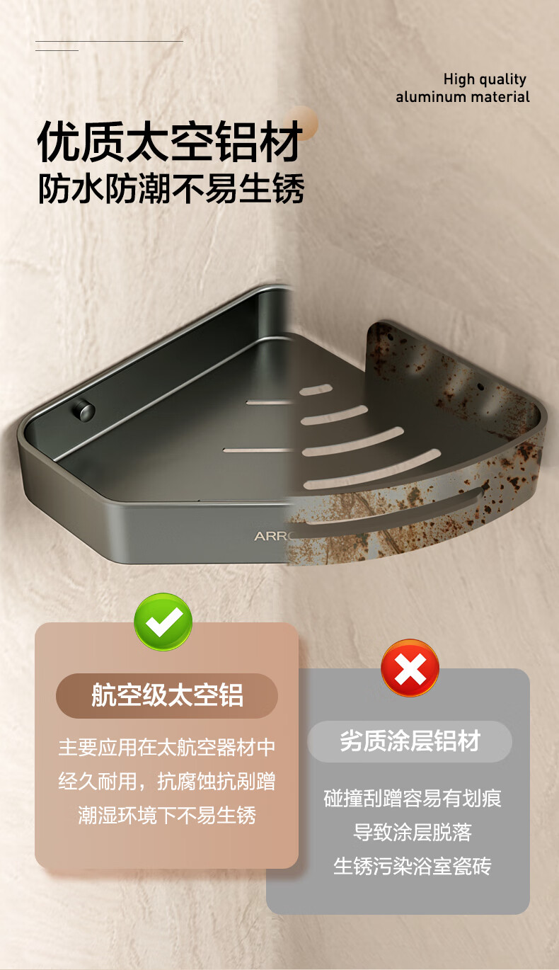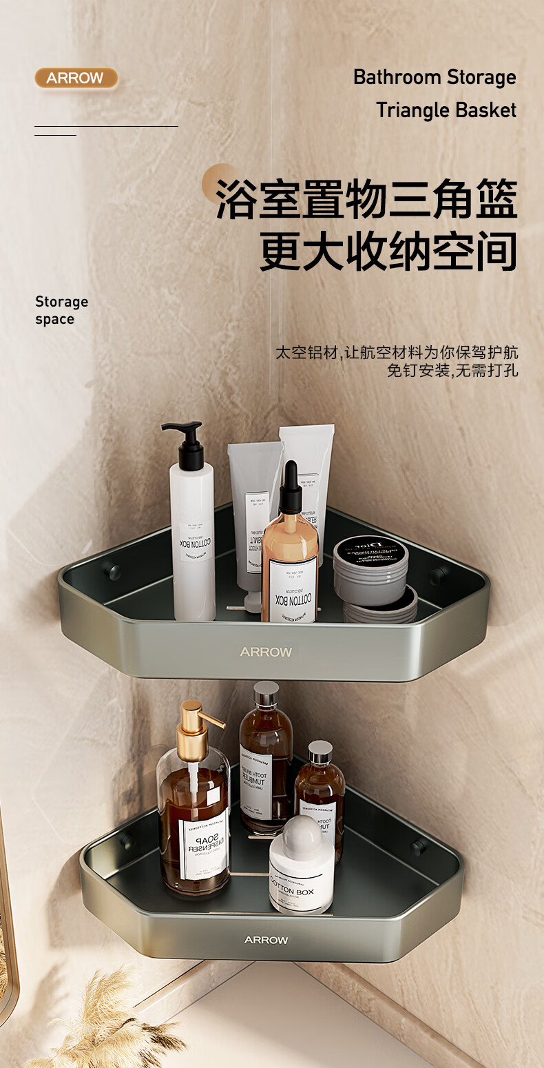 Wrigley bathroom triangle rack space aluminum bathroom rack corner basket bathroom triangle rack shower room pendant classic-gun gray double layer triangle basket
