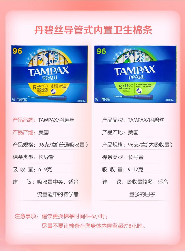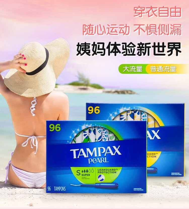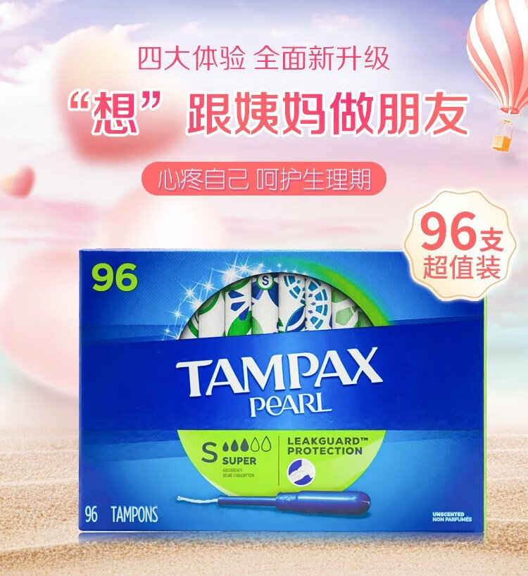 TAMPAX tampon catheter-type non-sensory built-in cotton swab, pure cotton sanitary napkin, invisible menstrual period 96-pack, non-fluorescent tampon (large flow)