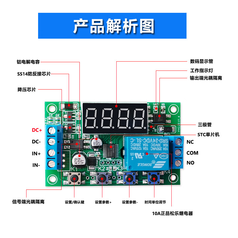 YYC-2S pulse trigger delay time relay module power off cycle timing circuit switch millisecond YYC-2S DC12V with shell + metal button