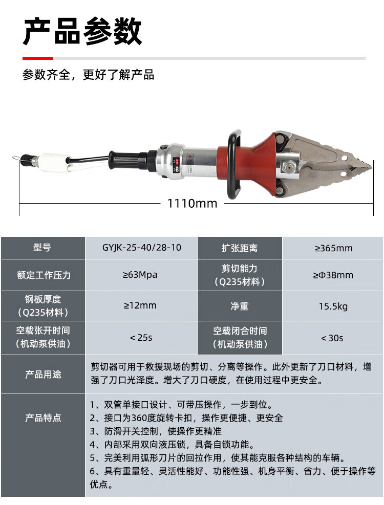 MNZe fire hydraulic demolition tool set shear car demolition scissors multifunctional shear and expansion pliers steel pipe steel bar iron sheet scissors GYKZ-42-62/710 expander with detection report J