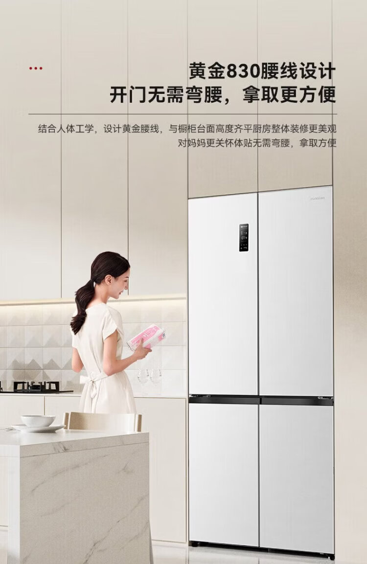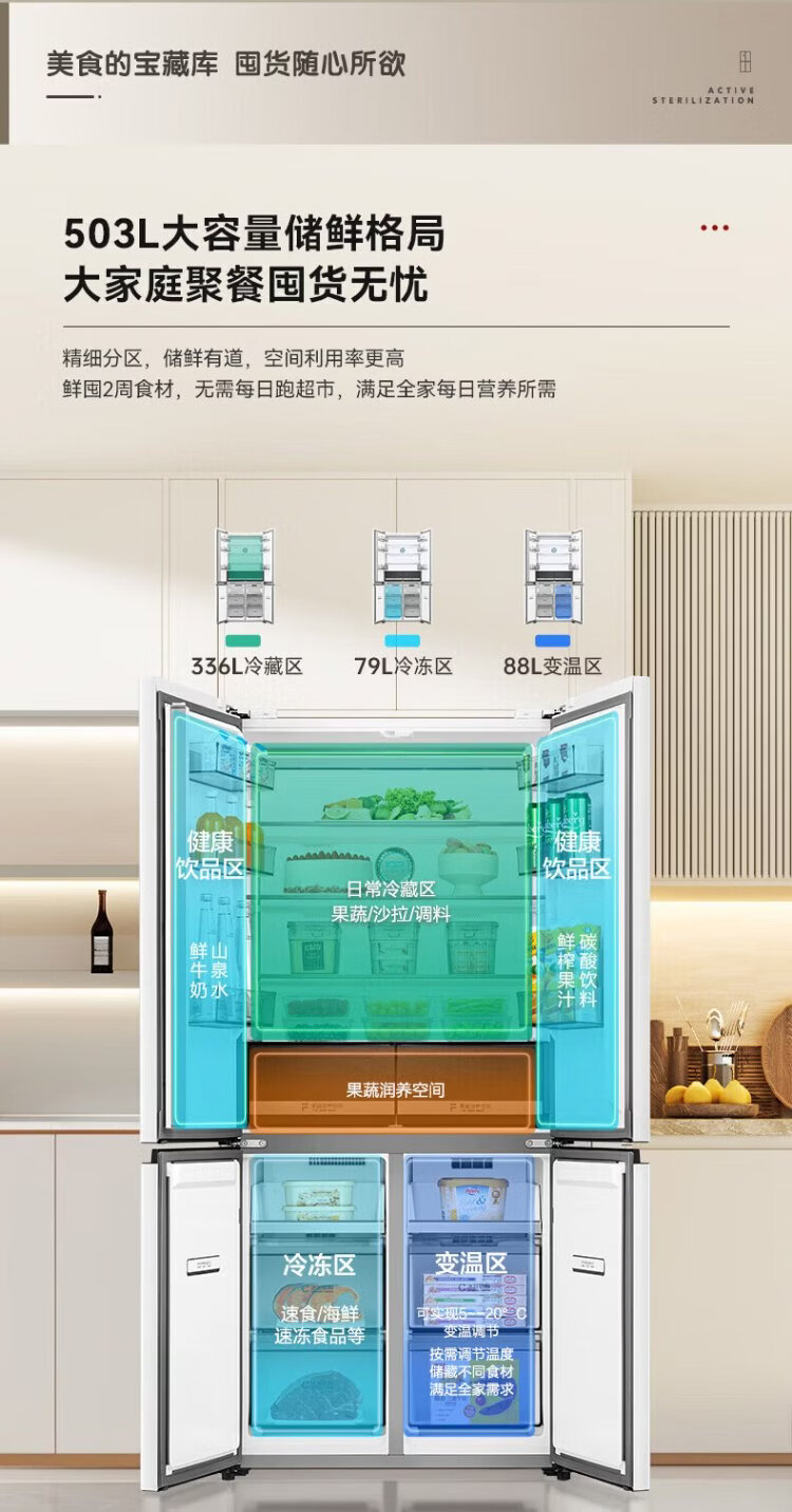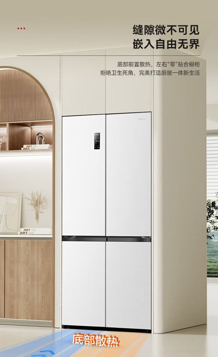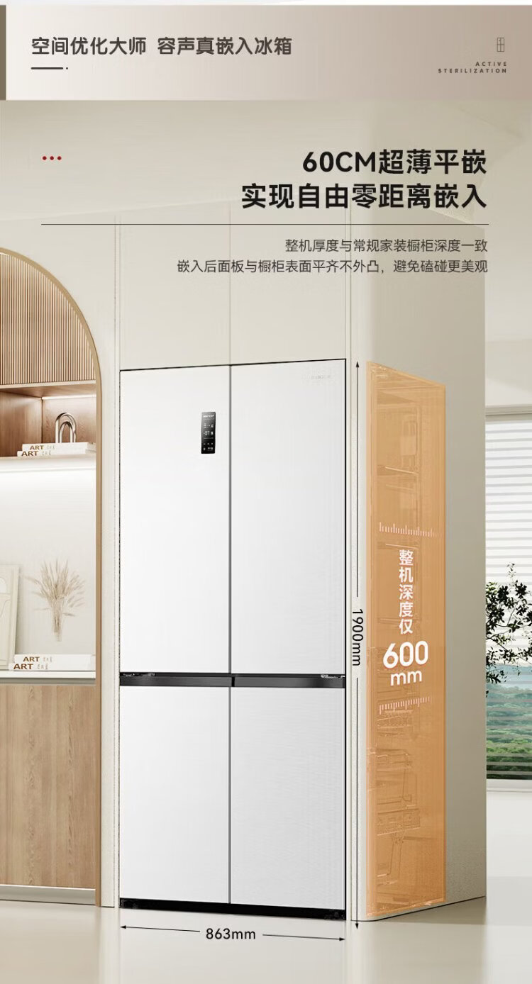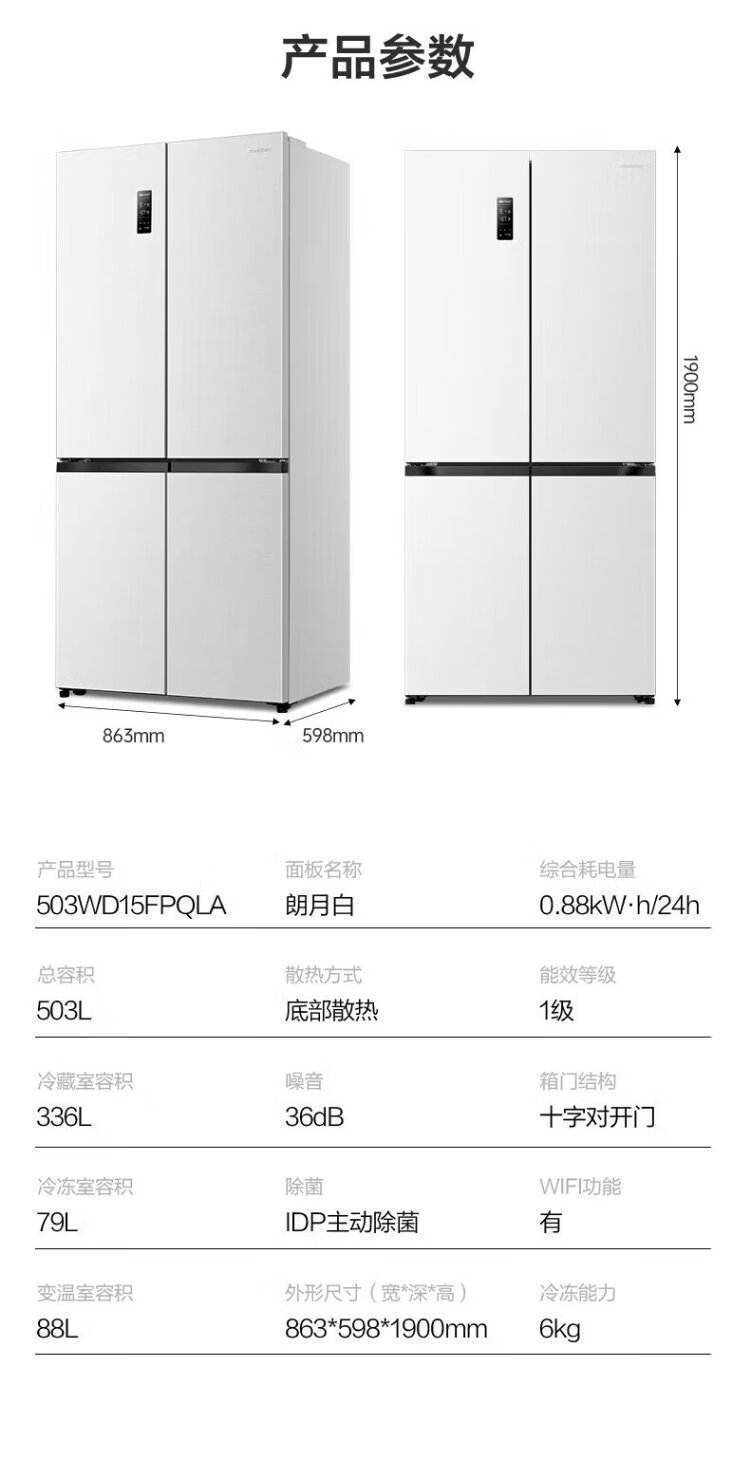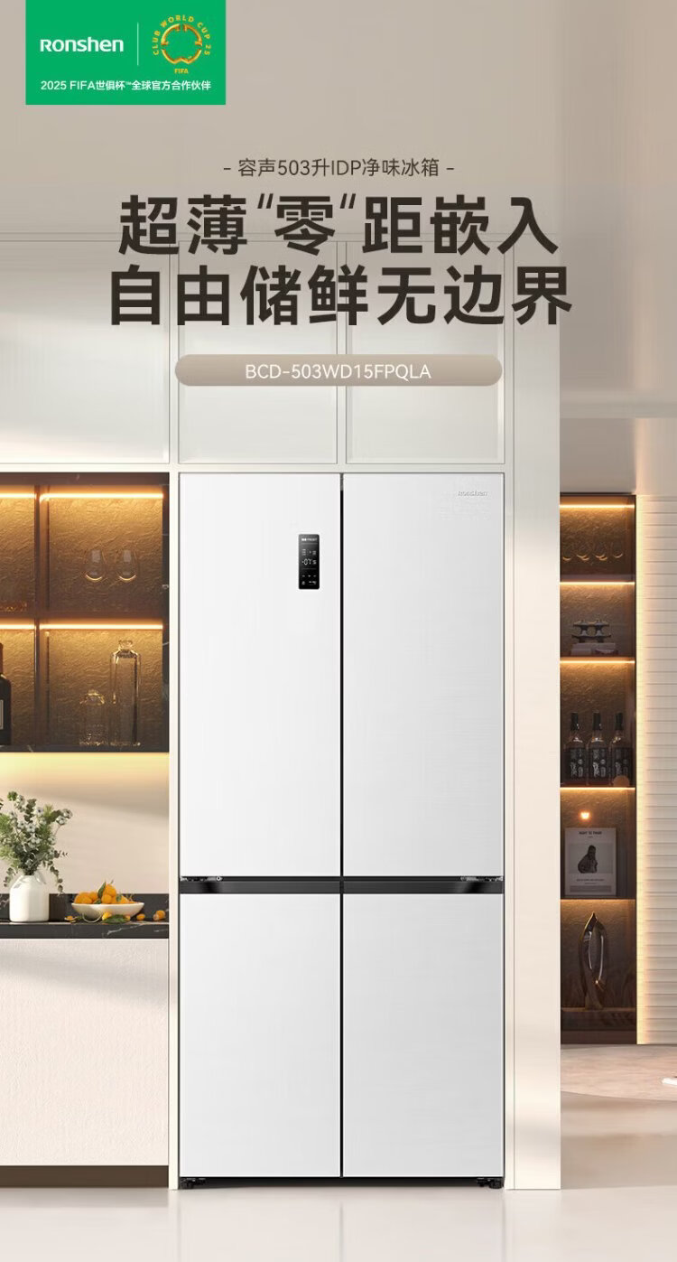 Rongsheng 503pro zero-embedded cross double-open four-door IDP active sterilization extremely fast odor clean ultra-thin refrigerator household first-class energy efficiency variable frequency air-cooled frost-free refrigerator subsidy BCD-503WD15FPQLA white