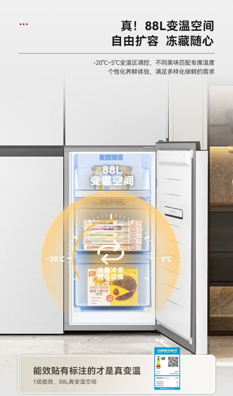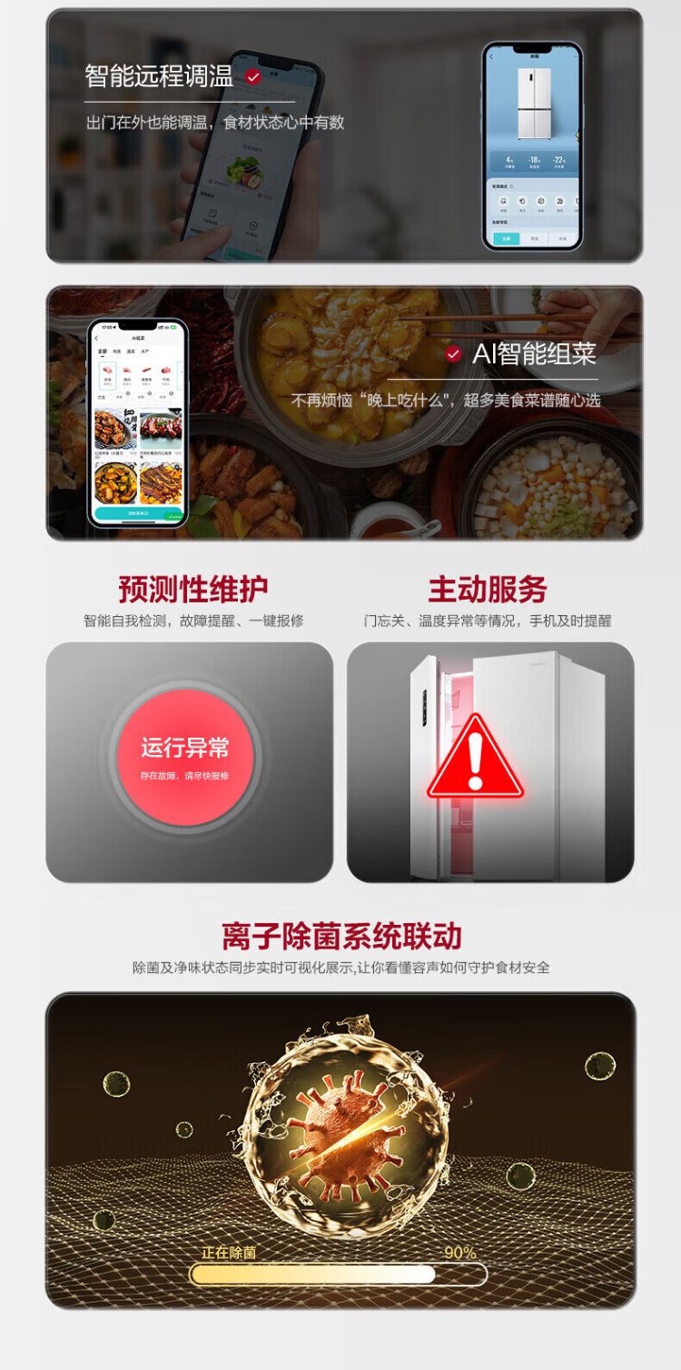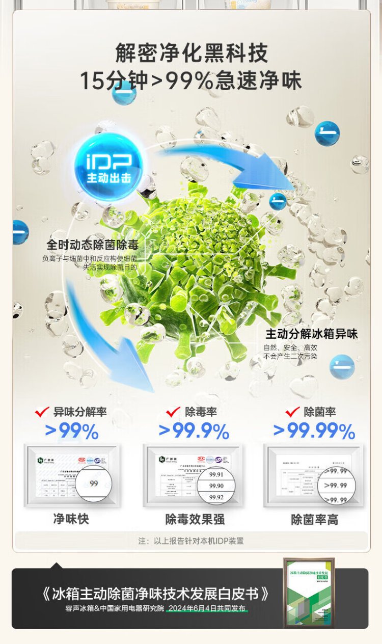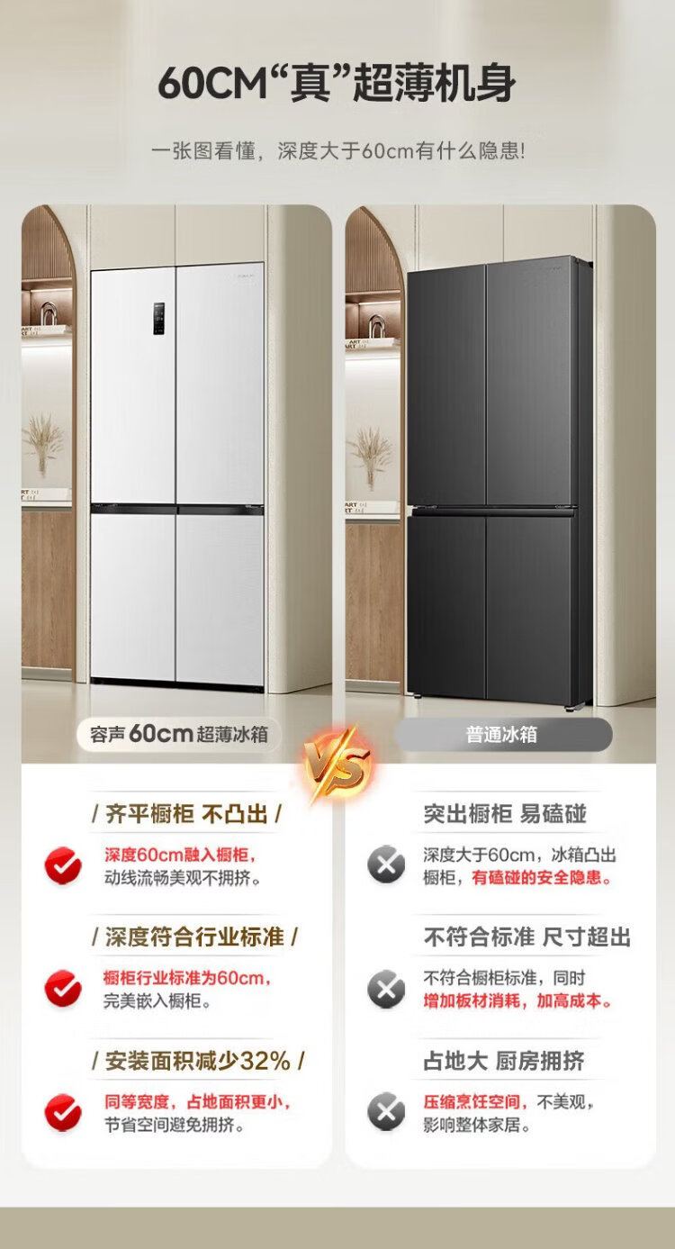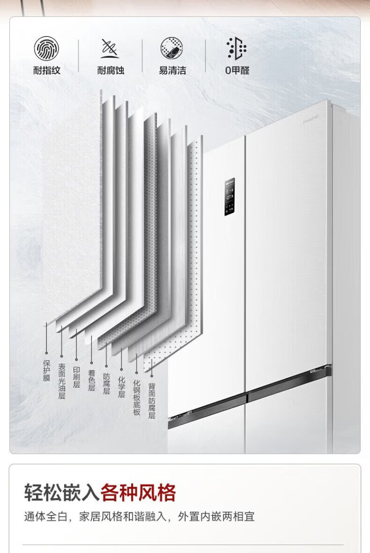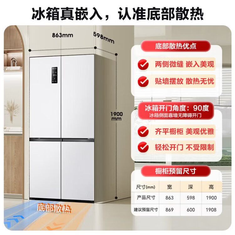 Rongsheng 503pro zero-embedded cross double-open four-door IDP active sterilization extremely fast odor clean ultra-thin refrigerator household first-class energy efficiency variable frequency air-cooled frost-free refrigerator subsidy BCD-503WD15FPQLA white