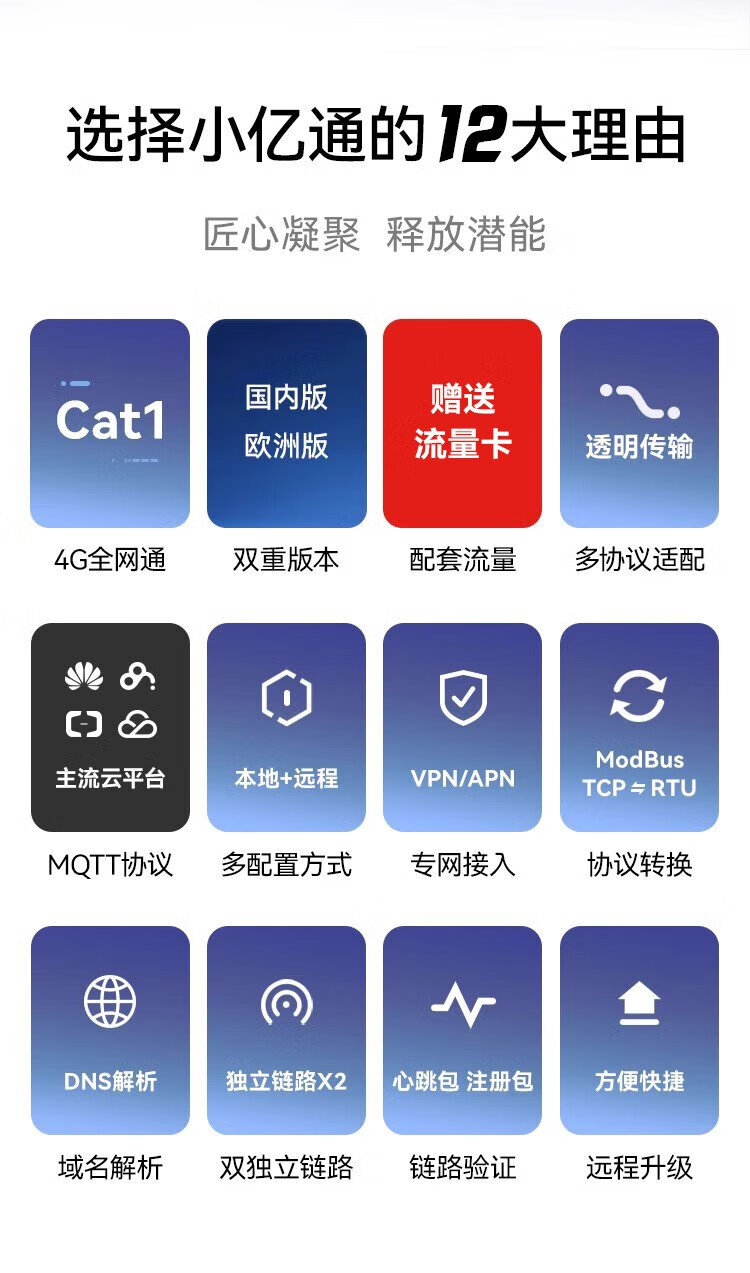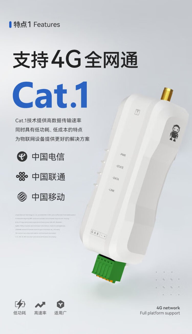 Ebyte 4GDTU module IoT communication RS485/232 transparent transmission full Netcom CAT1 controller MQTT/ModBus gateway E840-DTU (EC05-485) + antenna + traffic card
