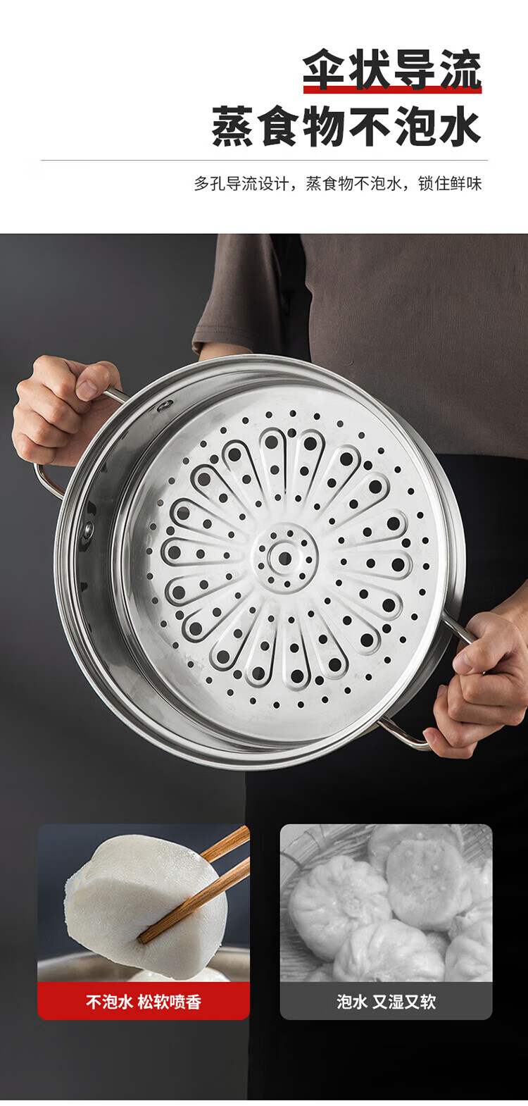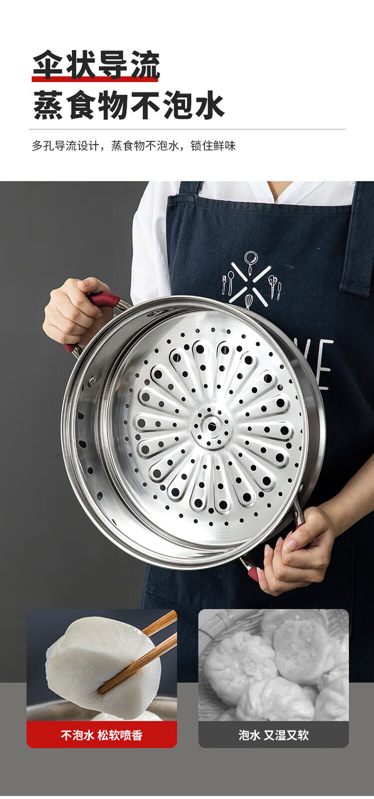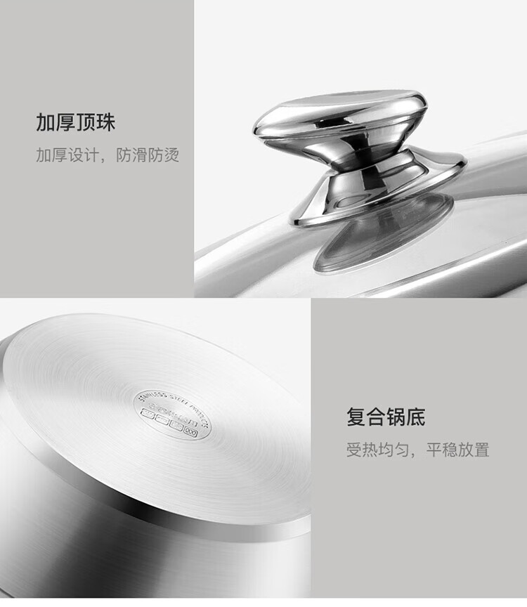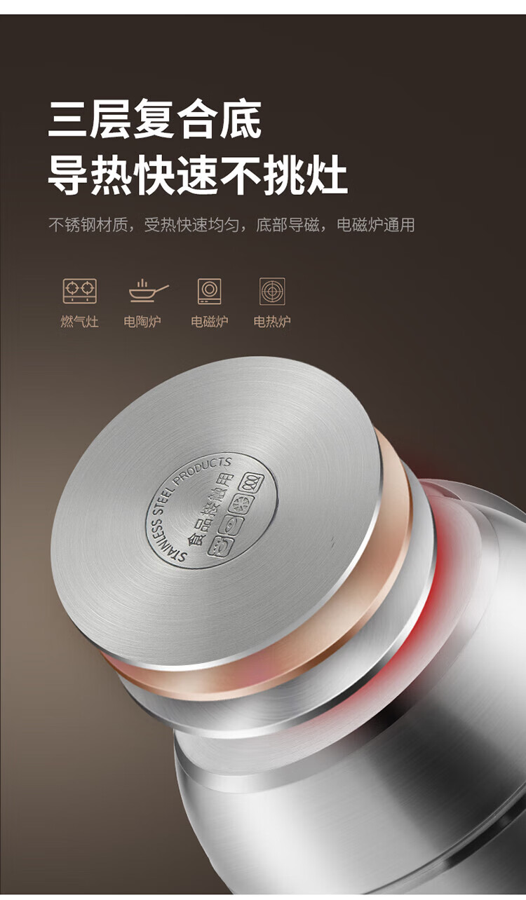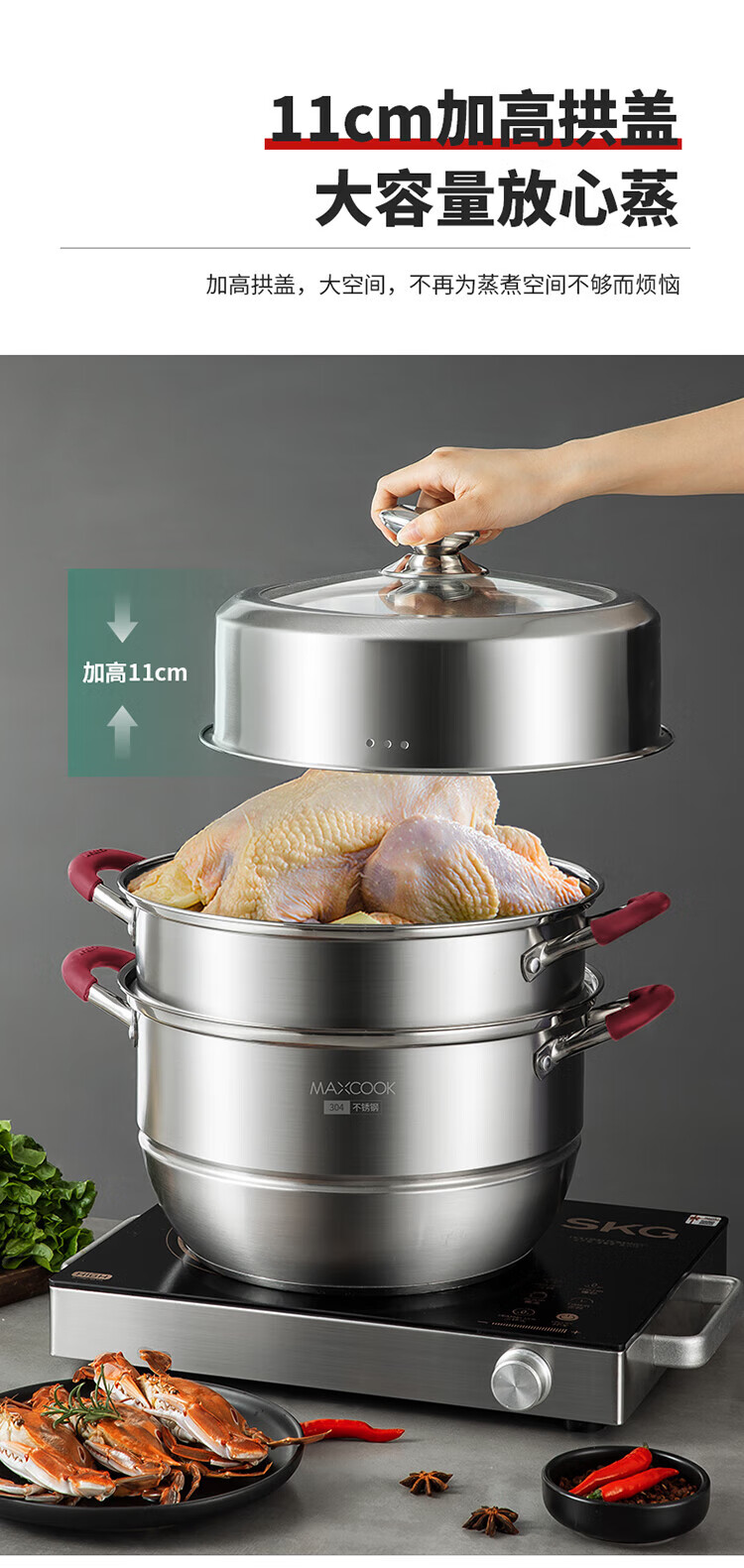 MAXCOOK anti-scalding steamer 304 stainless steel multi-layer steamer thickened multi-bottom soup pot gas electric three-layer MCZ5205 34cm