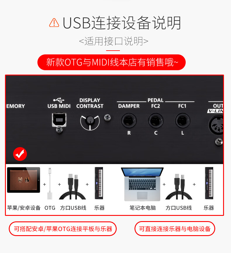 Aprilbuy is suitable for The ONE Yamaha Casio Roland Mohsen Xinyun One Pearl River Electronic Organ Electric Piano Data Cable Electric Drum MIDI Keyboard Mobile Phone Internal Recording Cable 1.5 Meter Three-in-One Apple TypeC Android TOM Cable