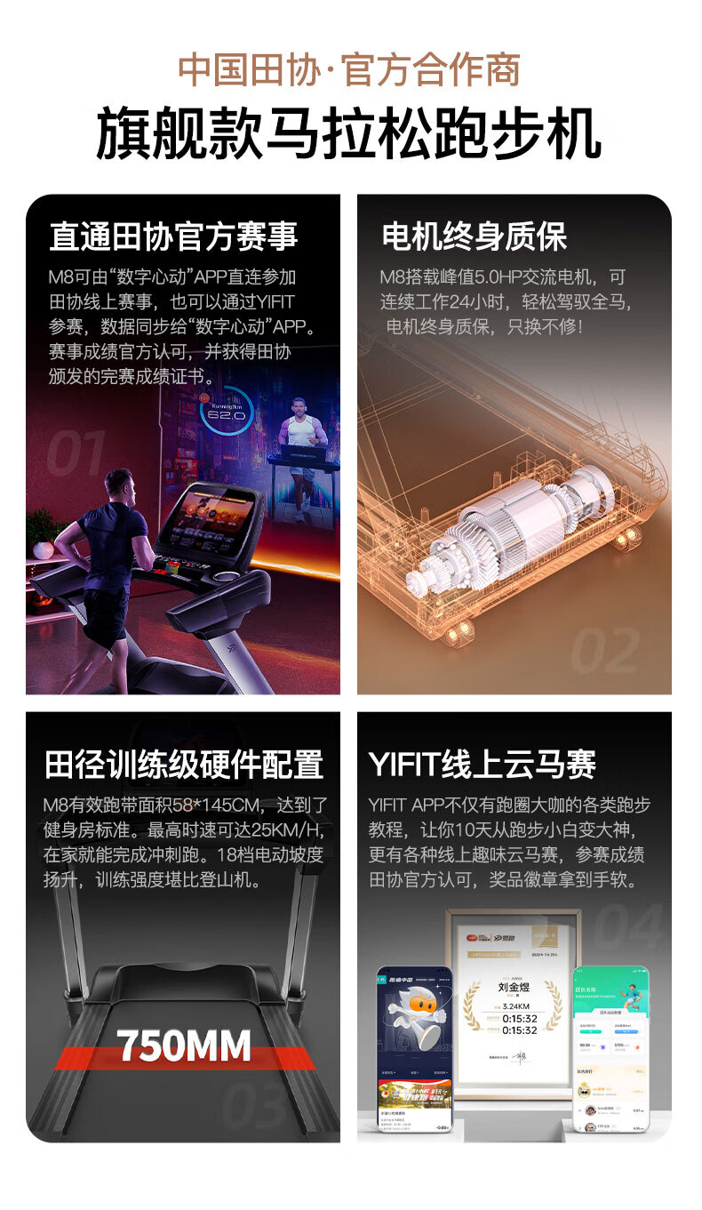 YPOO Marathon Treadmill Home Commercial Intelligent Shock Absorption High-end Foldable Gym Fitness Equipment M8 Marathon Preparation Model-21.5-inch Color Screen