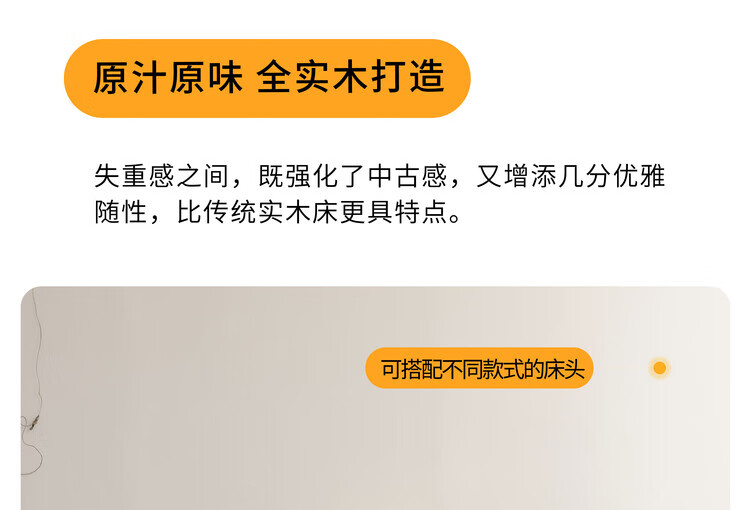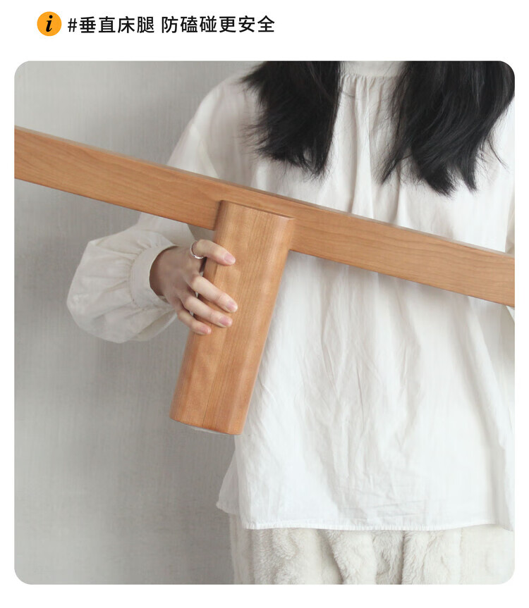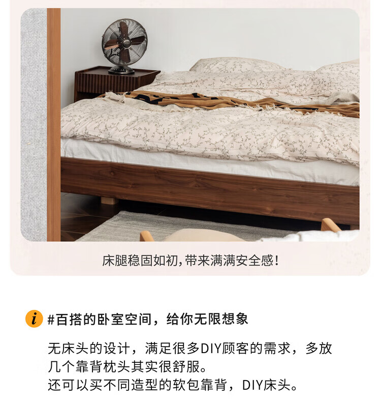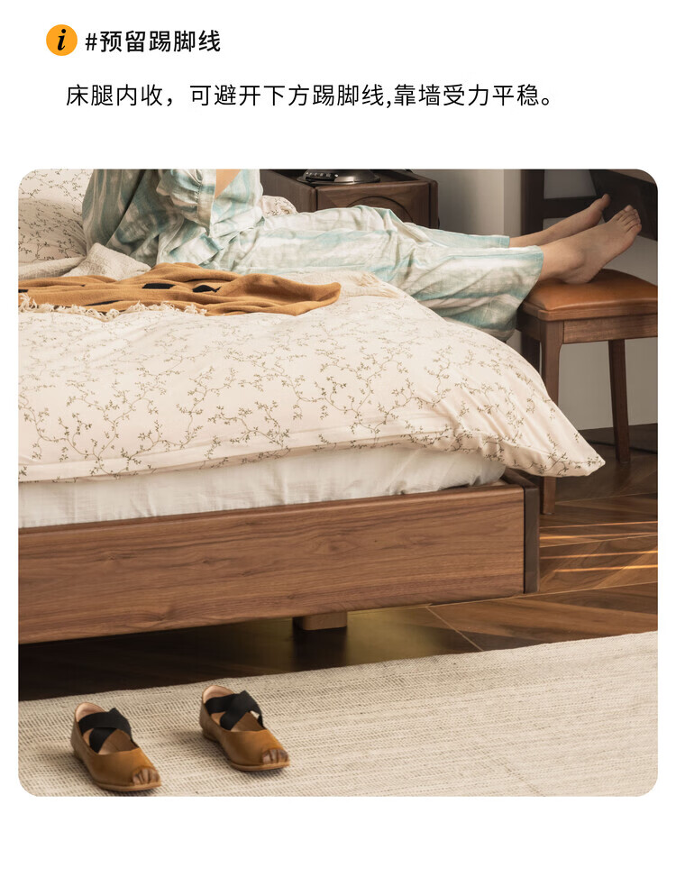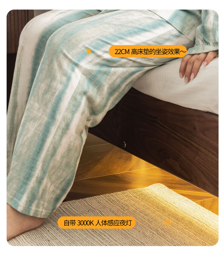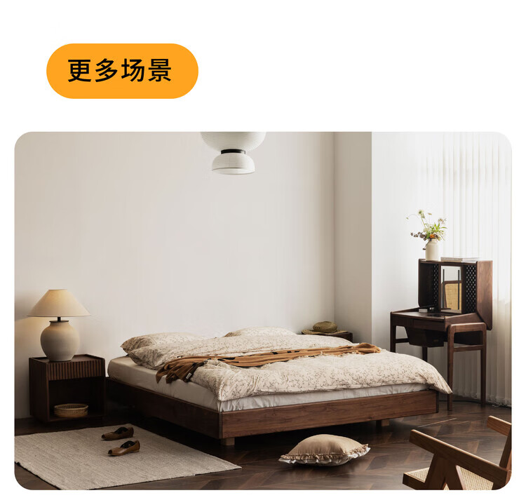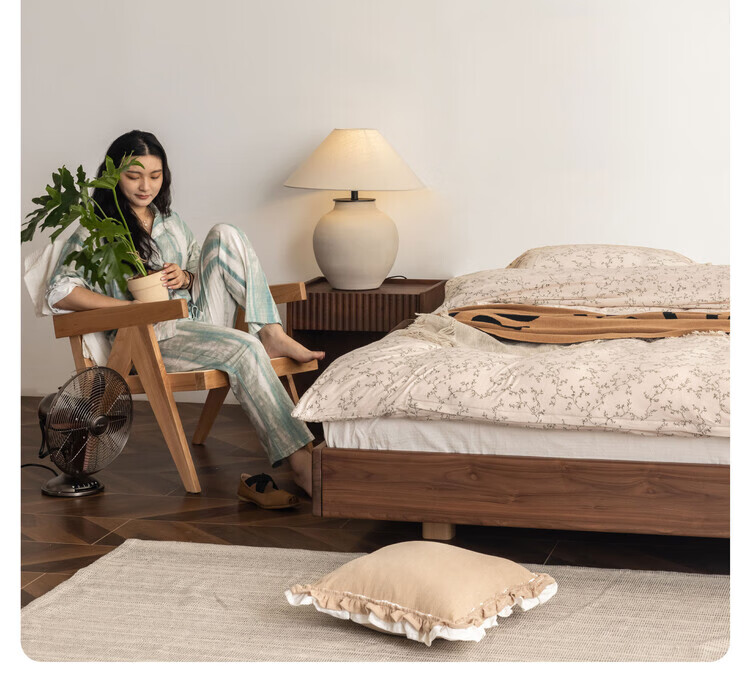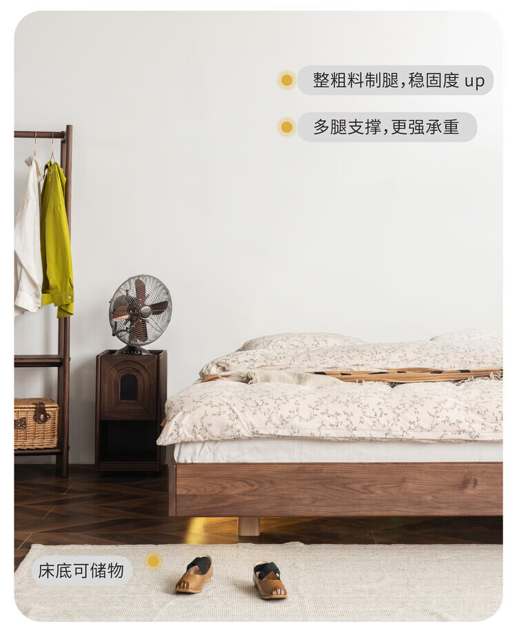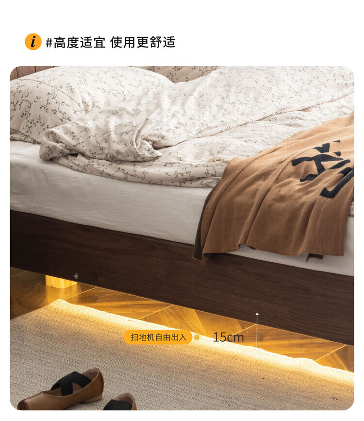 Wuying Japanese-style floating bed without headboard black walnut solid wood double bed Nordic backless tatami short bed with lights three-sided red oak + pine rib frame ready stock 1200mm*2000mm frame structure