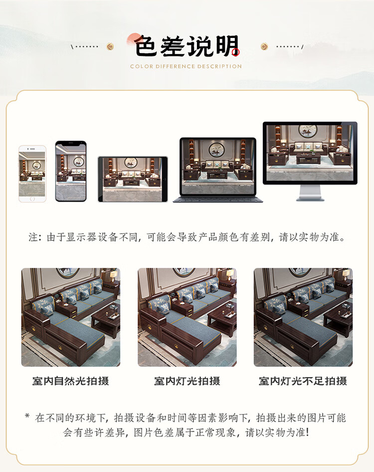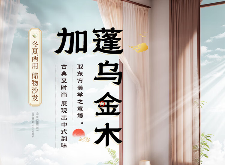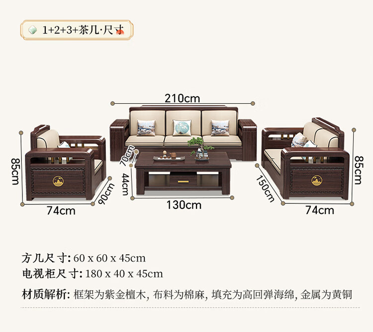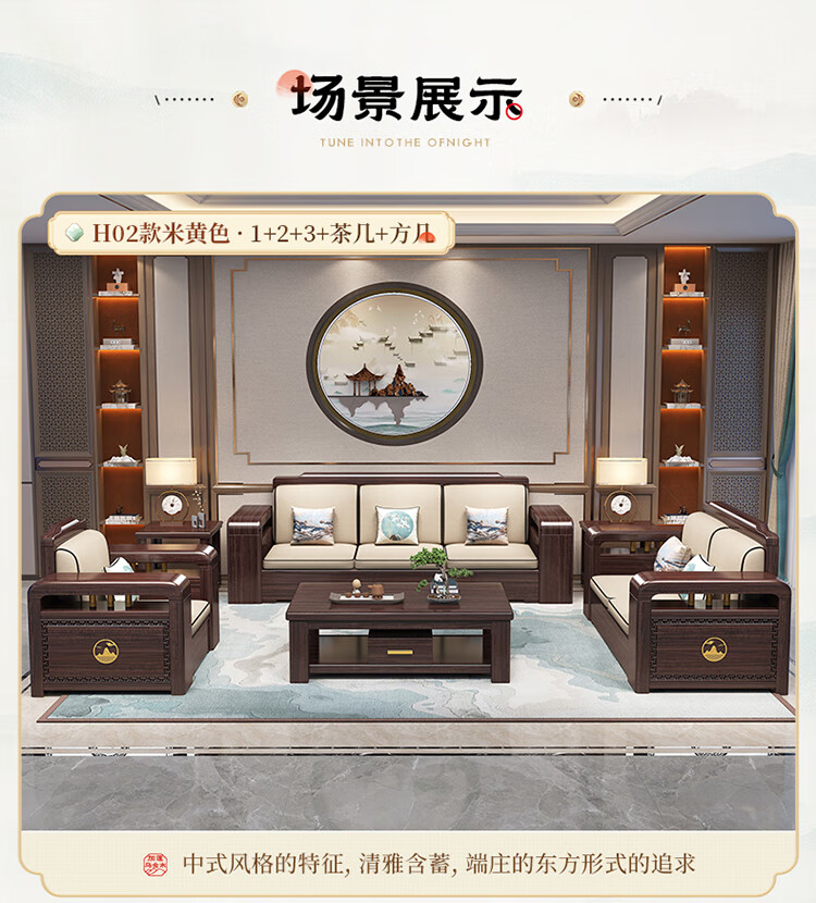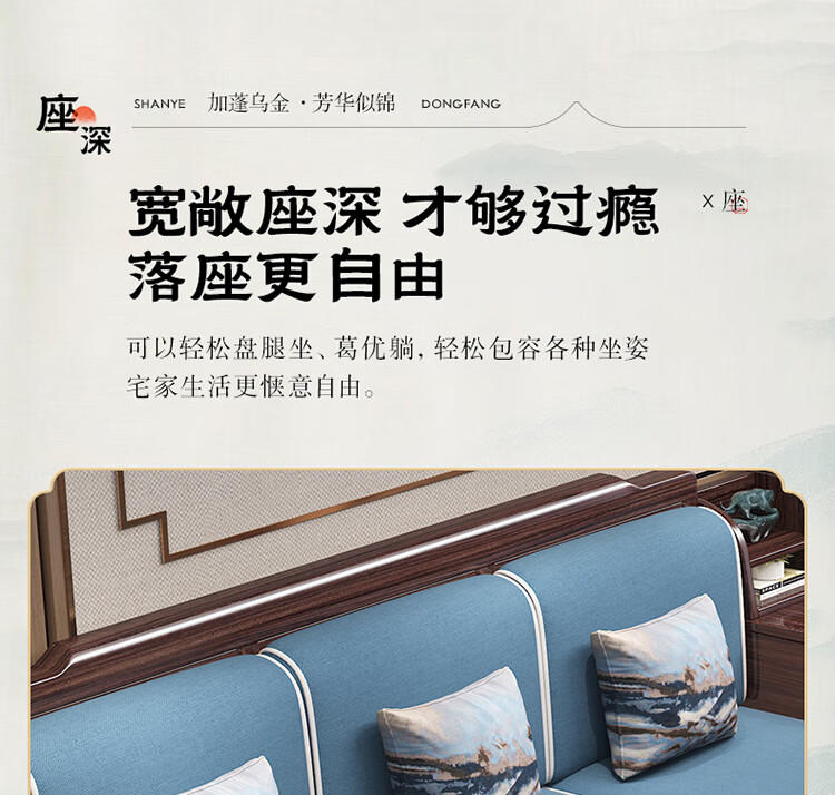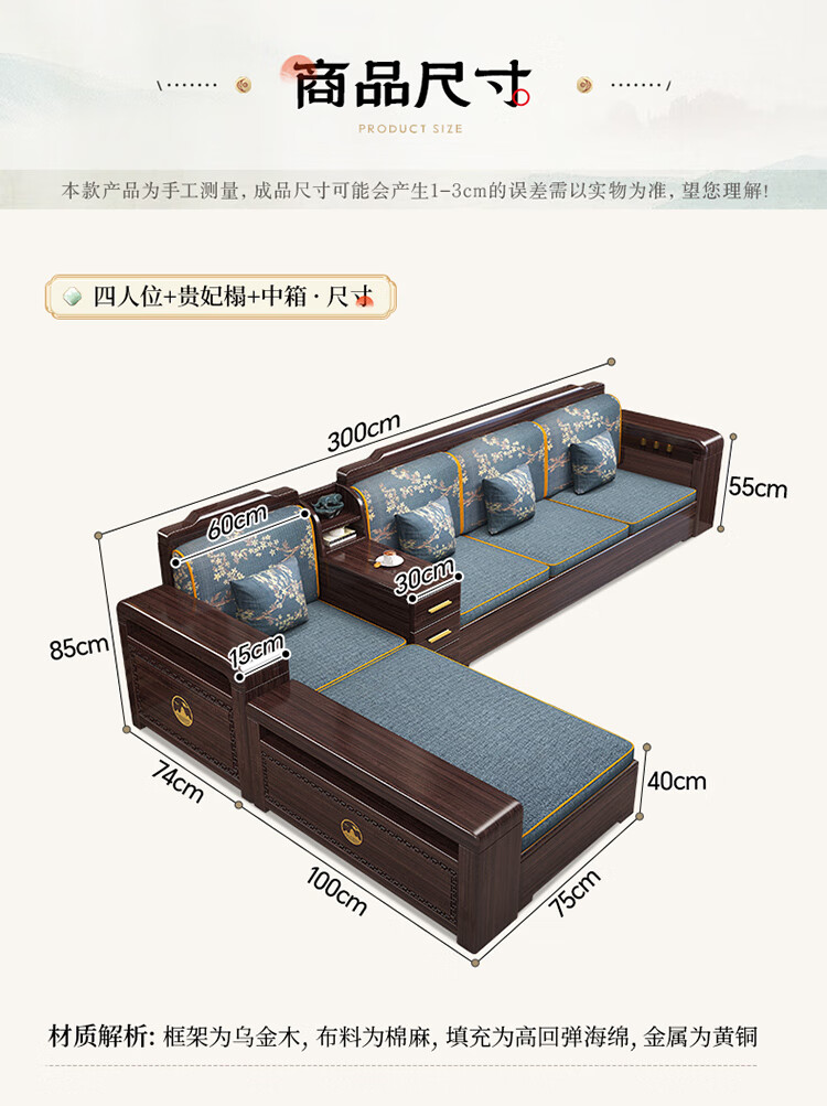 Huiwangfu black gold solid wood sofa new Chinese style modern simple living room sofa combination winter and summer dual-use storage wooden sofa 5 people + imperial concubine couch + middle box