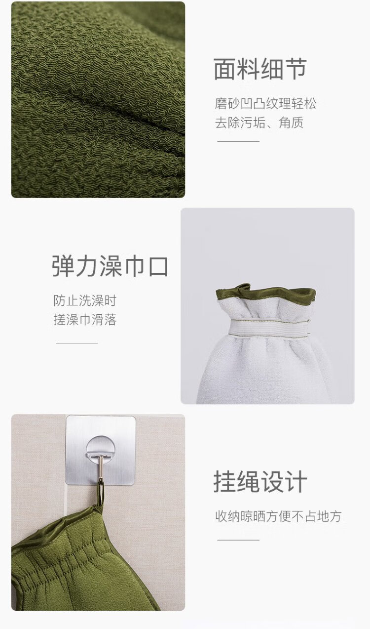 Gagarin (JAJALIN) bath towel, bath towel, back rub, double-sided household powerful mud rub and ash artifact, coarse sand for men, fine sand for women, popular style, green bath towel