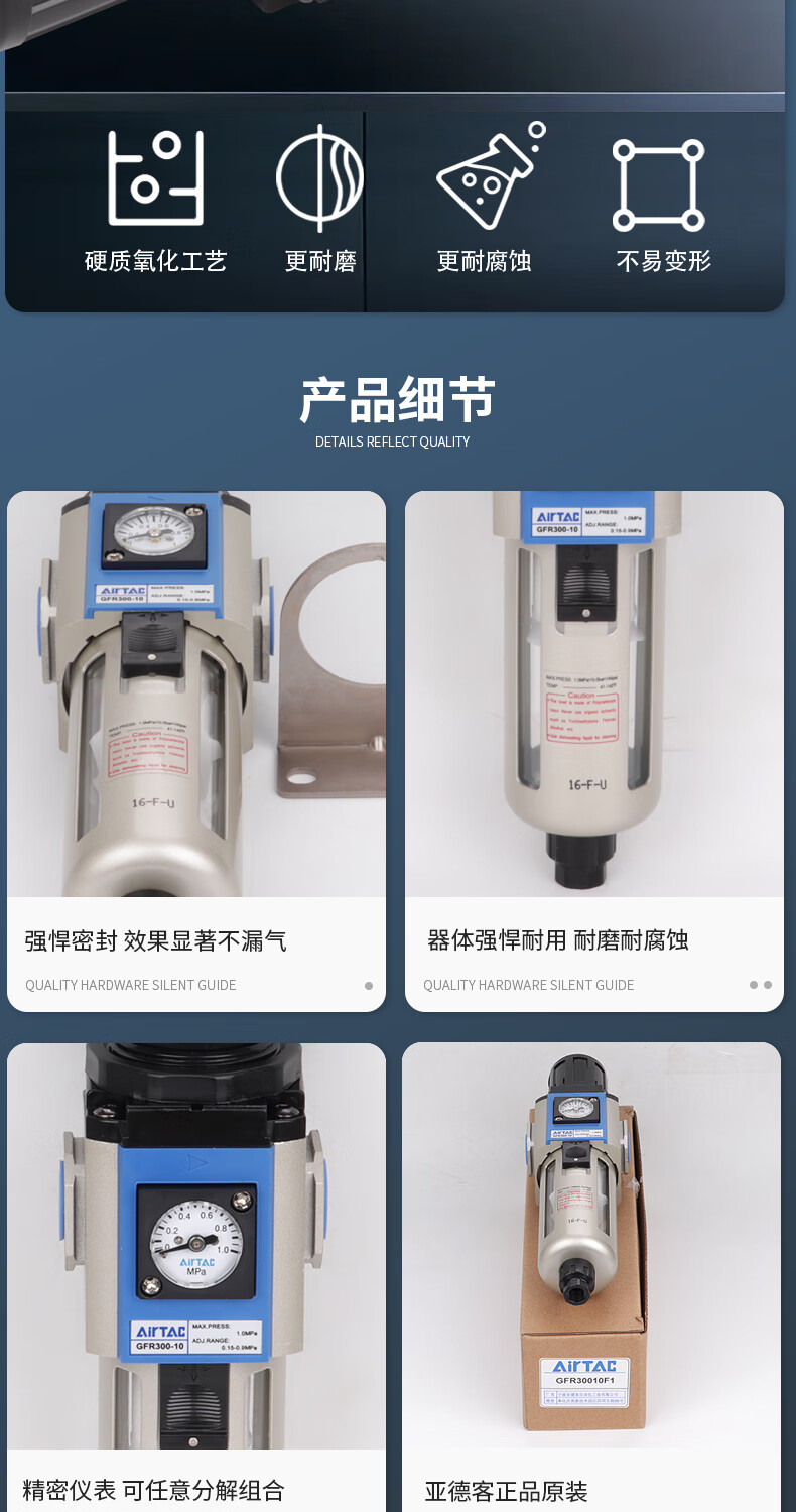 Airtac air source processor air pressure regulating filter GFR200-0608 300-10 400-15 600-25AF1 GFR300-15F1 (differential pressure drainage) 4-point interface