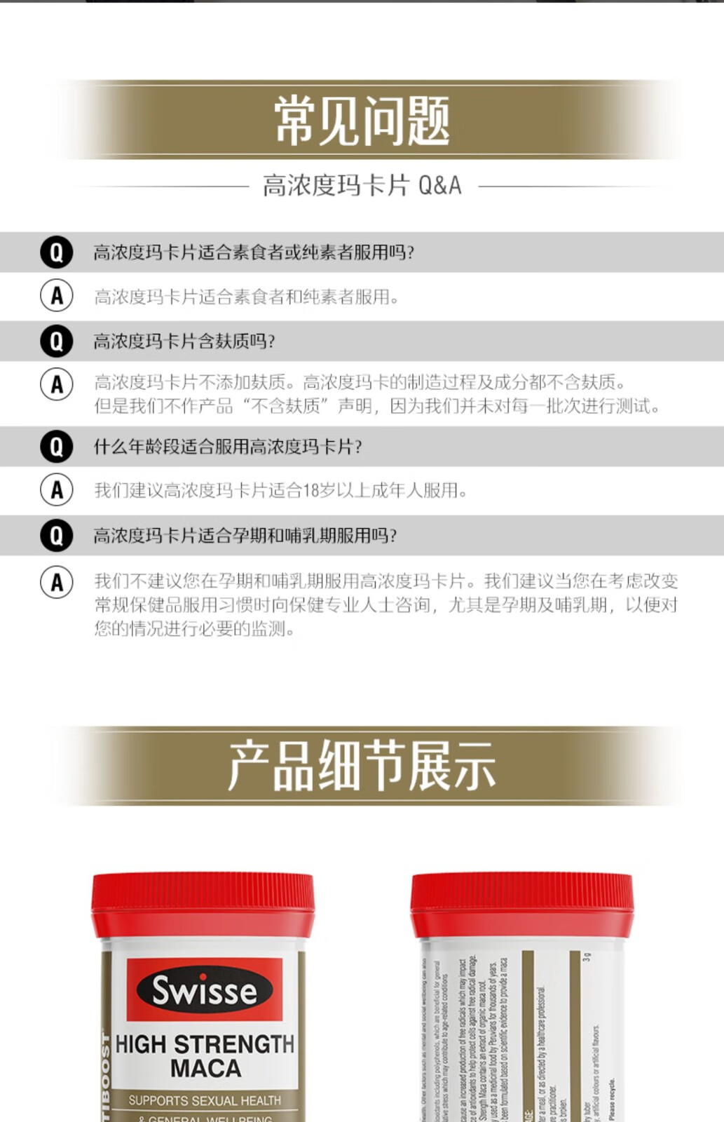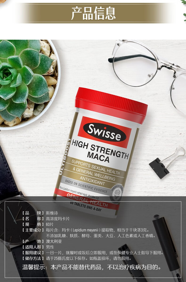 Swisse Maca Tablets High Concentration Maca Extract Male Kidney Strengthening Strengthening Maca Epimedium Oyster Tablets for Adults Deep Strengthening Enhance Vitality 2 Bottles of High Concentration Maca Tablets 60 Tablets