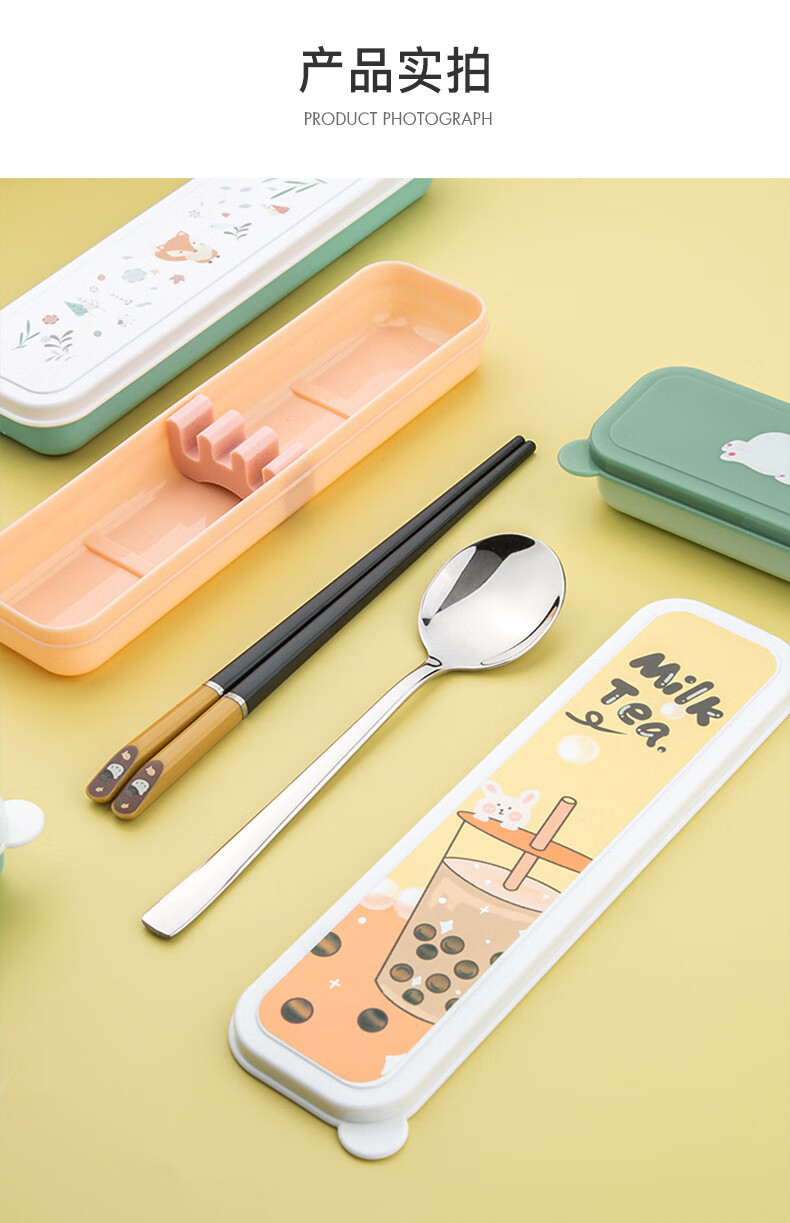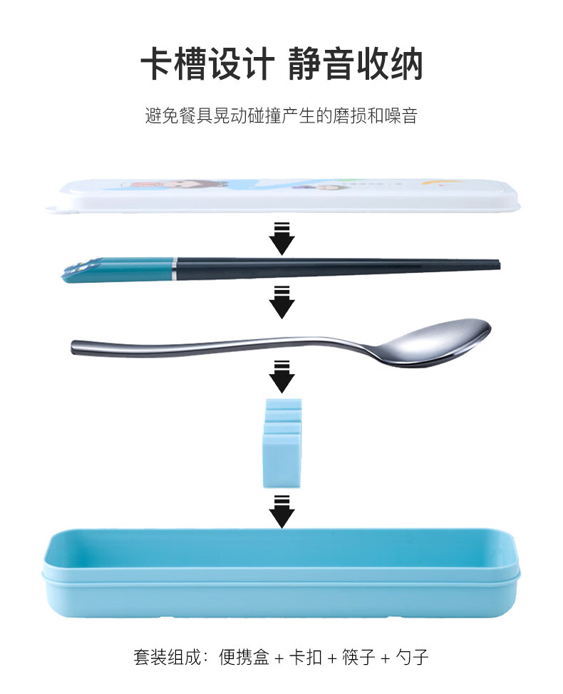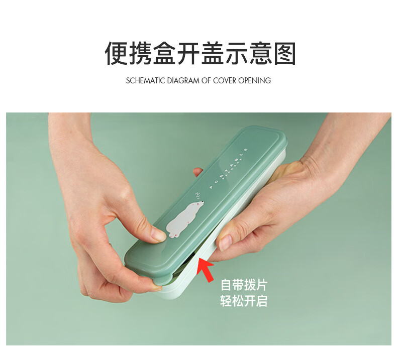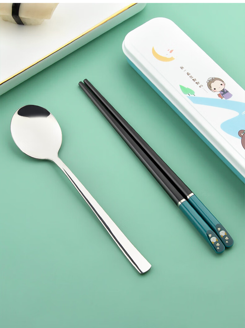 Kemanduo portable tableware set, travel assembly box, student and children carry-on set with them at work, chopsticks and spoon set KB1859 Sleepy Bear portable set 2-piece set