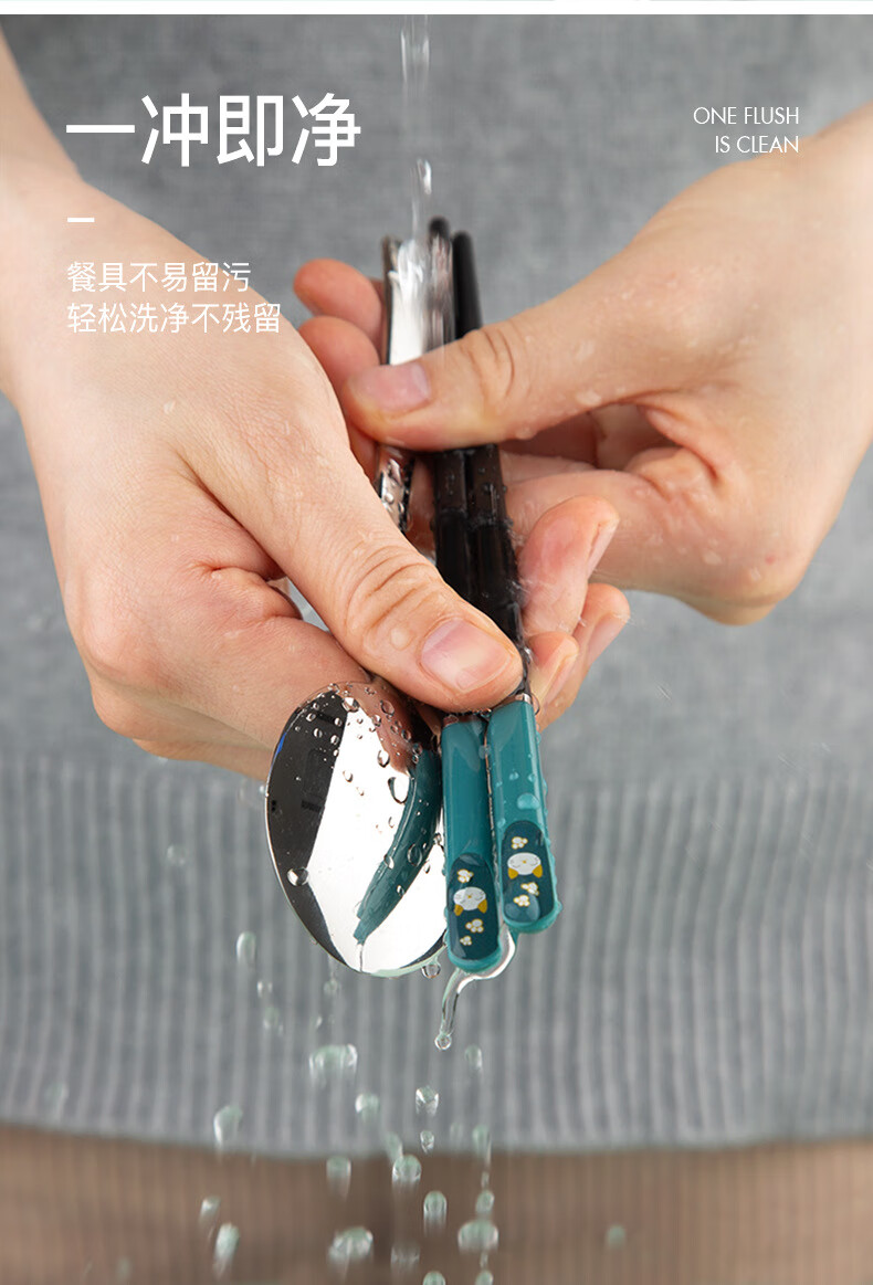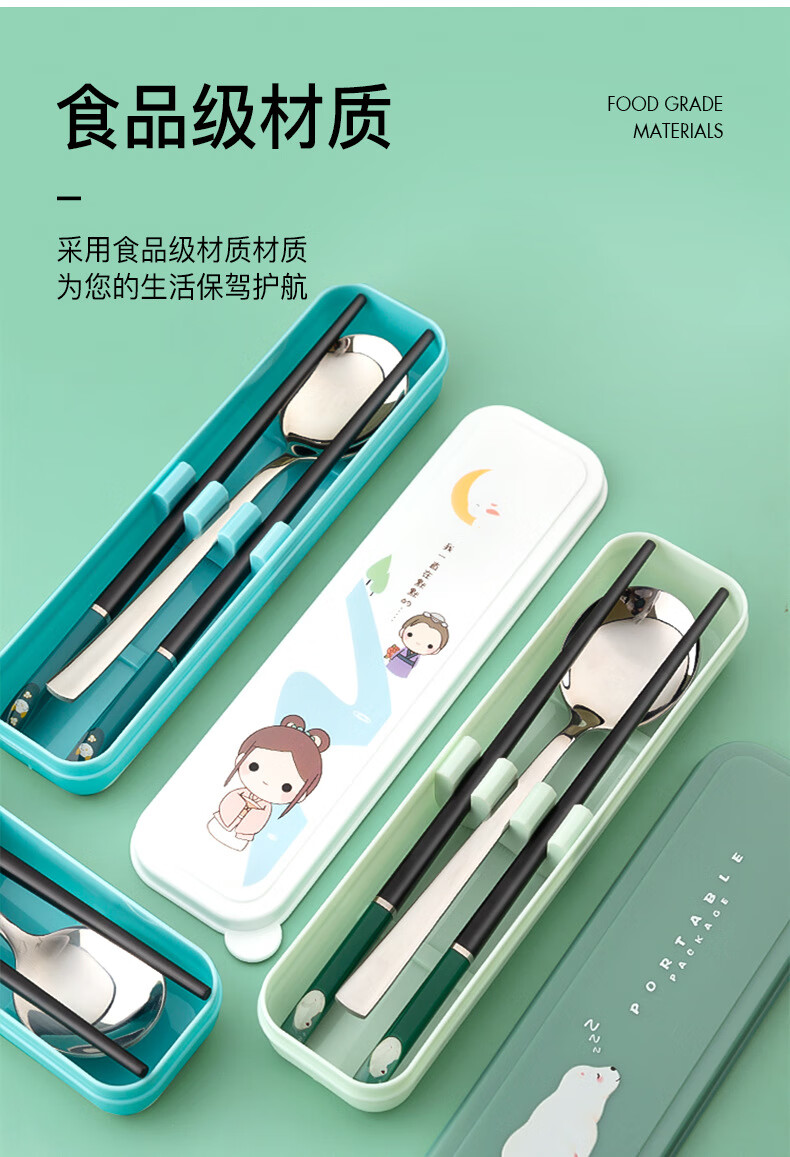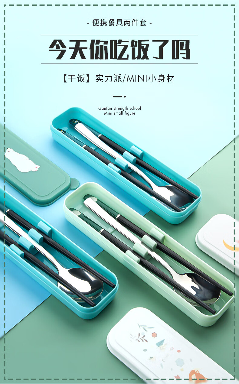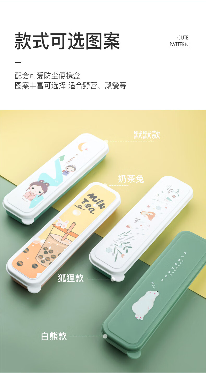 Kemanduo portable tableware set, travel assembly box, student and children carry-on set with them at work, chopsticks and spoon set KB1859 Sleepy Bear portable set 2-piece set