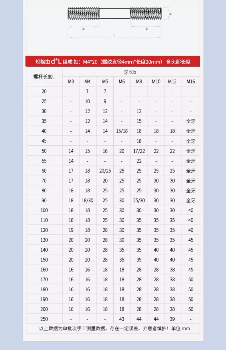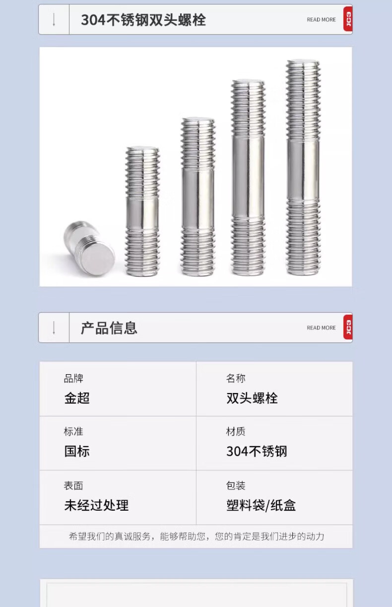 Jinchao 304 stainless steel stud bolt stud screw screw screw stud M3M4M5M6M8M10-16M24 M3*16 (10 pieces)