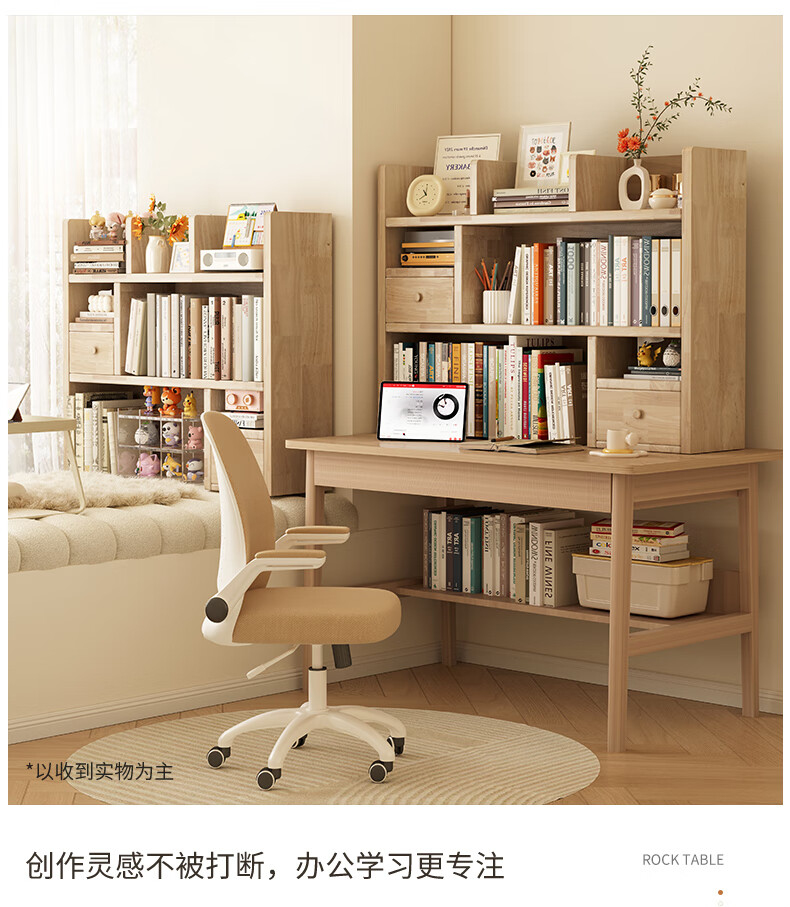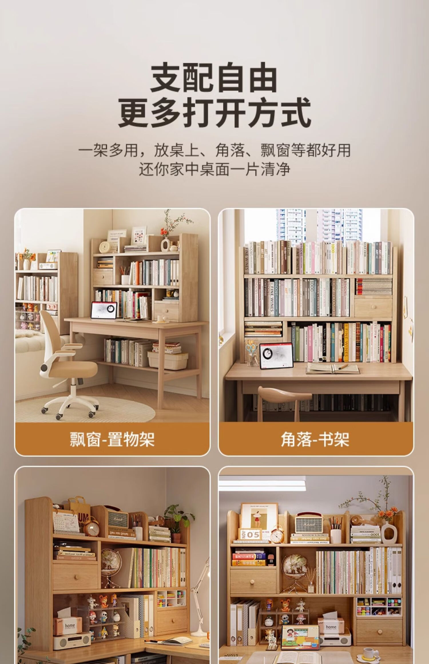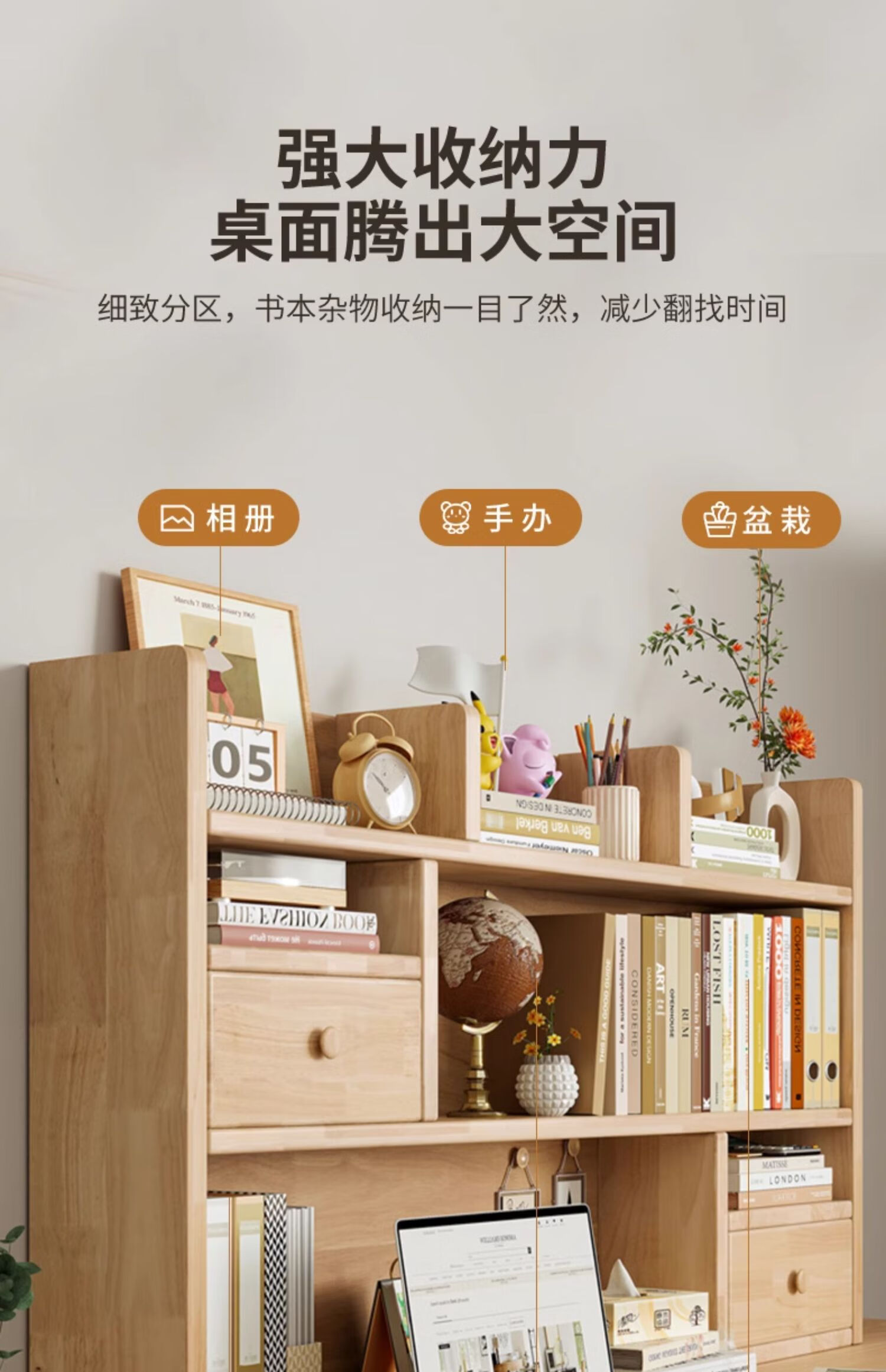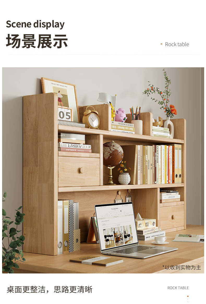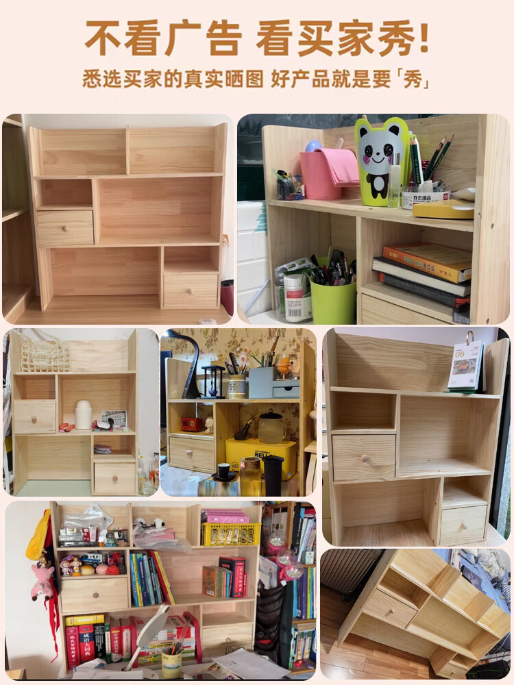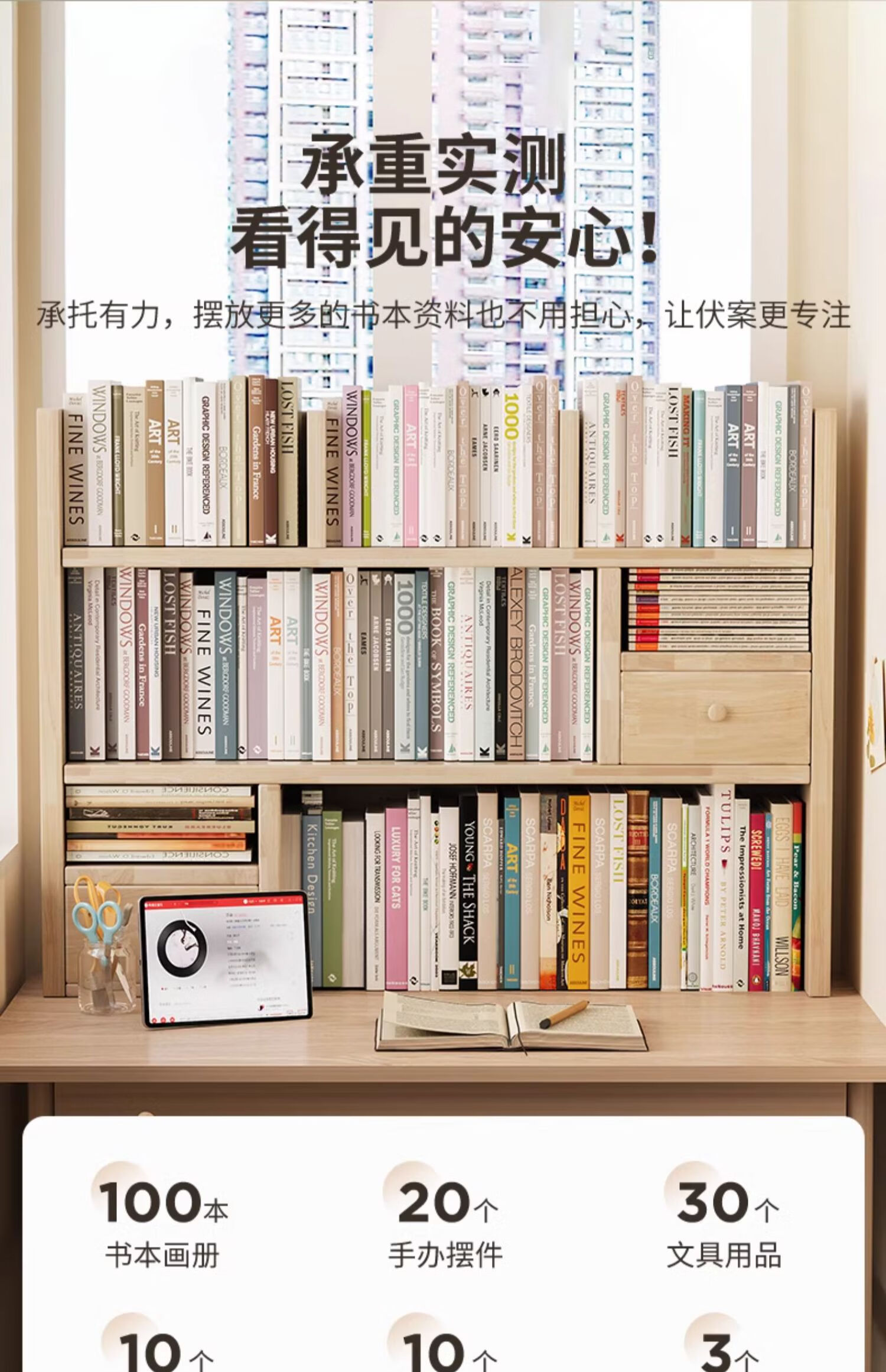 Saishan desktop bookshelf storage rack solid wood desk small bookshelf integrated wall-mounted simple office multi-layer storage storage rack solid wood + with back panel 3 layers 120X20X80CM
