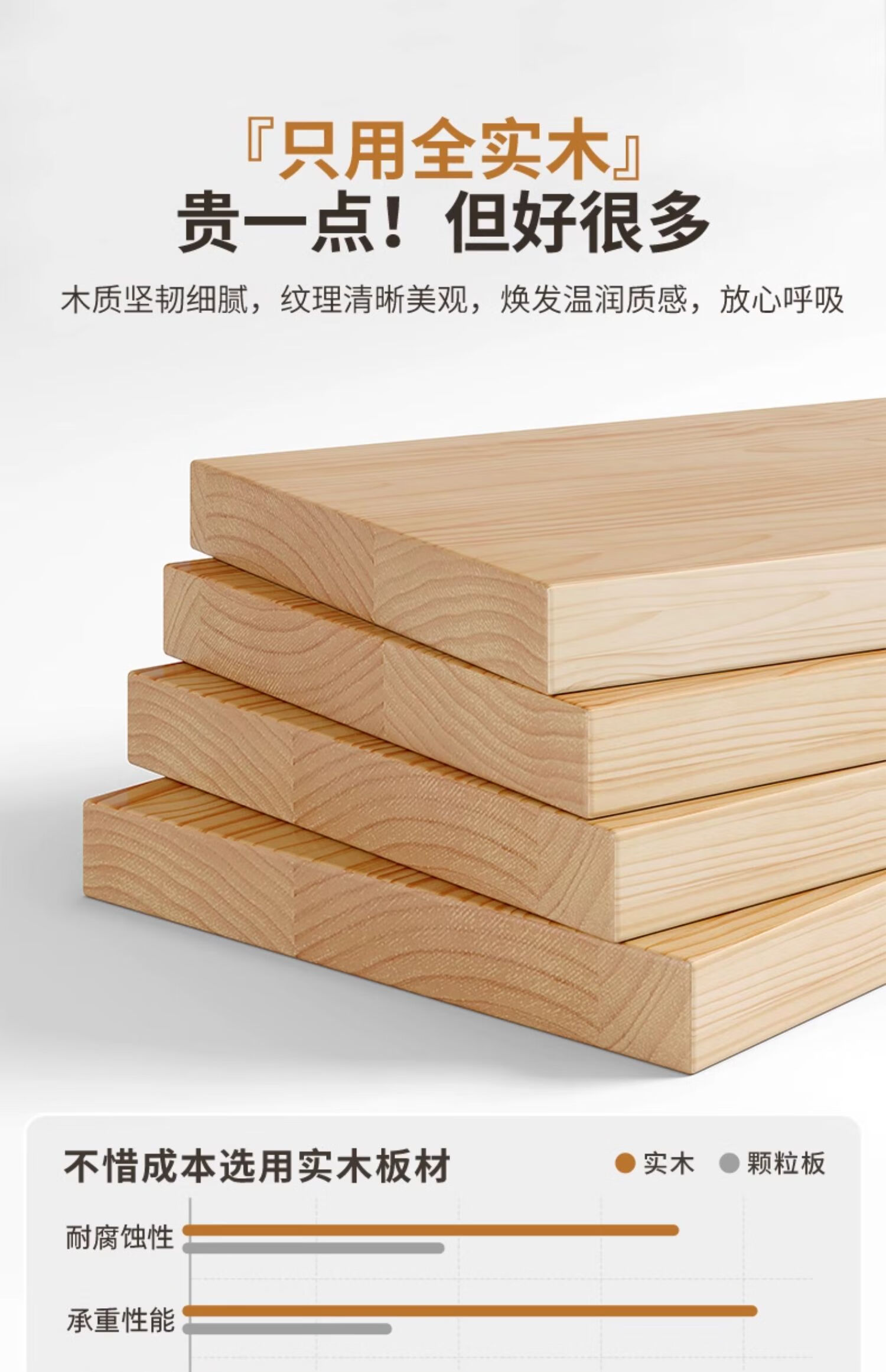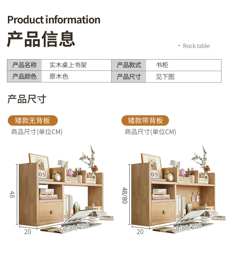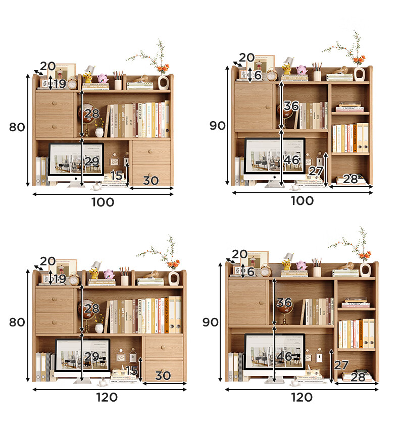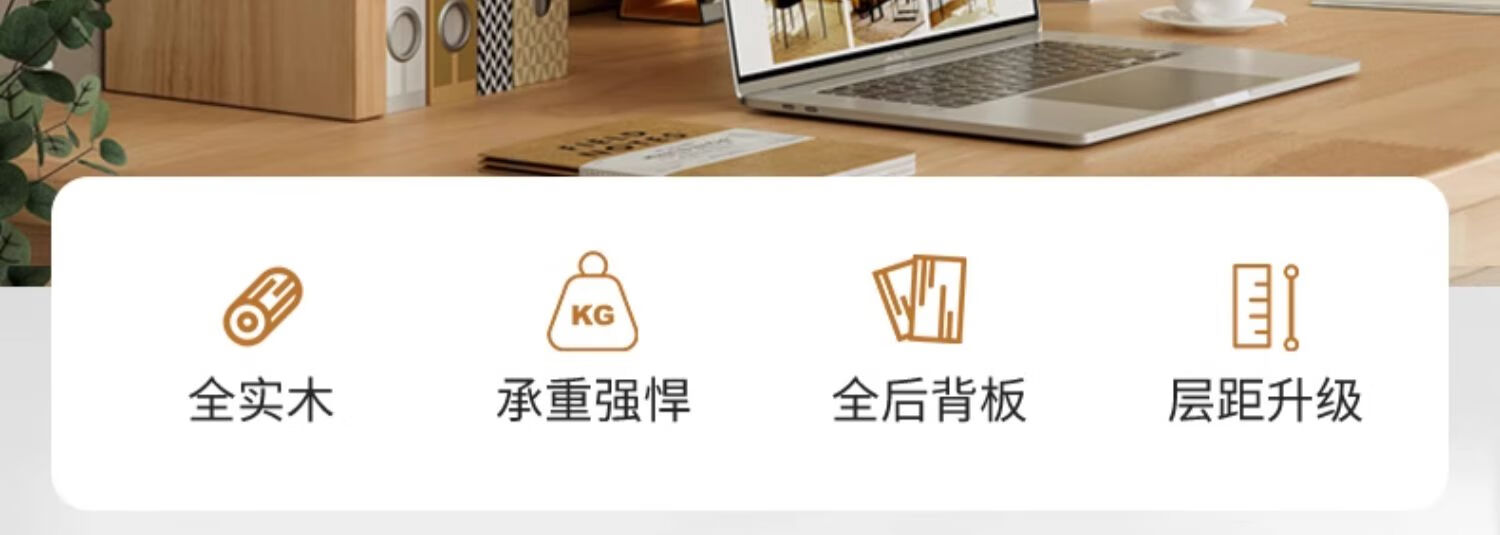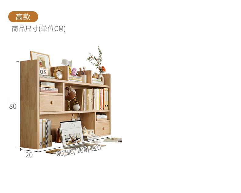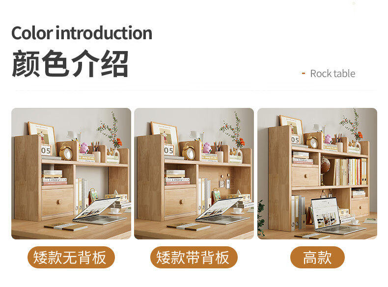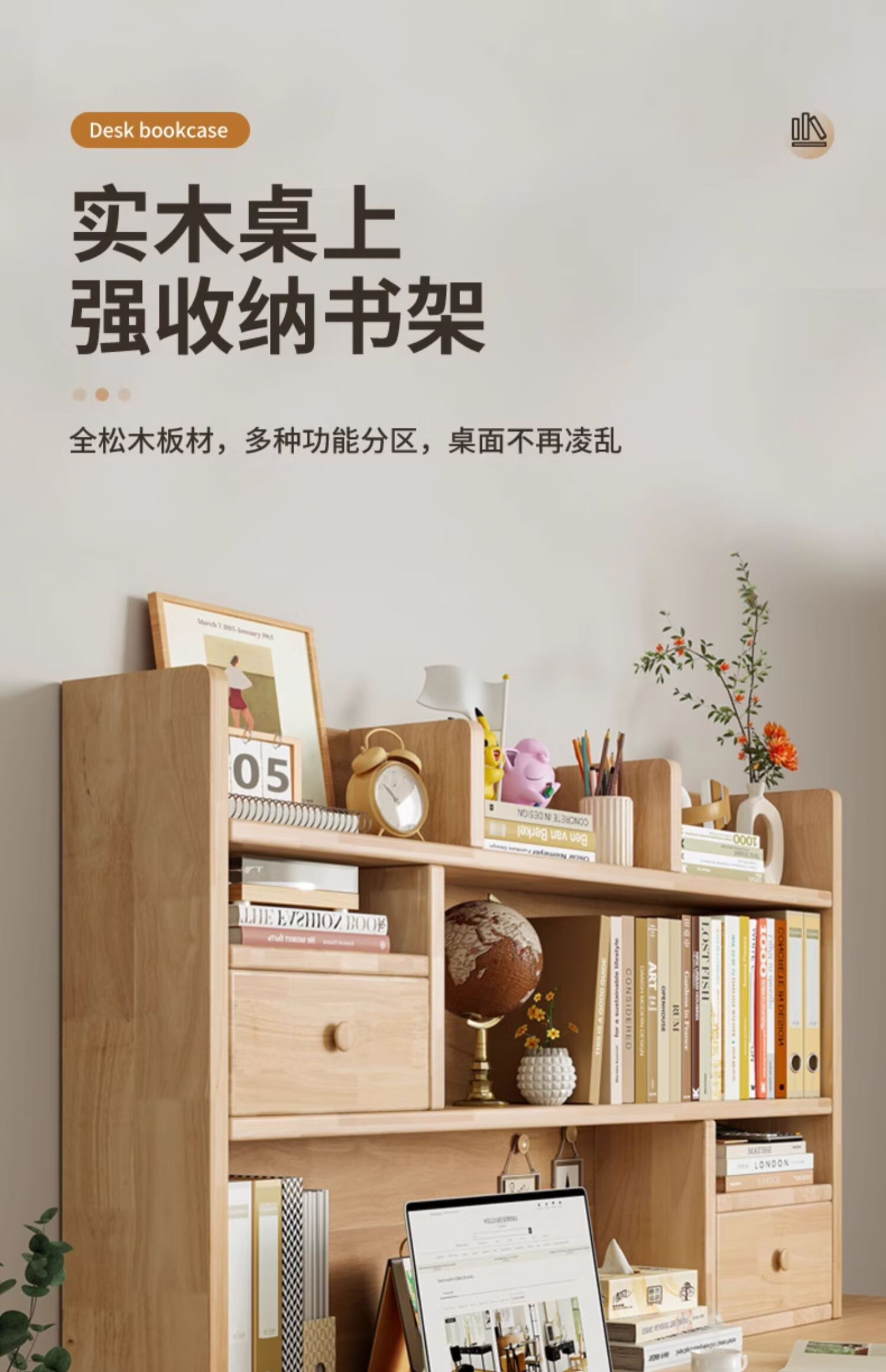 Saishan desktop bookshelf storage rack solid wood desk small bookshelf integrated wall-mounted simple office multi-layer storage storage rack solid wood + with back panel 3 layers 120X20X80CM