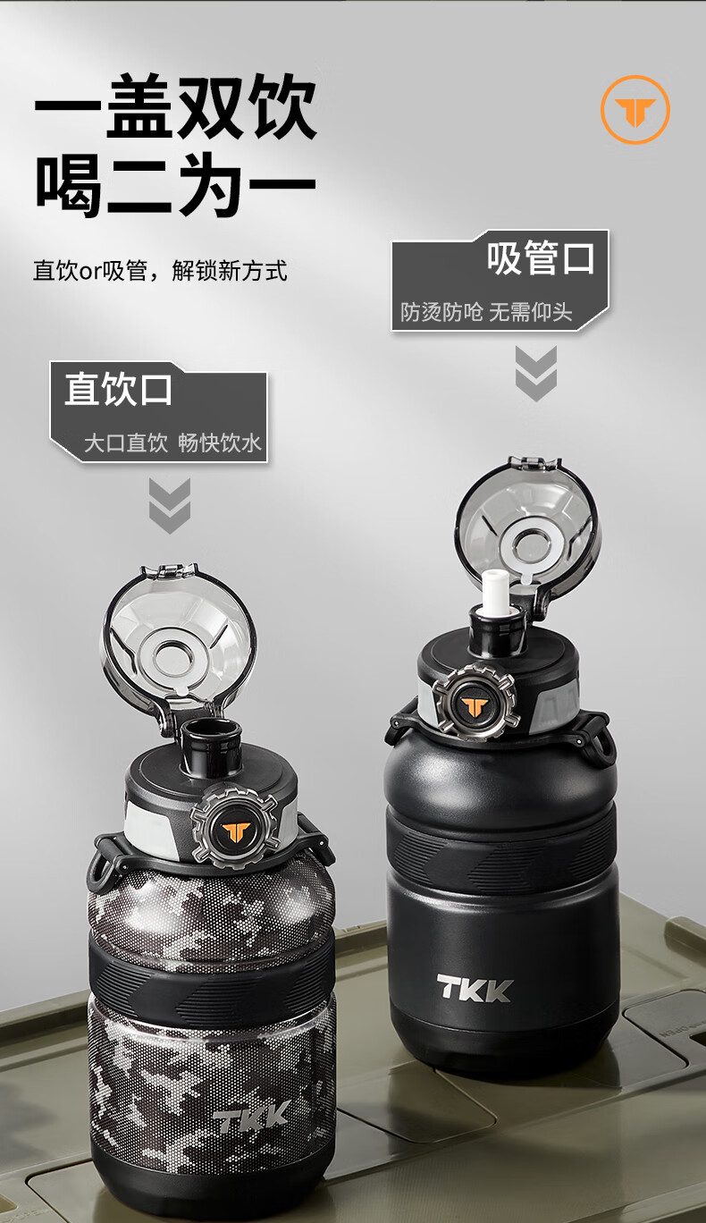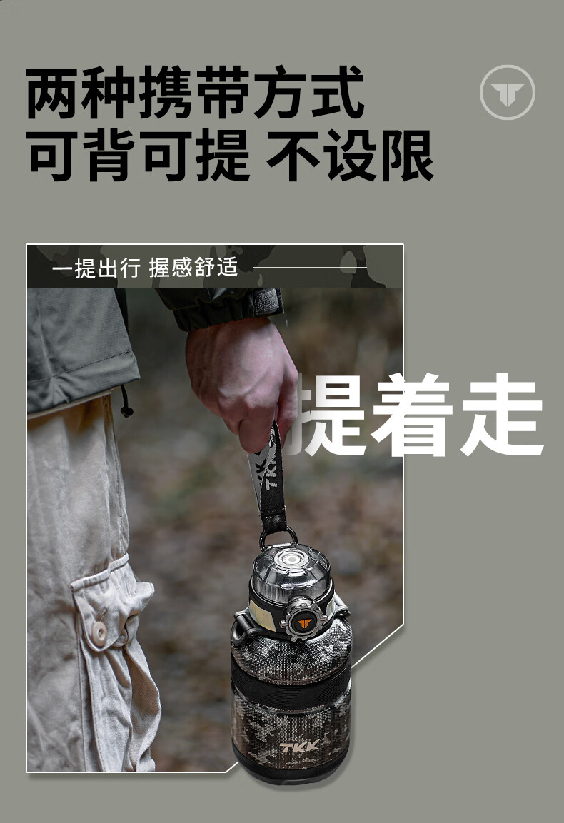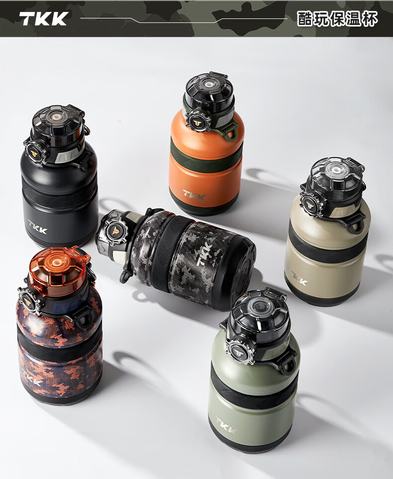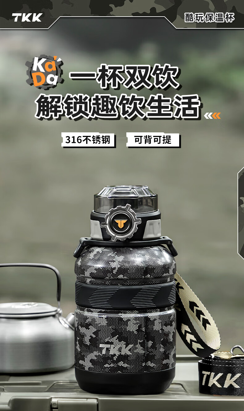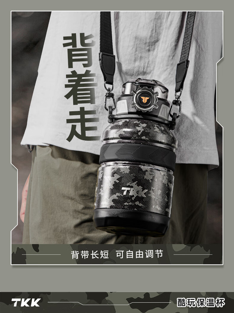 TKK Insulated Water Cup Men's Sports Large Capacity Ton 316 Stainless Steel Outdoor Military Insulated Curling Kettle Super Orange Direct Drink with Straw - Strap Can Be Backed 900ml