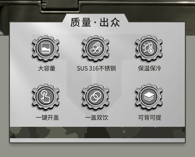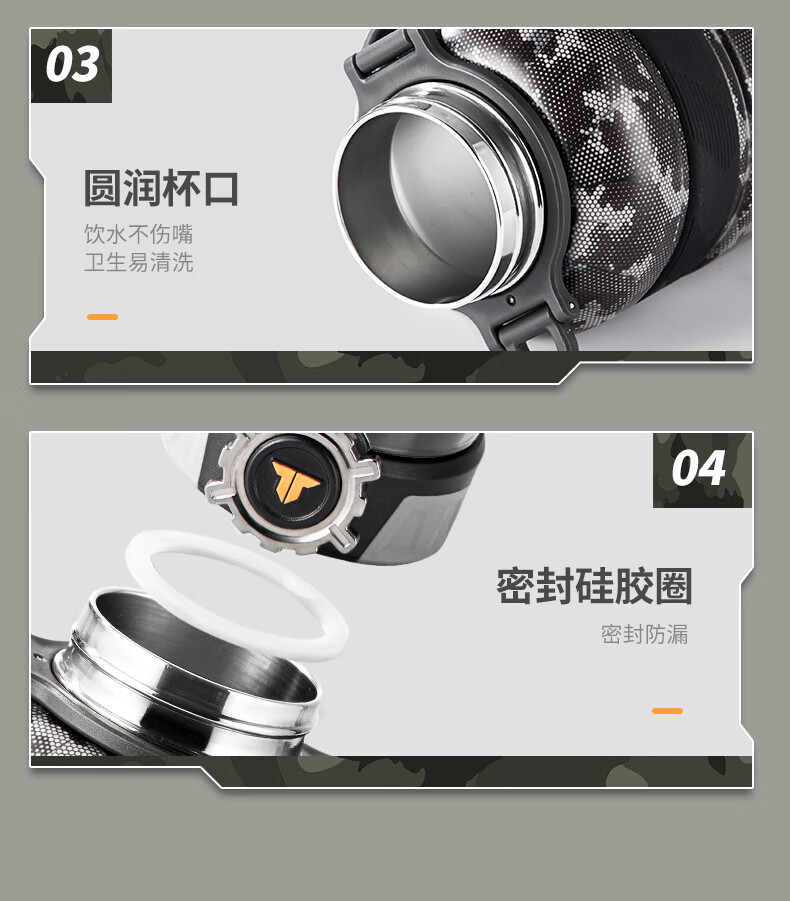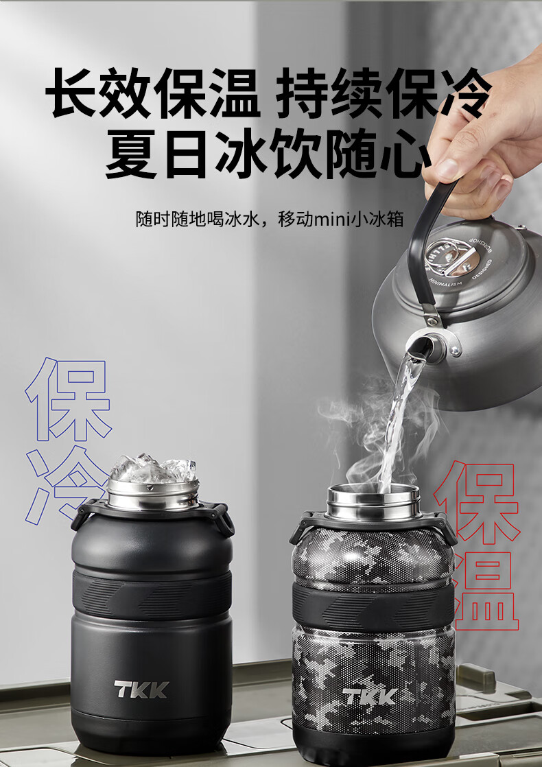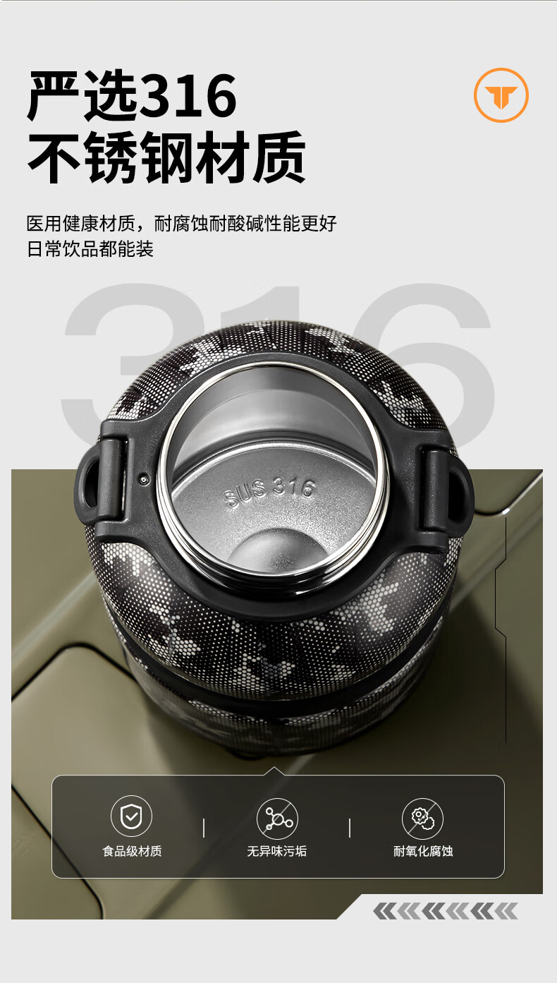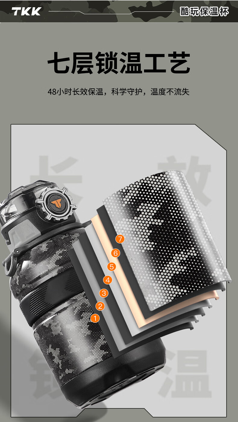 TKK Insulated Water Cup Men's Sports Large Capacity Ton 316 Stainless Steel Outdoor Military Insulated Curling Kettle Super Orange Direct Drink with Straw - Strap Can Be Backed 900ml