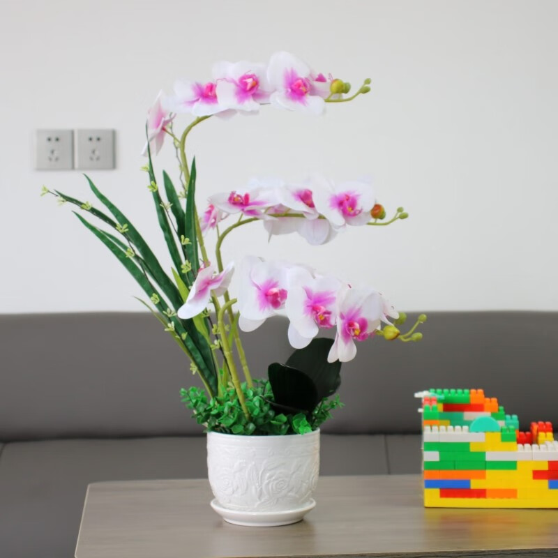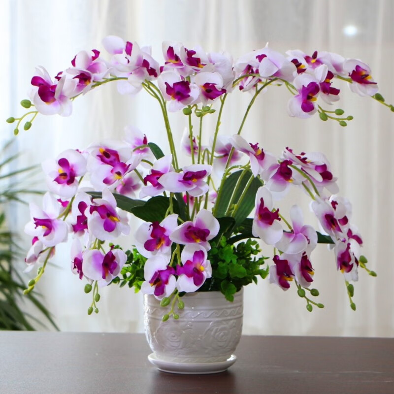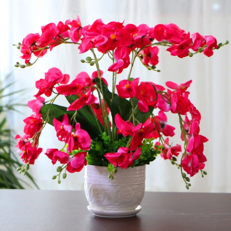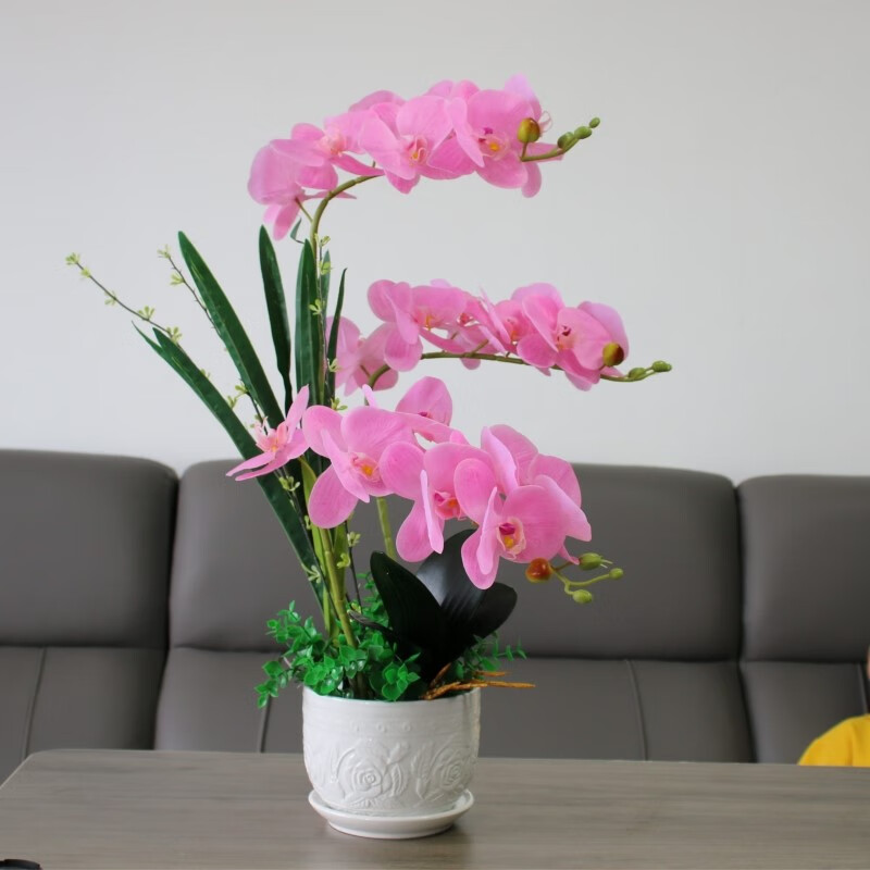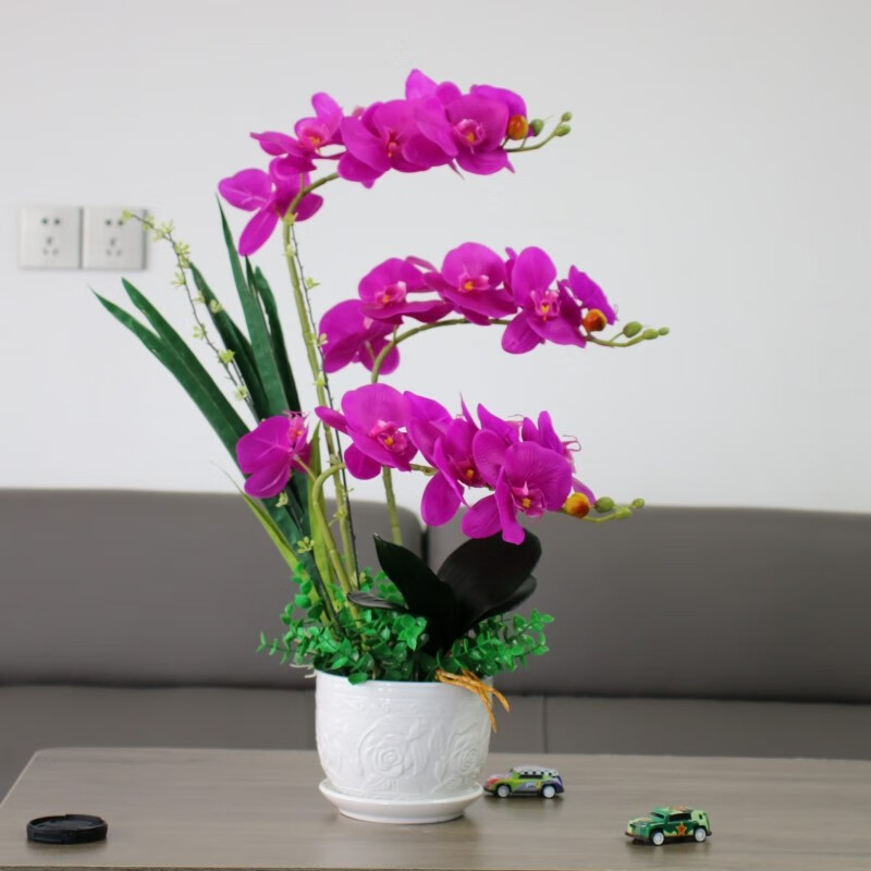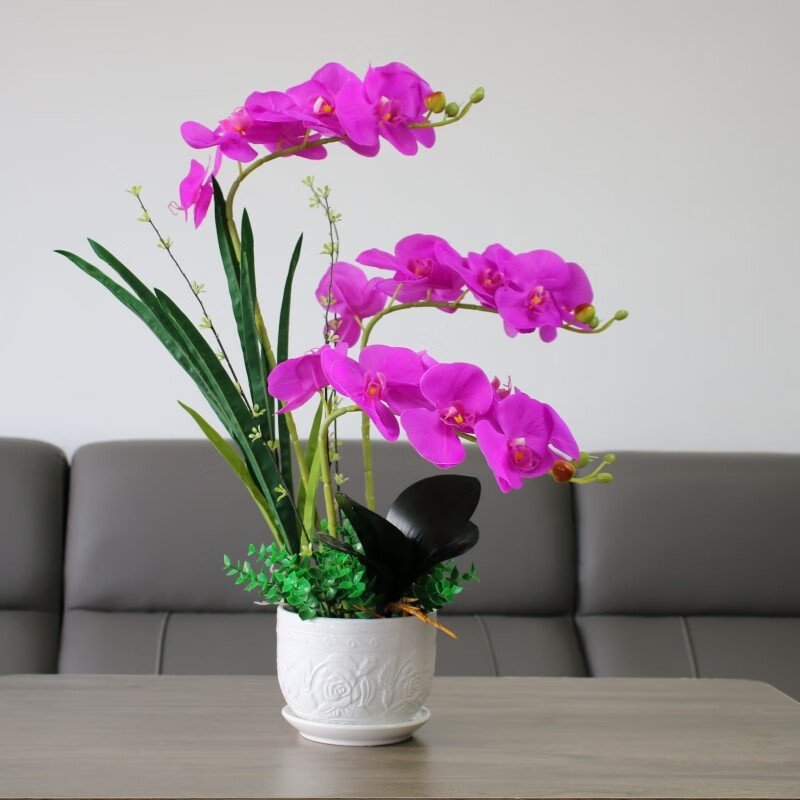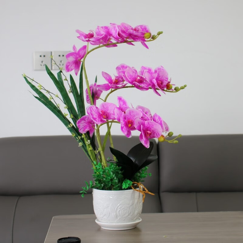 ENRMIIV Phalaenopsis artificial flower set living room ornaments fake flowers coffee table TV cabinet display flower decoration plastic flowers silk flowers 3 purple-red Phalaenopsis 55 cm high