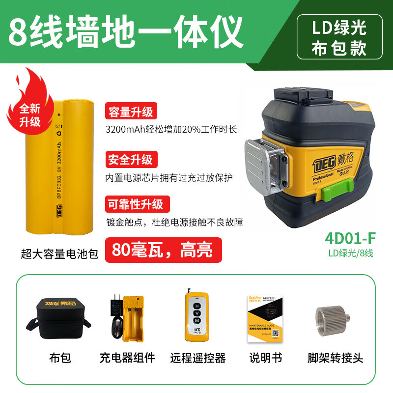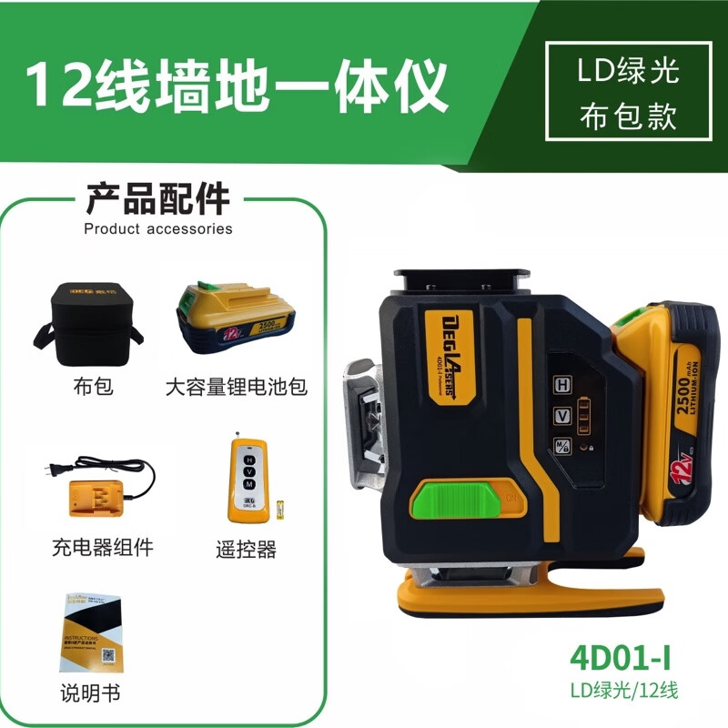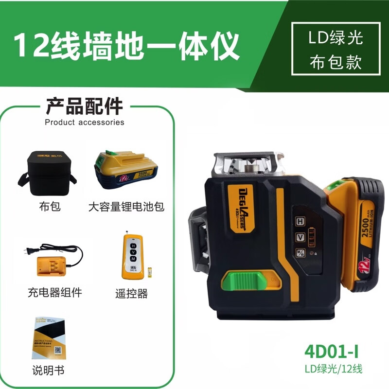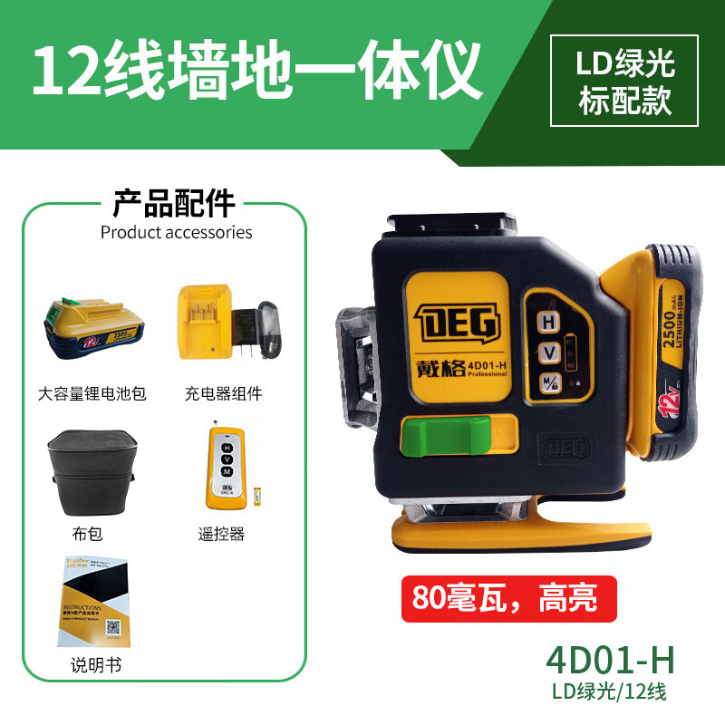 Daige's new level meter 8 lines 12 lines 80 milliwatts ultra-bright green light laser infrared high-precision automatic leveling Hercules 80 milliwatts green light 12 lines online 2 electric
