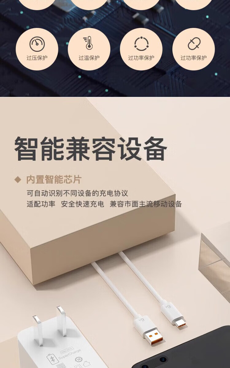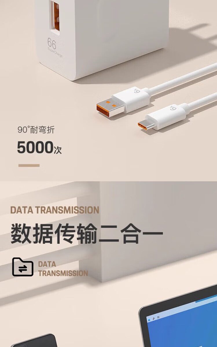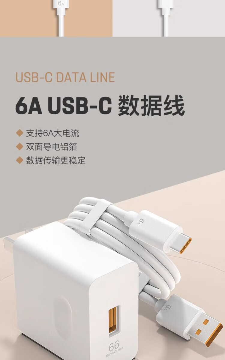 Kuweimao Type-c data cable 6A charging cable 66 super flash charging plug charger fast charging set charging head suitable for Huawei mate40pro Honor oppo OnePlus Xiaomi 6A fast charging cable Type-C 1 meter