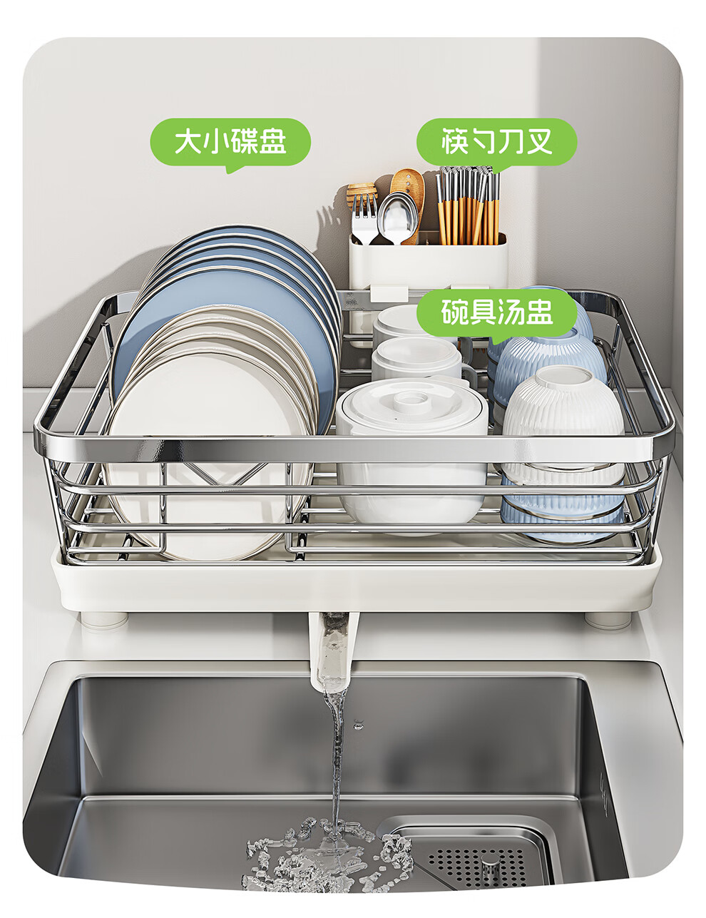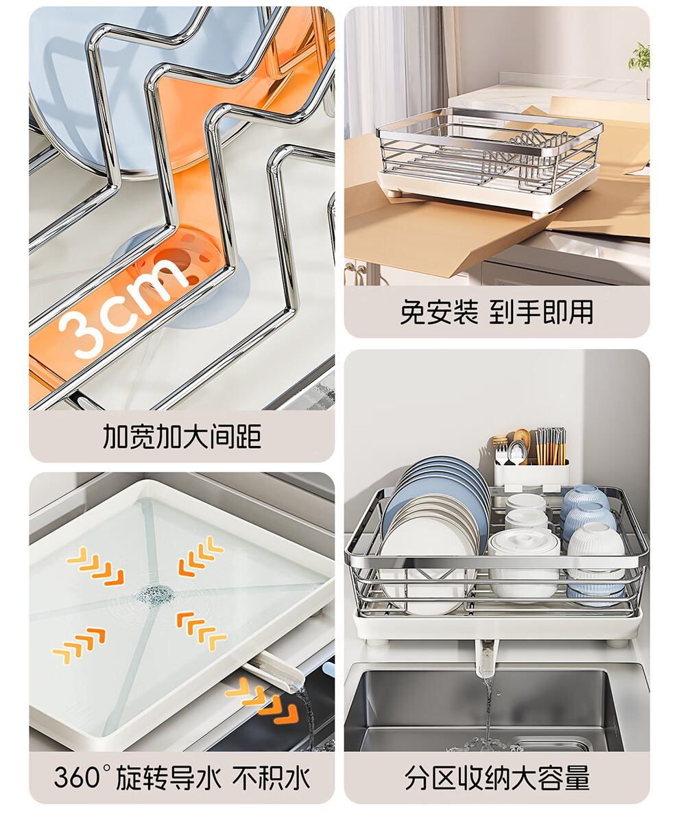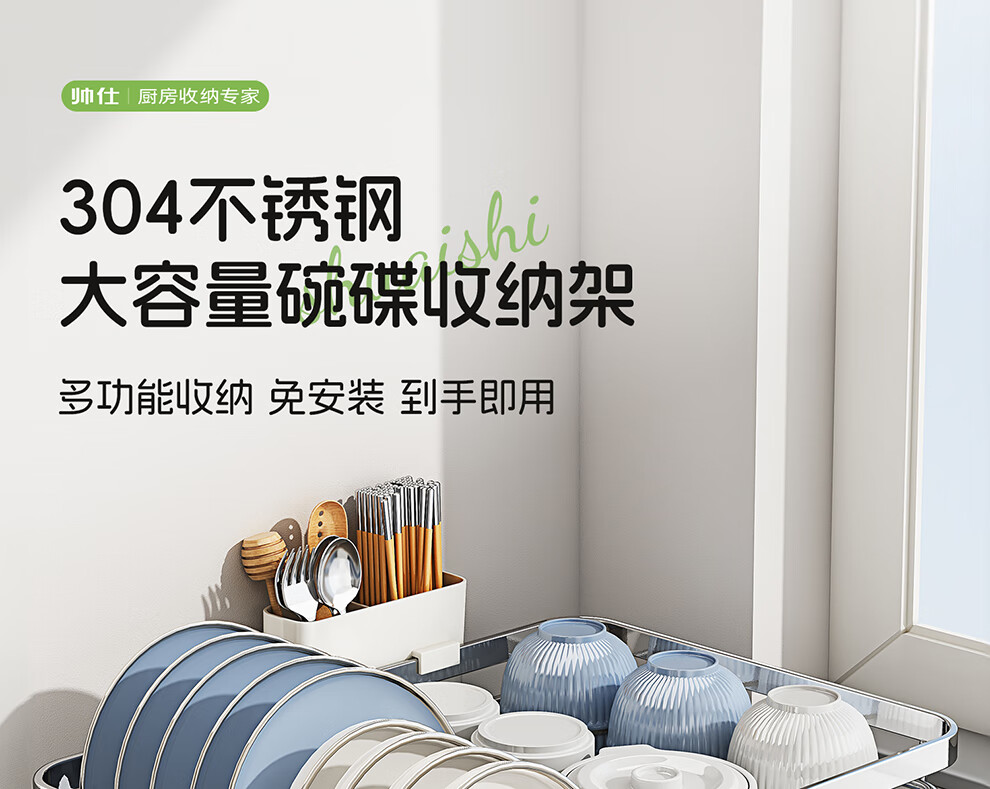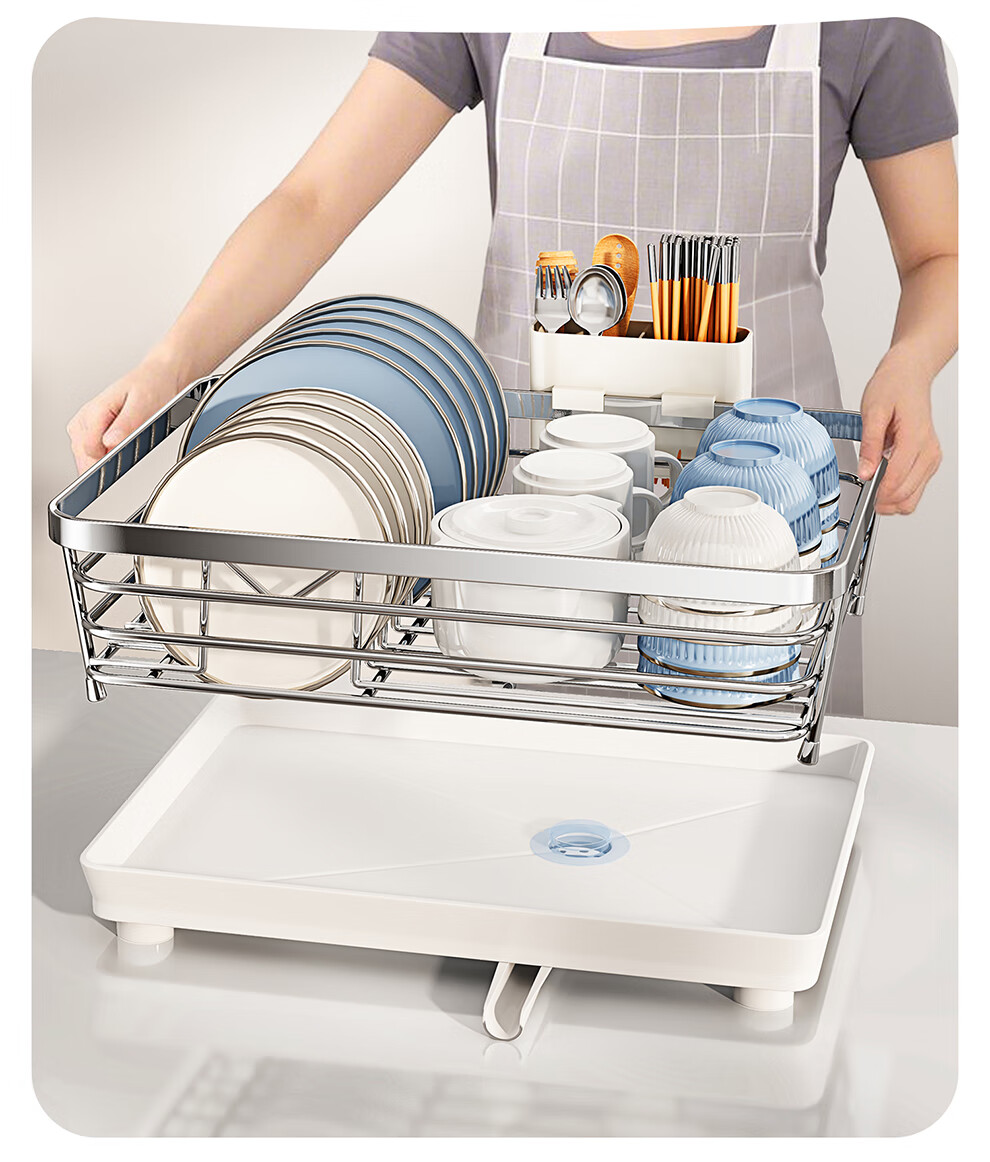 Shuaishi 304 stainless steel dish rack drain rack basket dishware and chopsticks storage rack kitchen multifunctional dish rack free of installation 304 stainless steel extra large model - rust free