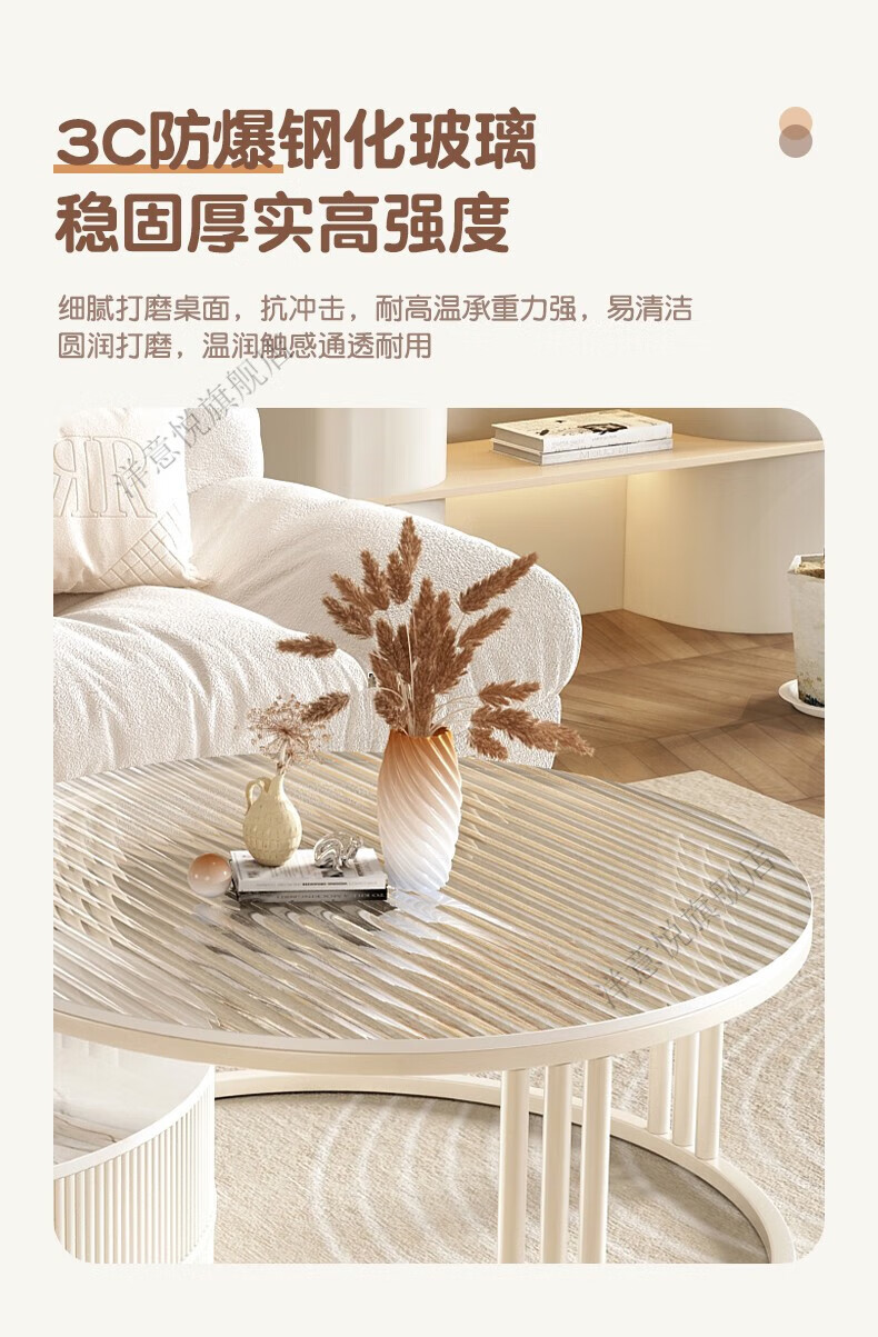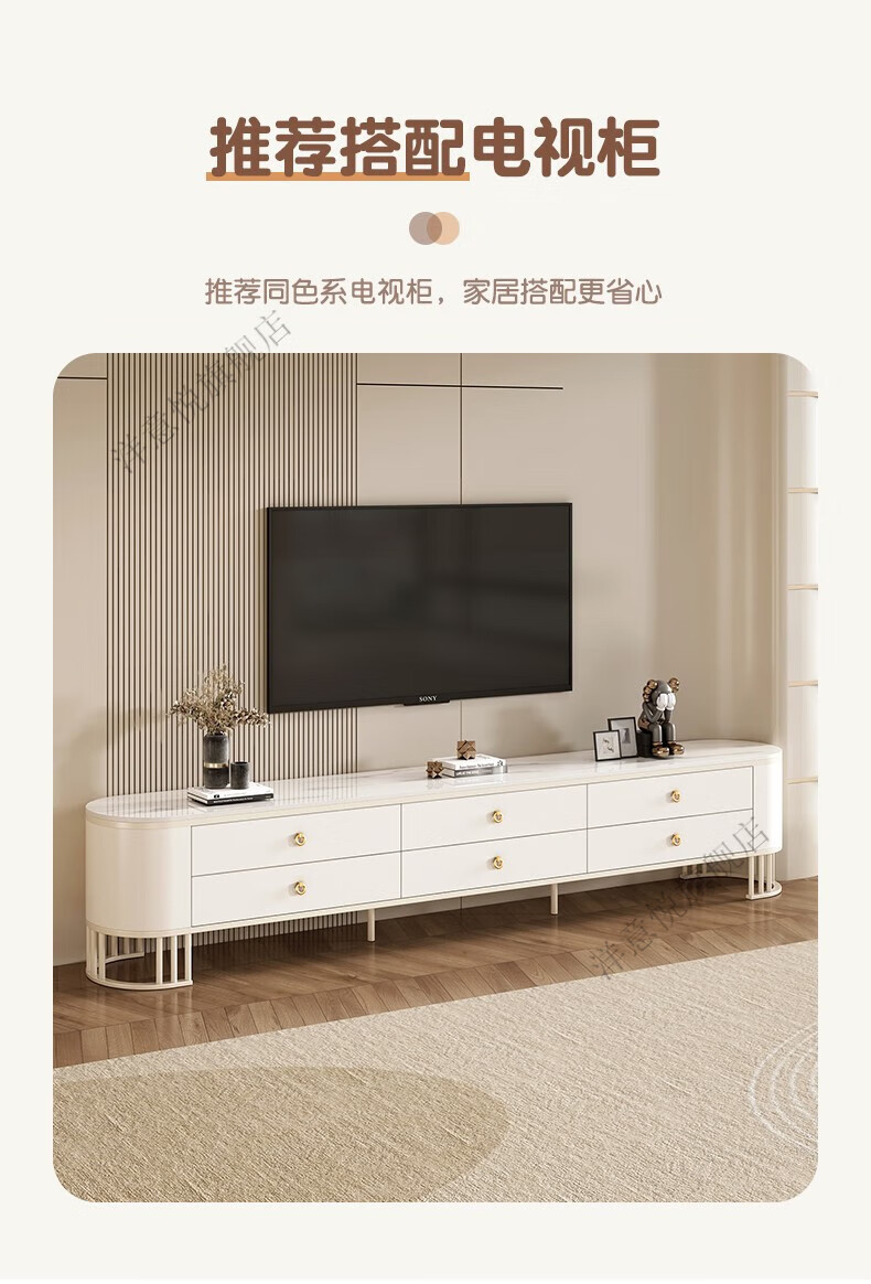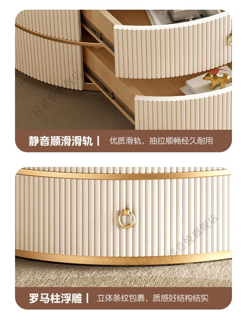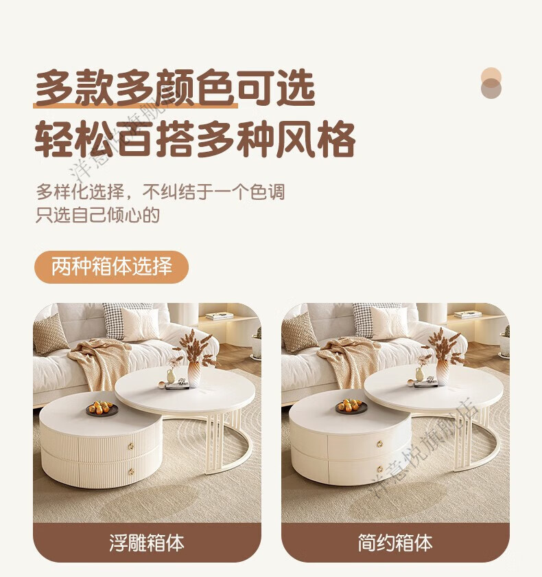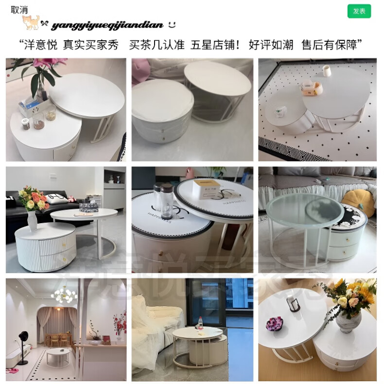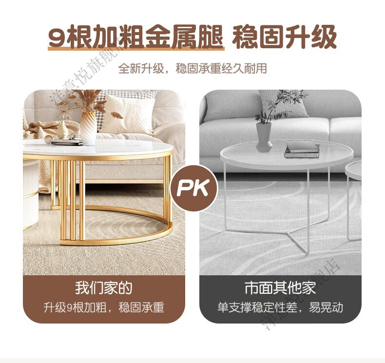 Yangyiyue coffee table TV cabinet living room modern simple small apartment mobile folding round slate small round table cream style glossy snow mountain white rock + snow mountain white rock + gold frame large 80cm*43cm + small 60cm*35cm