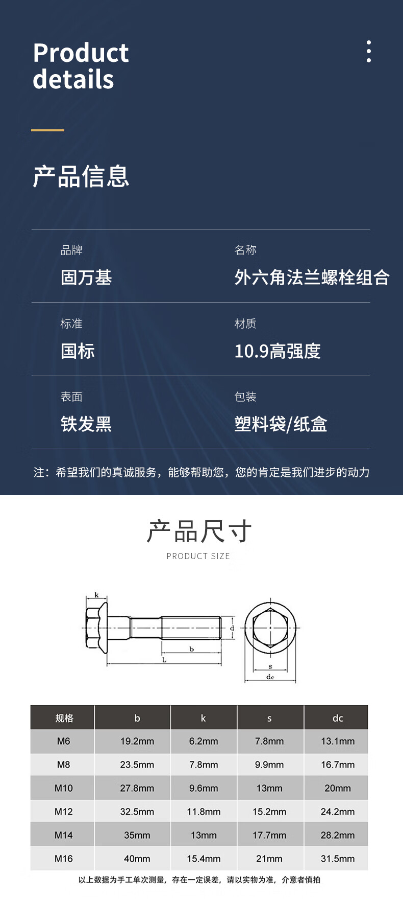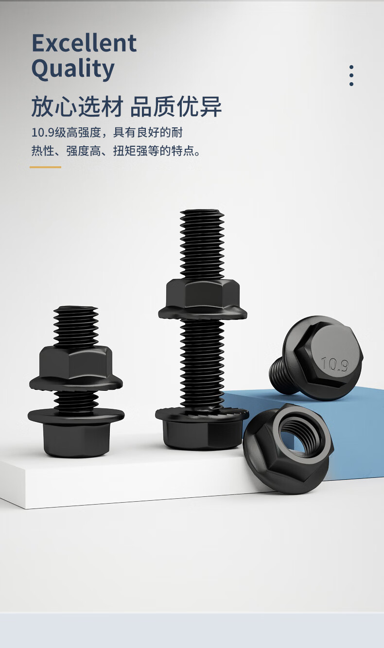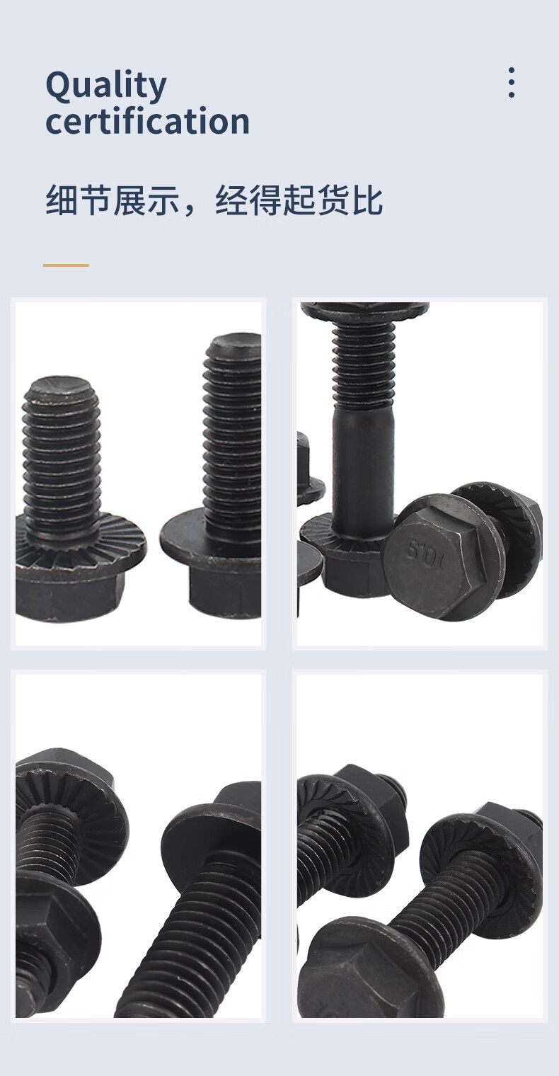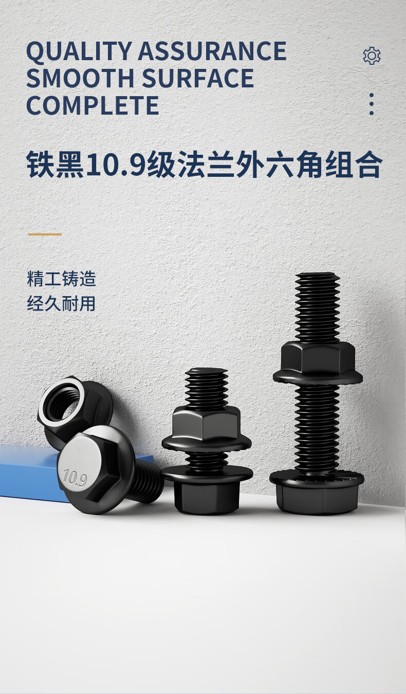Guwanji Grade 10.9 external hexagonal toothed flange screw nut external hexagonal bolt screw set GB5787 screw flat bottom M6x30 (20 sets) full tooth