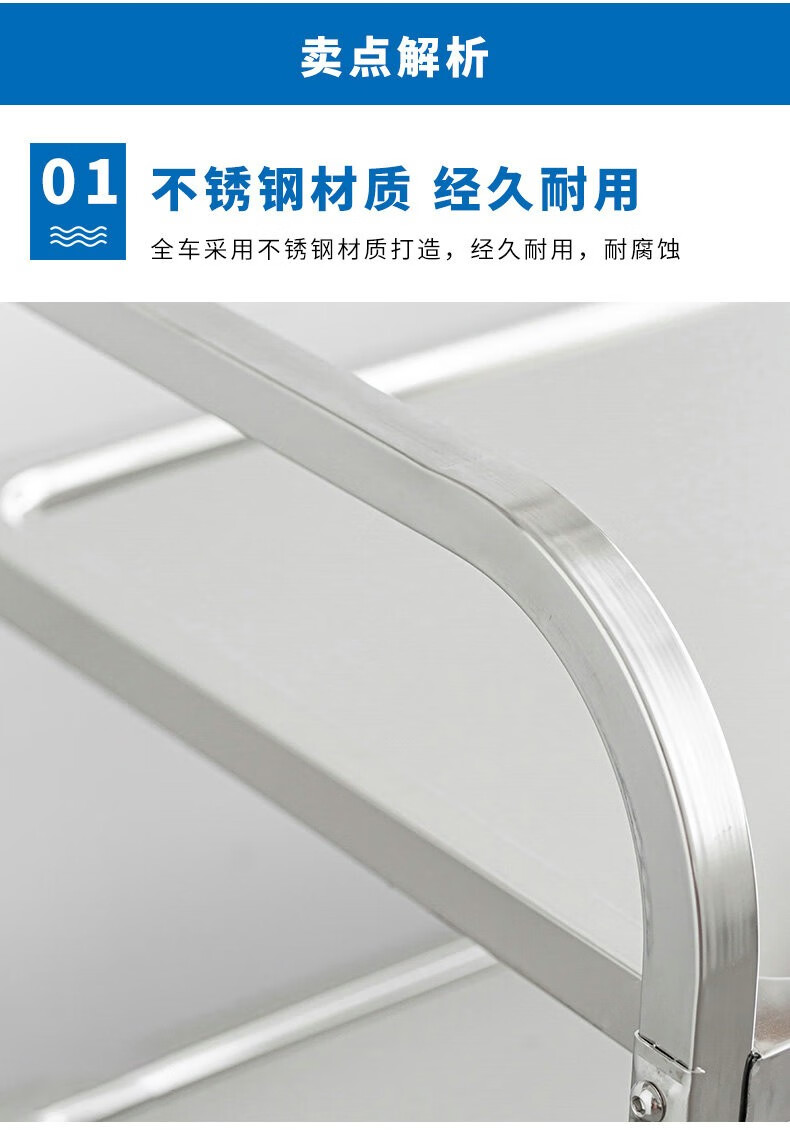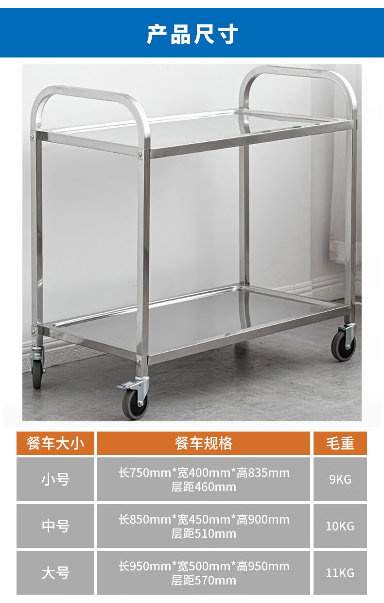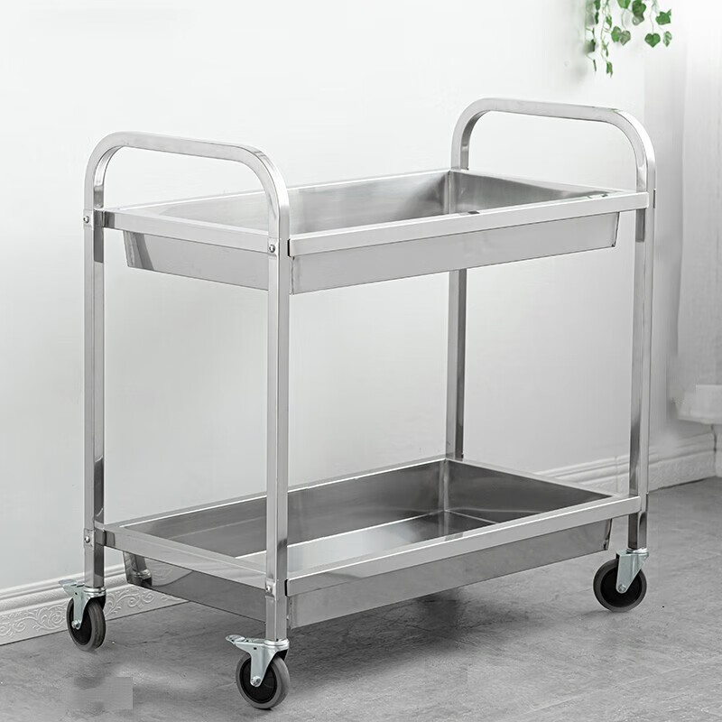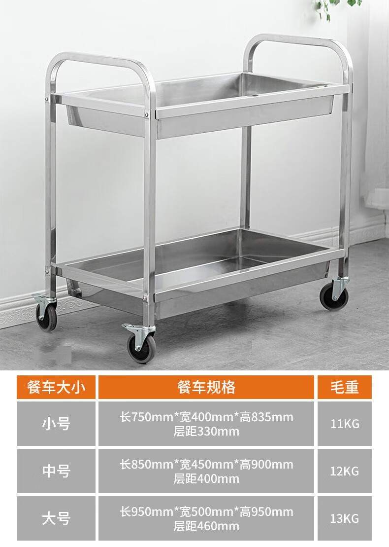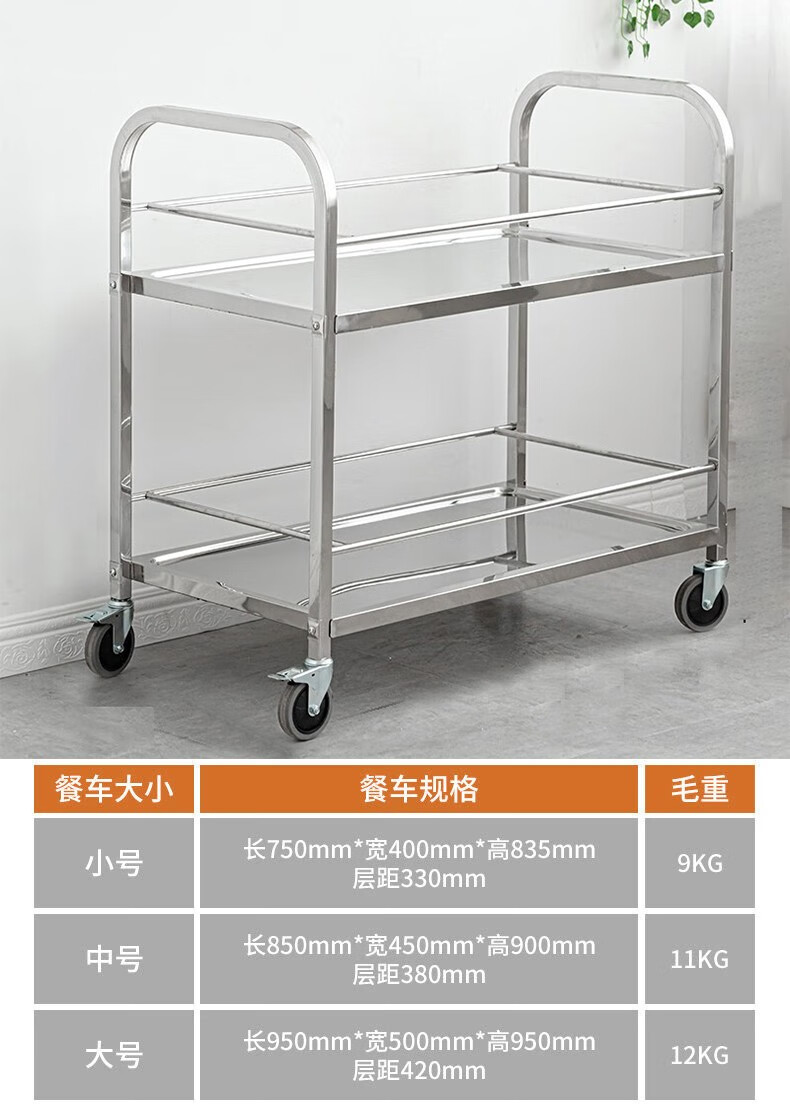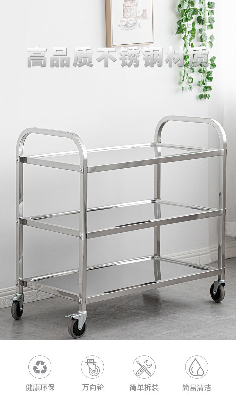 Jingchushi 304 thickened stainless steel dining cart, stall cart, food delivery cart, hotel fast food bowl collection restaurant, drink cart 304 second floor medium size