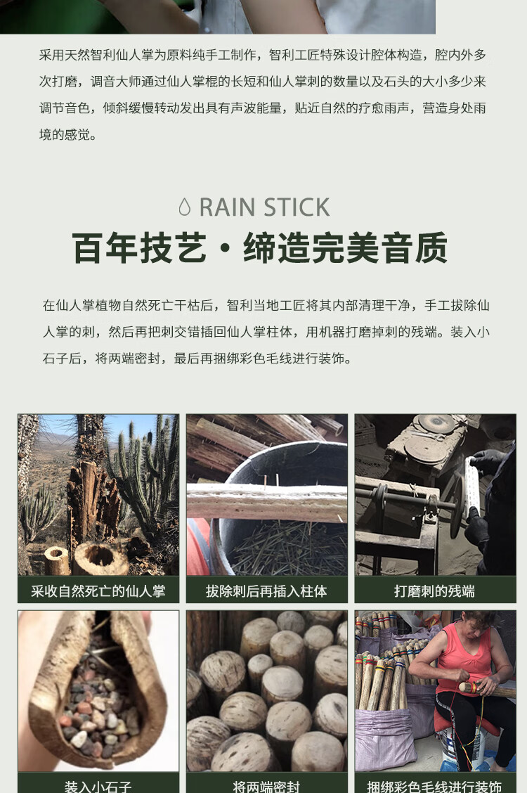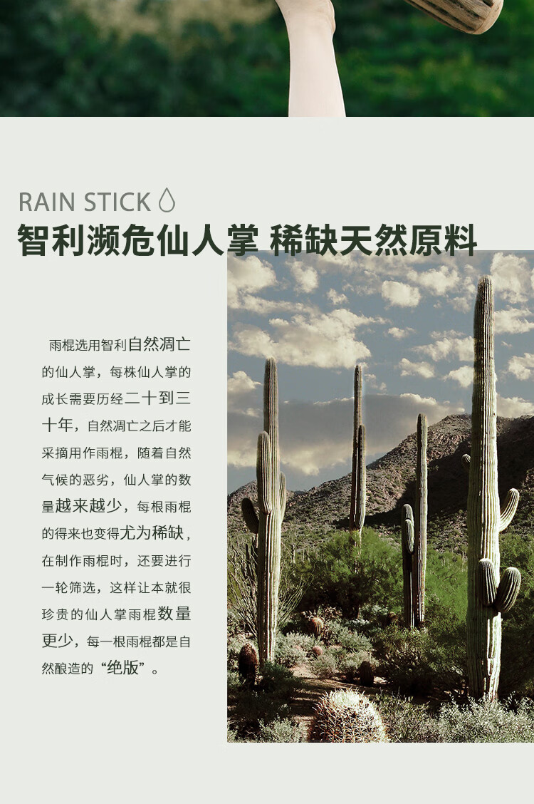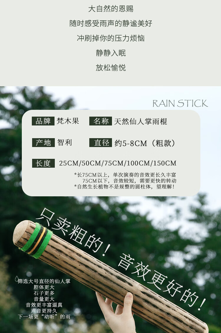 Fanmu Guo & De Rui Healing Rain Stick South America Chile De Rui Cactus Rain Sounder Rain Sound Tube Ethnic Minor Instrument South American Palm L=75cm
