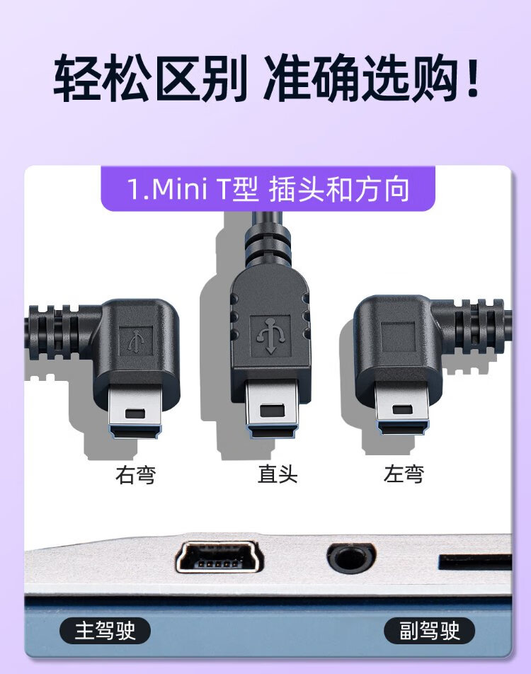 Cloud car Weishi driving recorder power cord USB power cord changed to USB interface power supply data cable plug car universal 30 cm MINI-left elbow