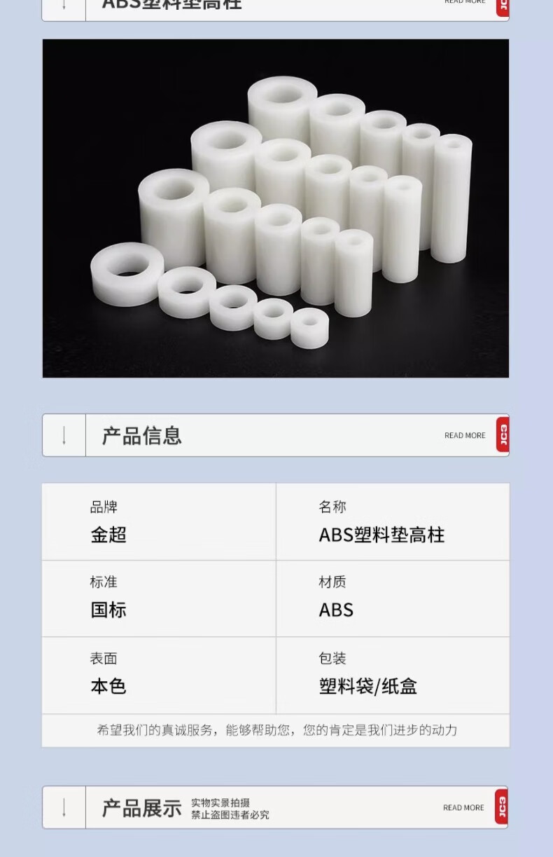 Jinchao insulating column plastic gasket straight through column nylon casing ABS padding column washer round hole spacer column M3M4 9*5*20 (100 capsules)