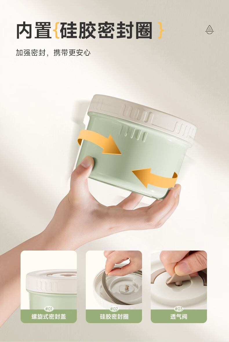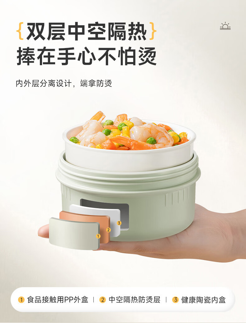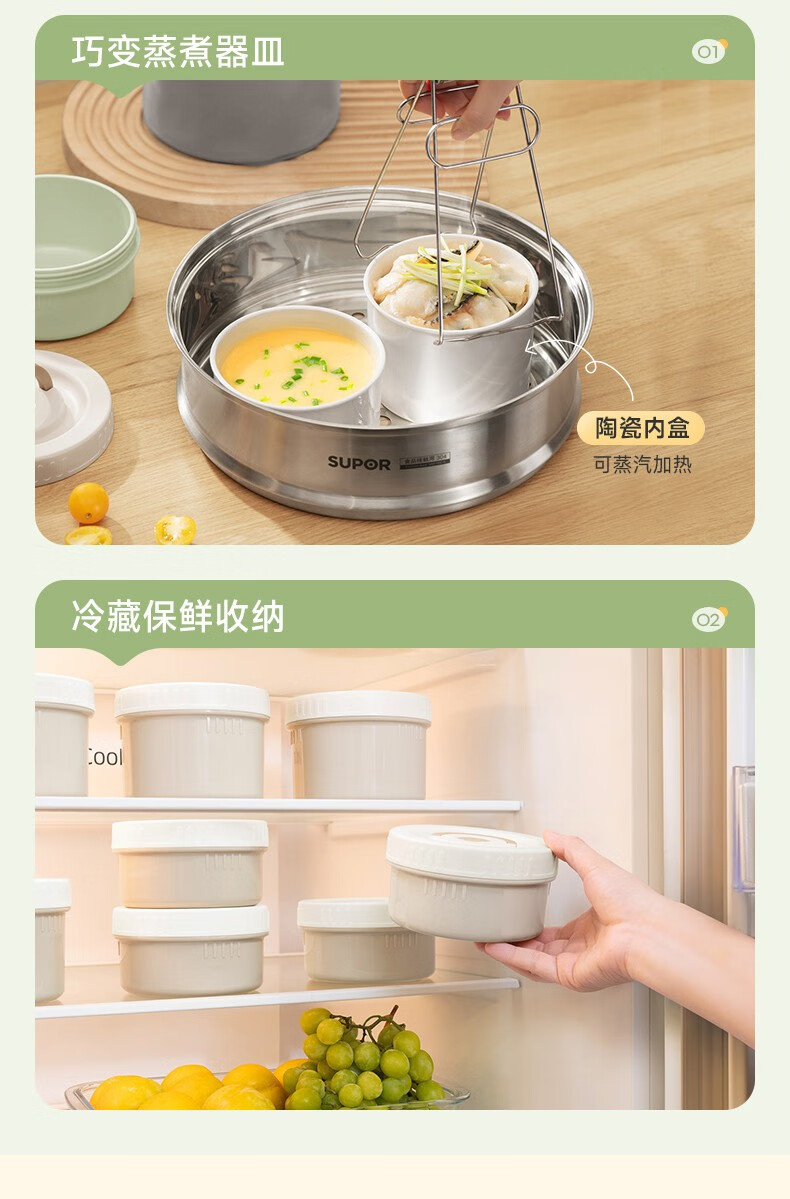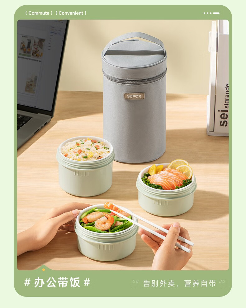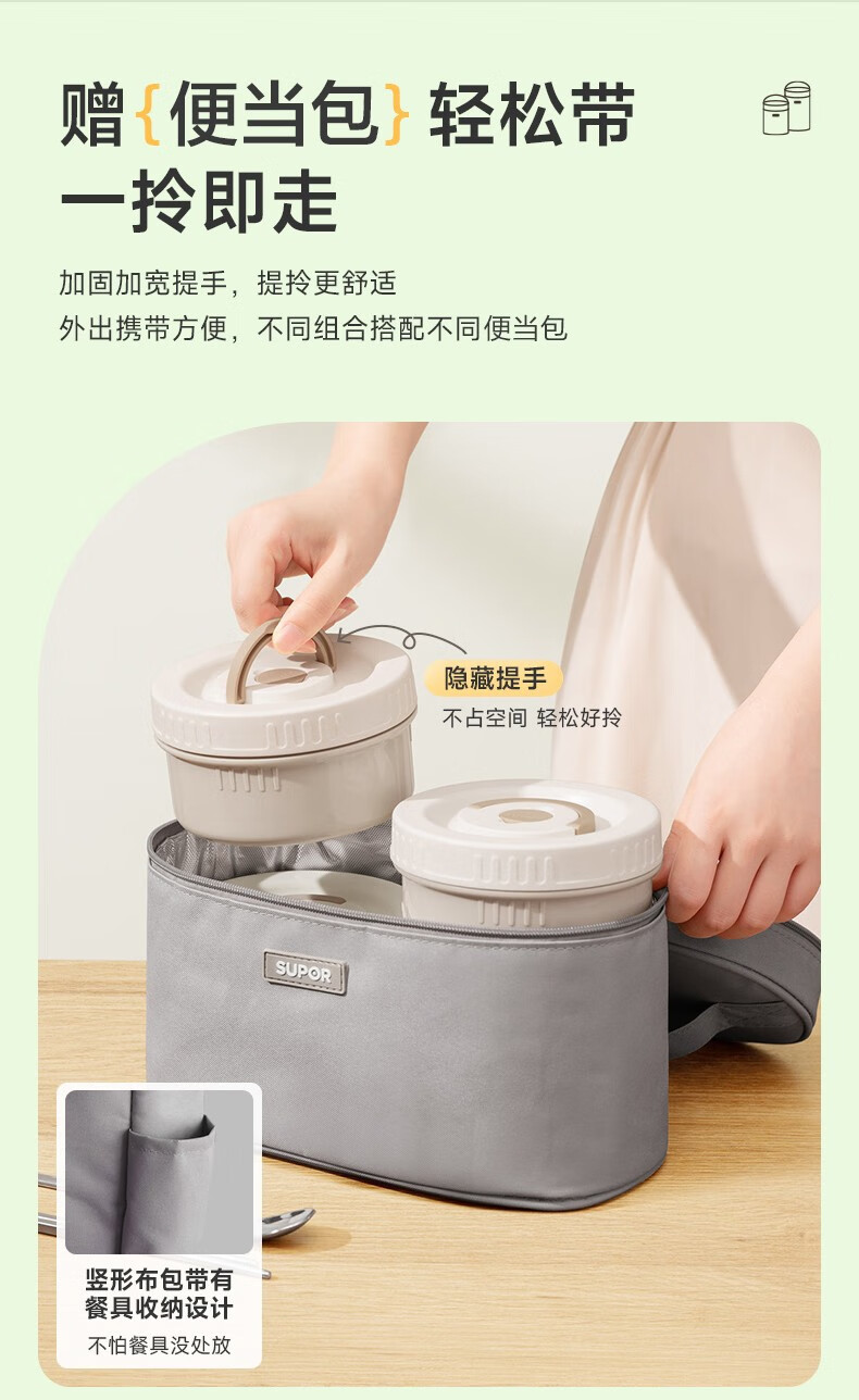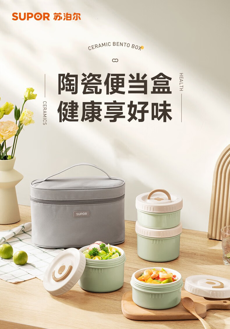 SUPOR lunch box with ceramic lining, microwave lunch box, heatable lunch box, leak-proof portable lunch box for office workers, quinoa coffee - three-piece set - with bag