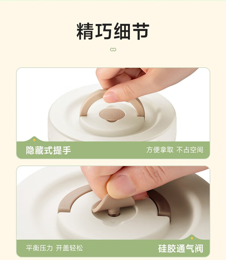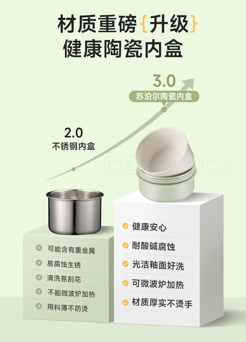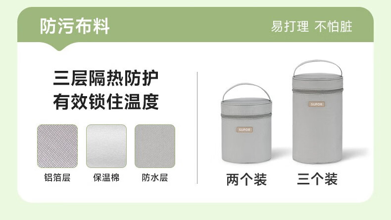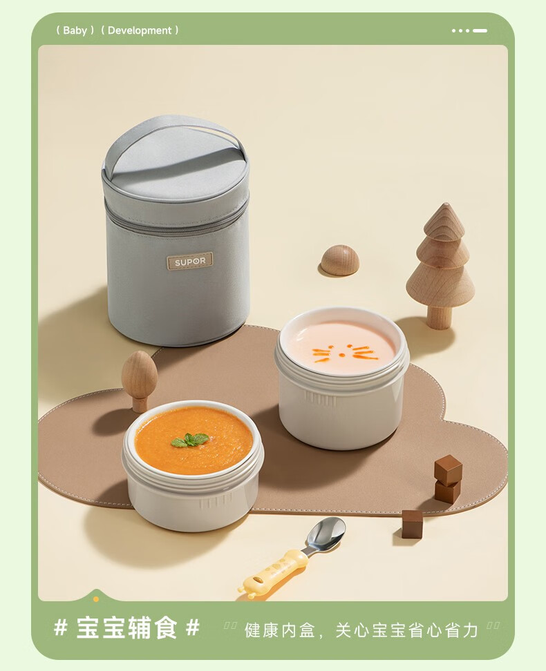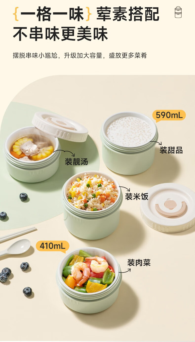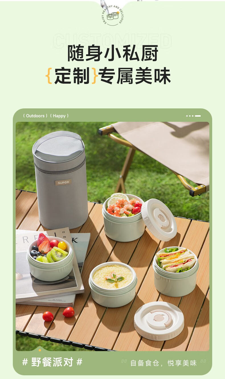 SUPOR lunch box with ceramic lining, microwave lunch box, heatable lunch box, leak-proof portable lunch box for office workers, quinoa coffee - three-piece set - with bag
