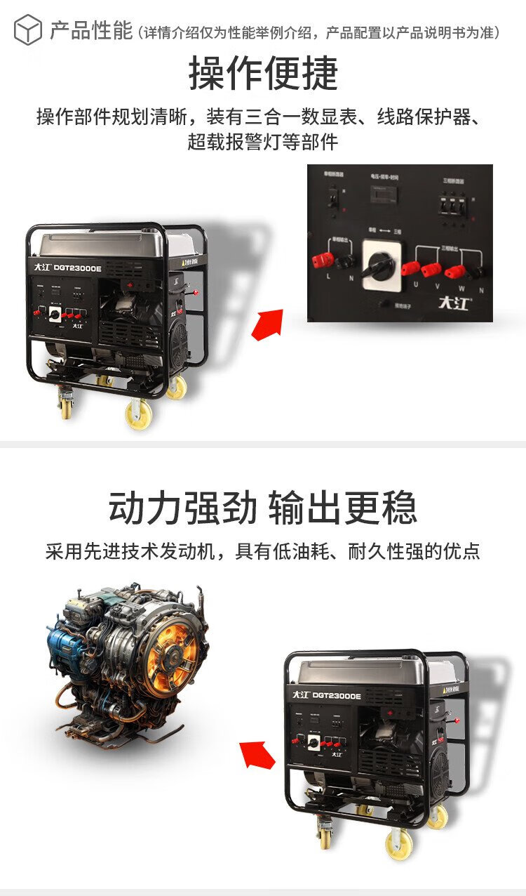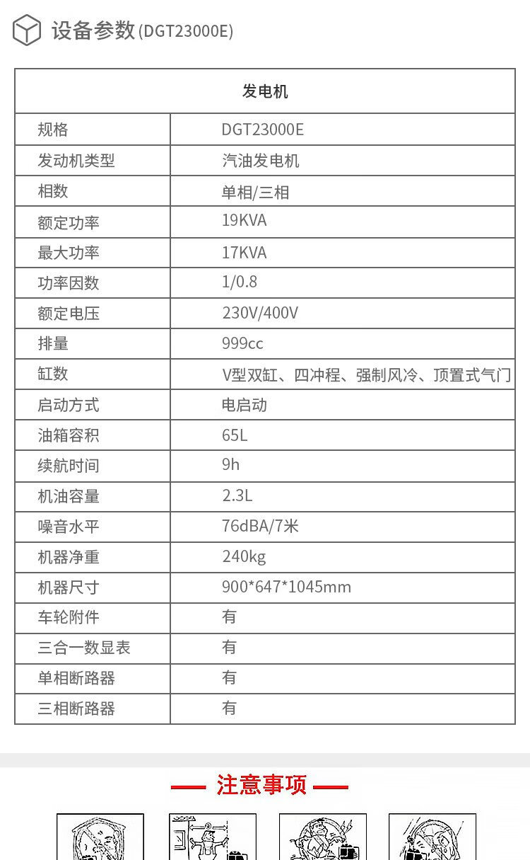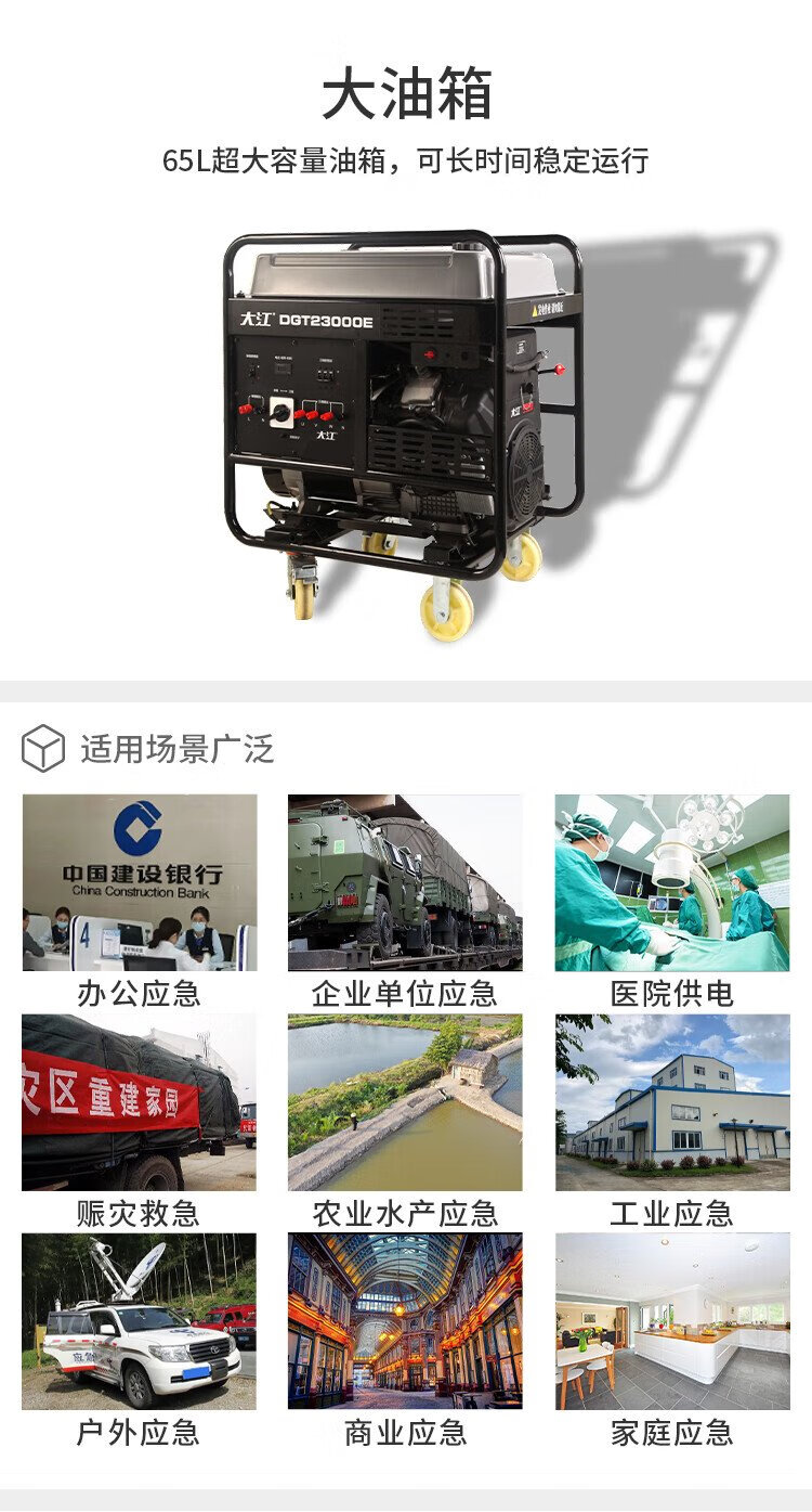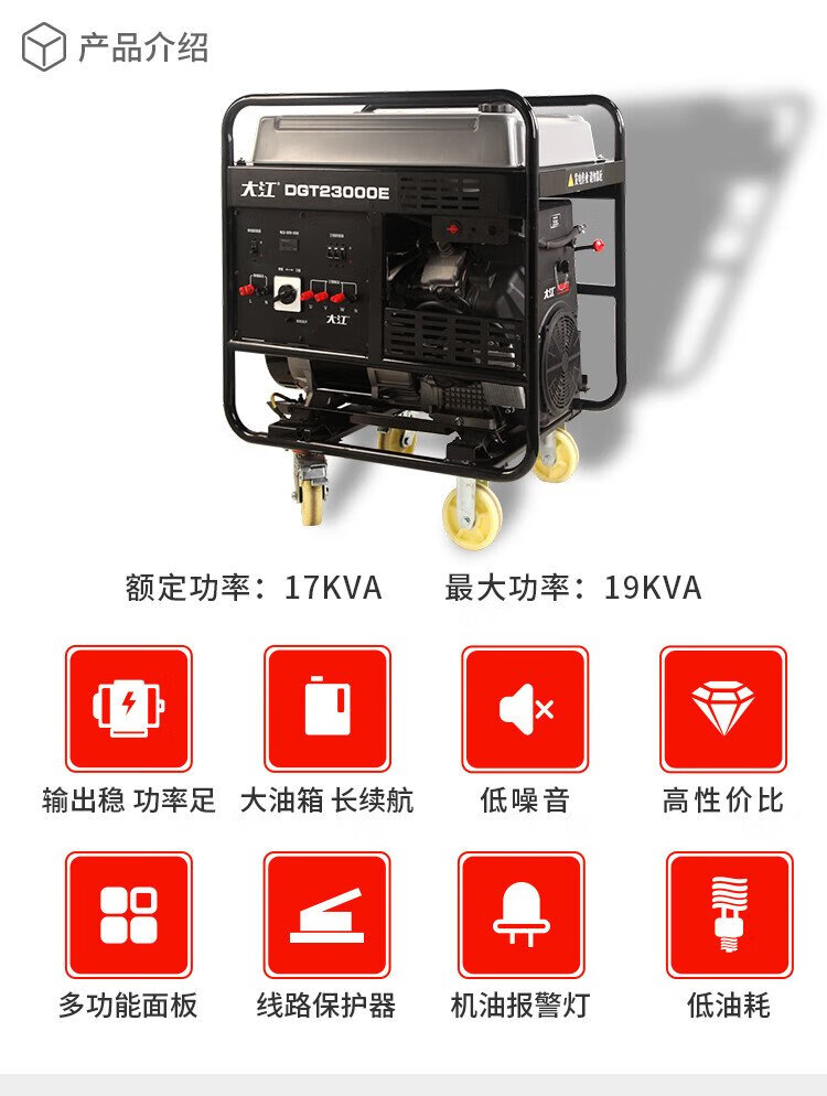 Dajiang commercial high-power 17KVA single/three-phase equal-power gasoline generator double-cylinder electric start DGT23000E