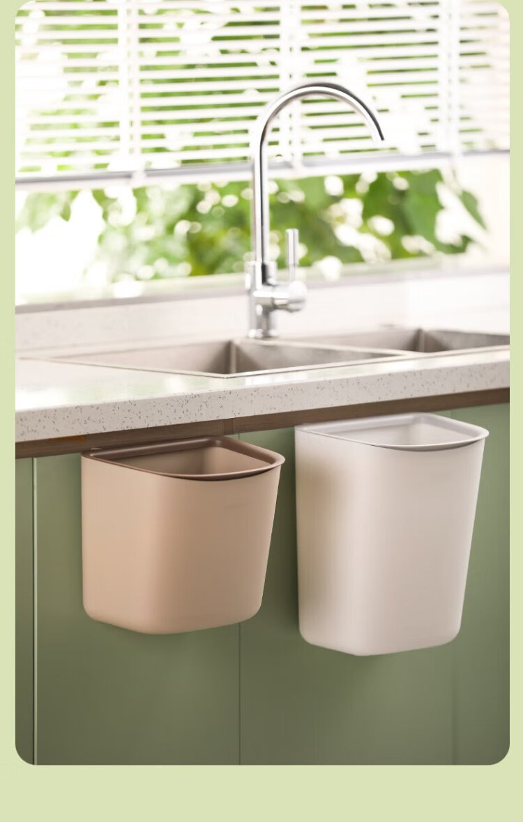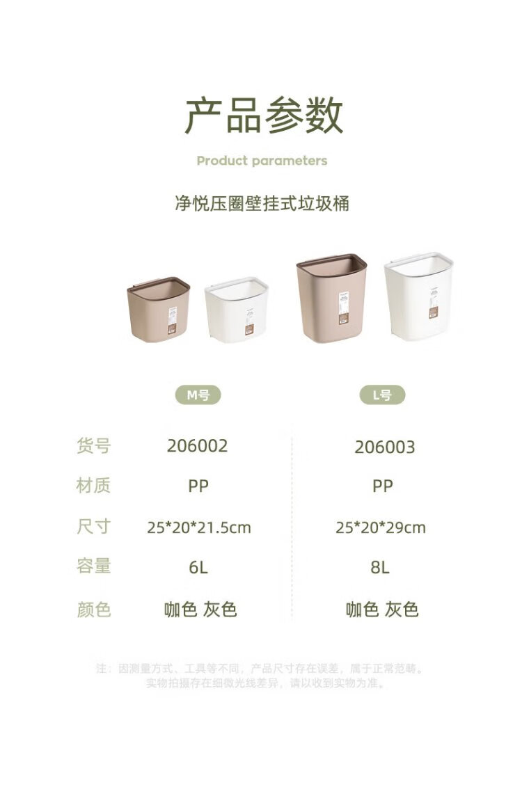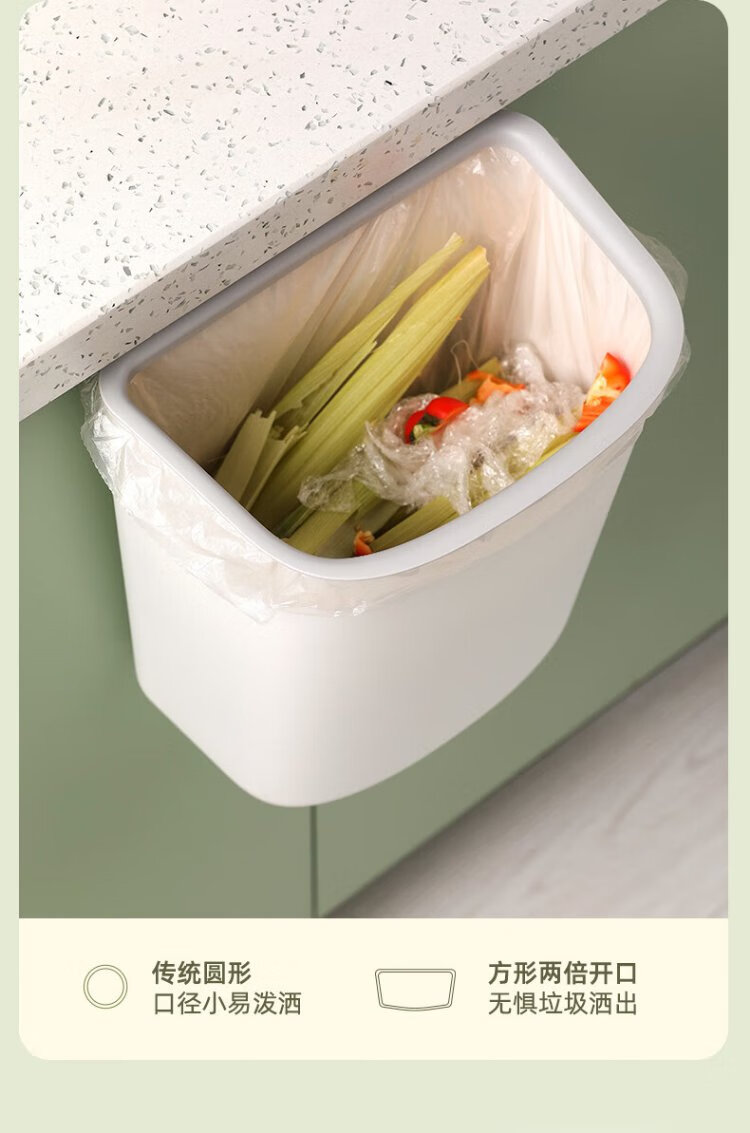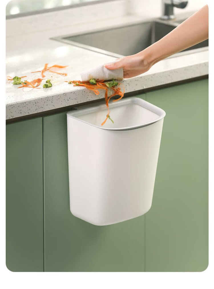 Camellia (CHAHUA) wall-mounted trash can for kitchen special pressure ring without lid garbage can hanging large diameter garbage can pressure ring wall-mounted-6L gray 1 piece