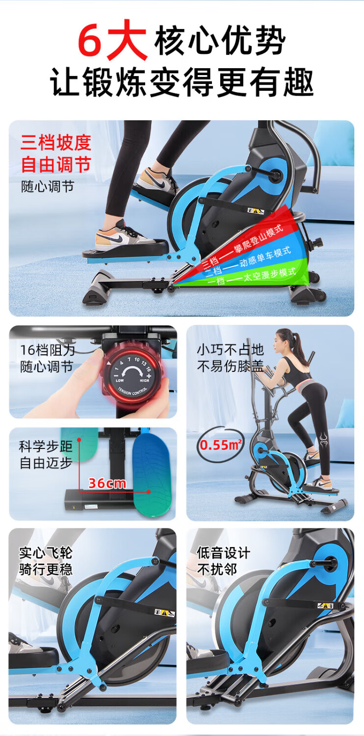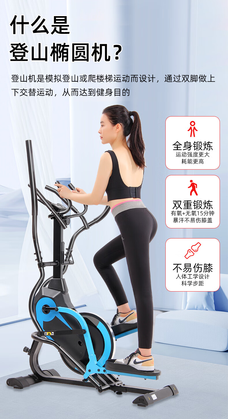 Devino elliptical machine space walking machine home fitness equipment sports small mini stepper climbing machine elliptical machine 702 blue and black three-armrest elliptical machine without installation