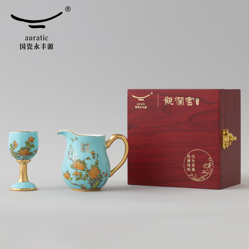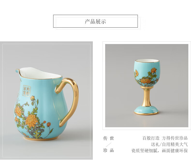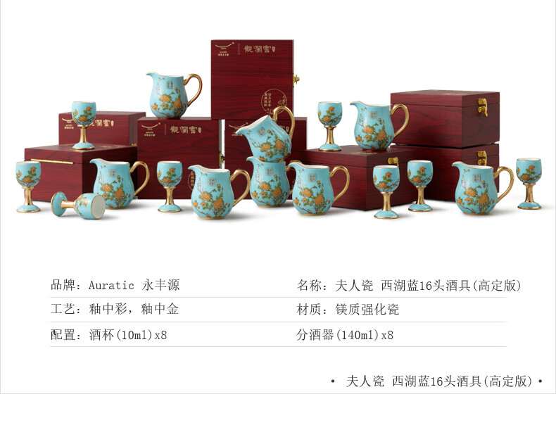 Yongfengyuan National Porcelain Yongfengyuan Lady Porcelain West Lake Blue Customized Ceramic Wine Set Wooden Box Packaging 12 pieces (6 persons)