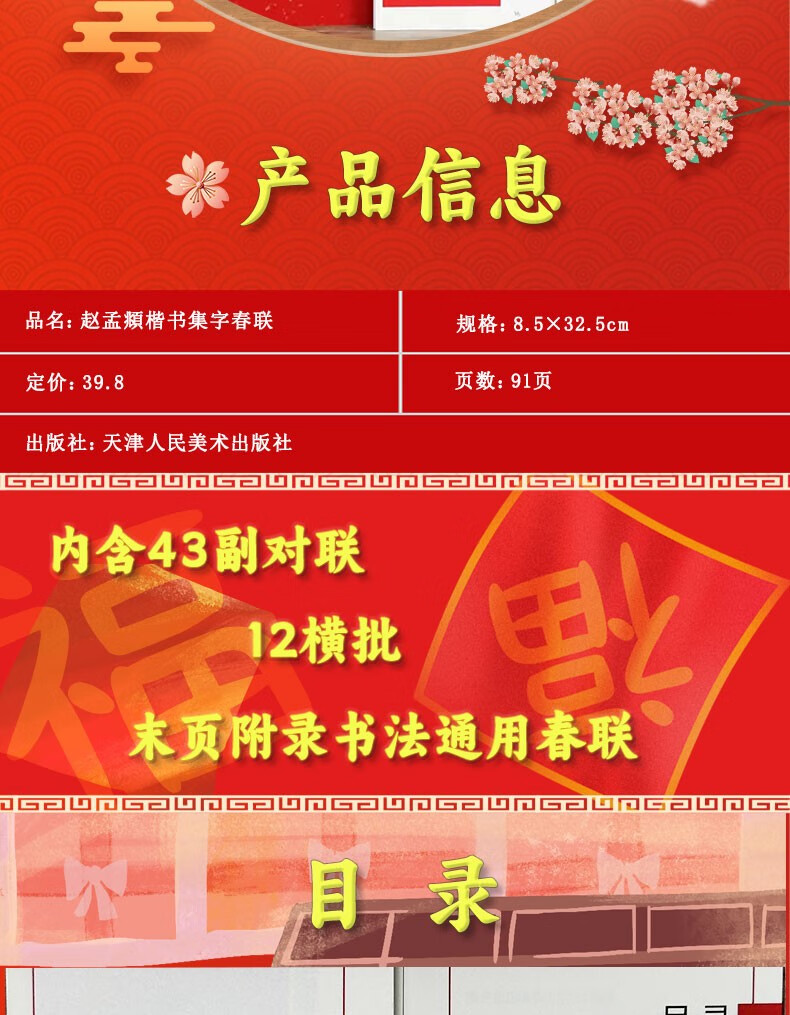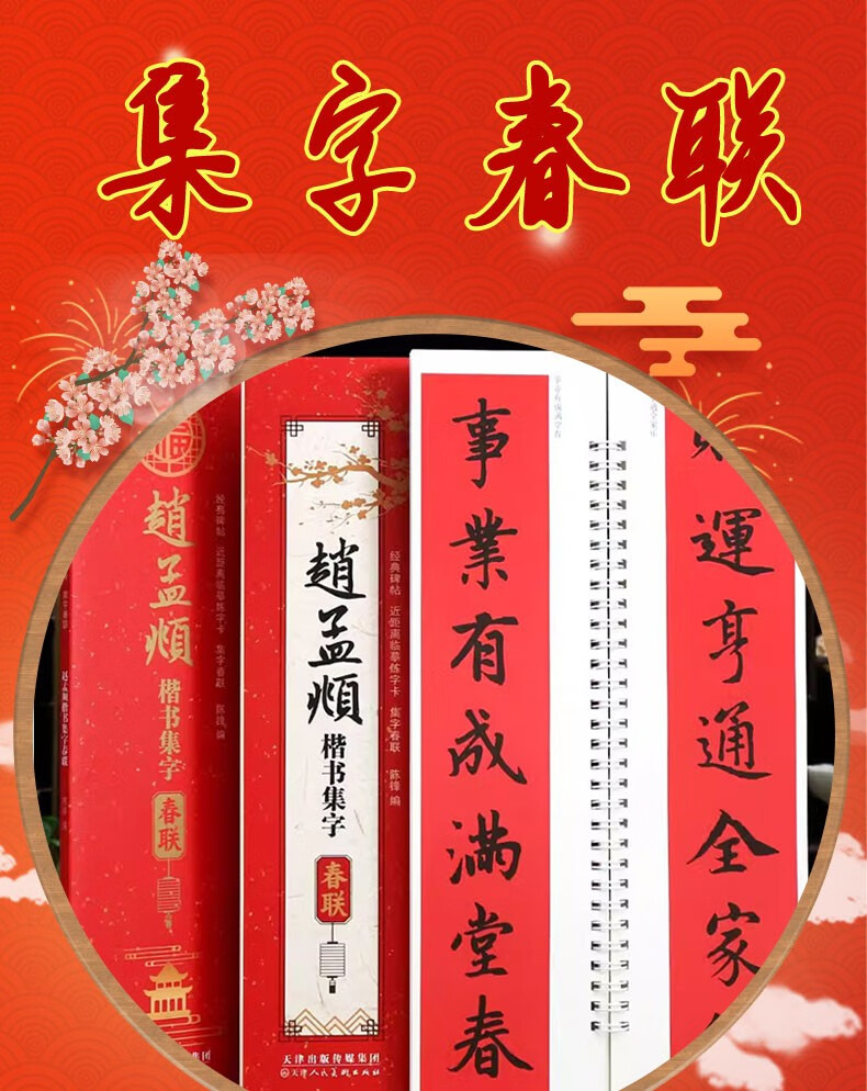 Collection of spring couplets in Zhao Mengfu's regular script, calligraphy practice cards for close copying of classic inscriptions, 43 couplets, 12 horizontal batches, calligraphy calligraphy in Zhao's regular script, with simplified marginalia, Tianjin People's Fine Arts Publishing House