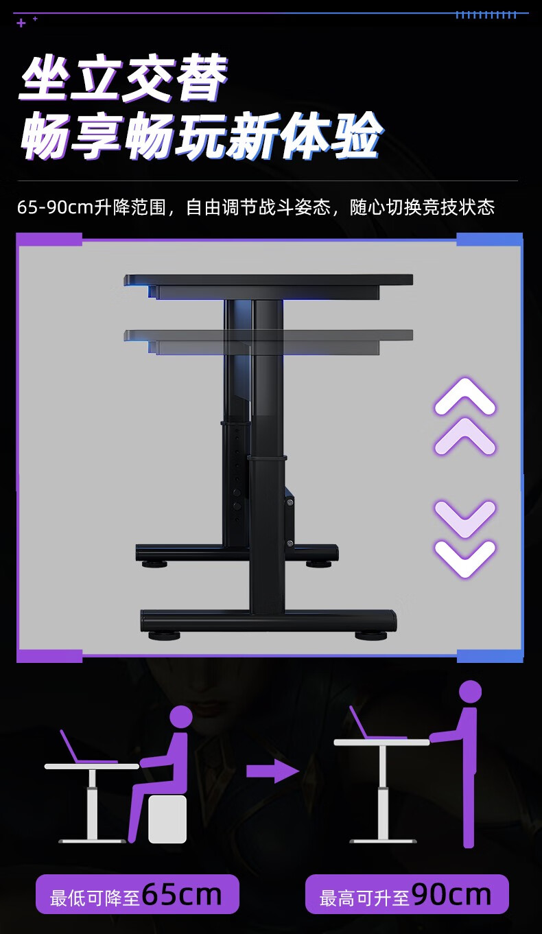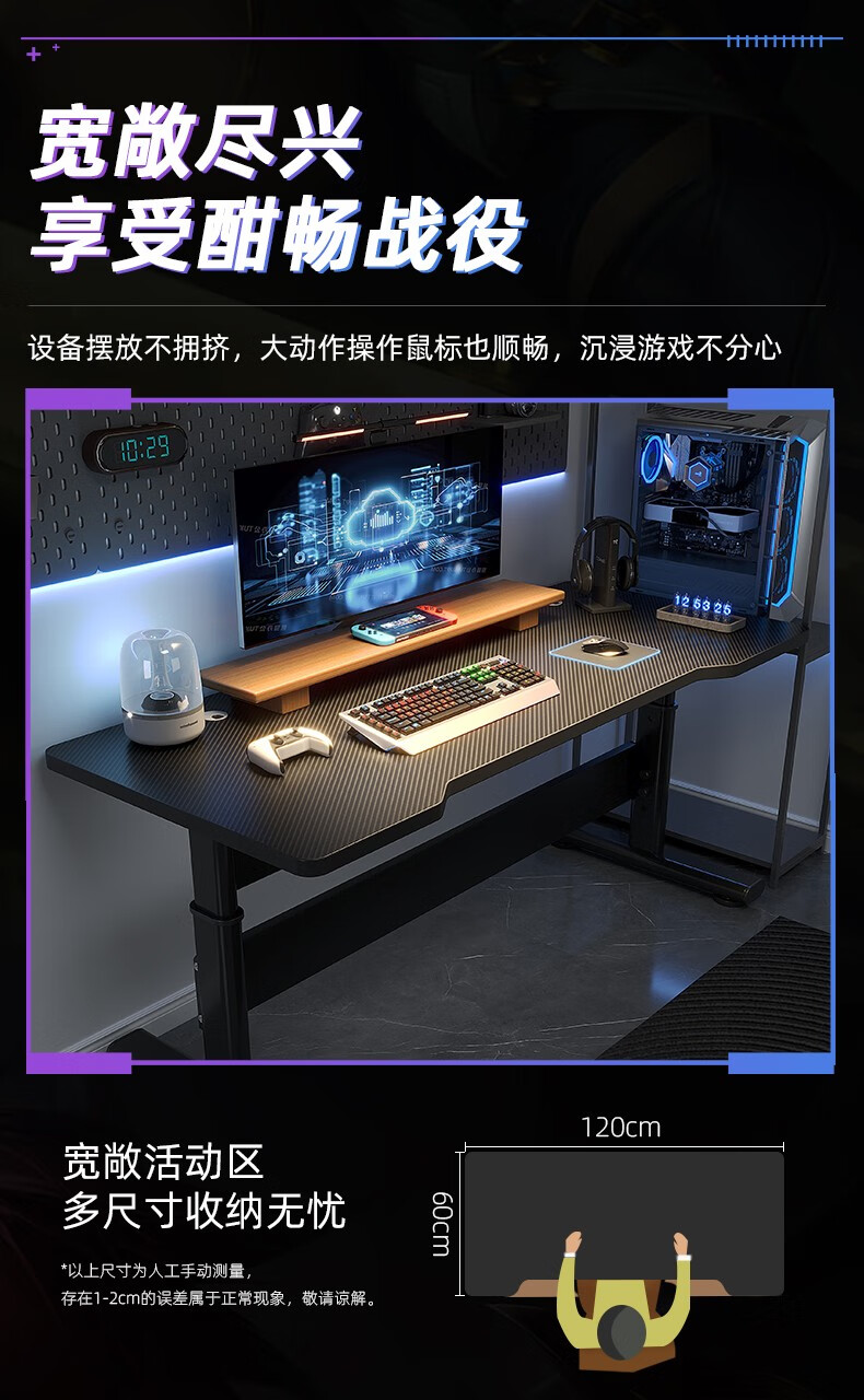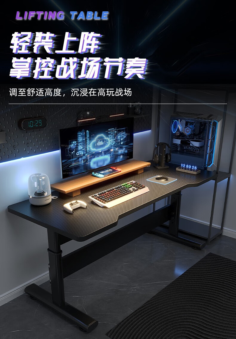 Jinxi Lift Computer Desk Desktop Gaming Table Home Desk and Chair Set Combination Office Desk Standing Game Workbench Carbon Fiber Texture Lift Gaming Table 120CM