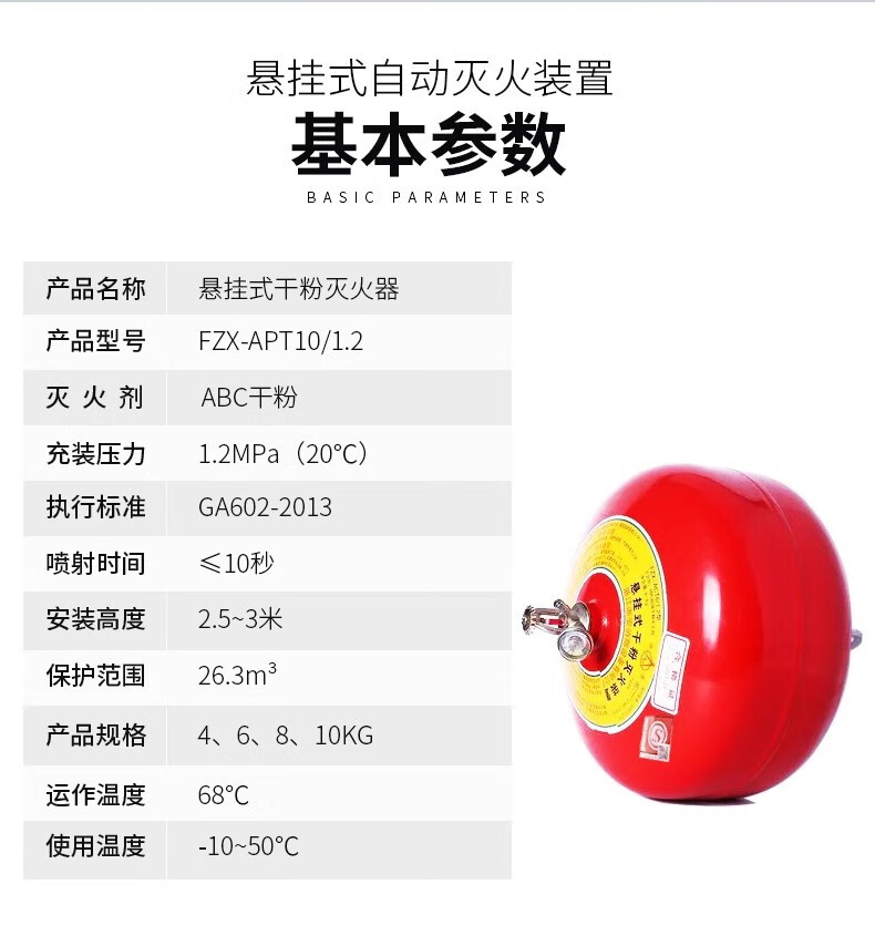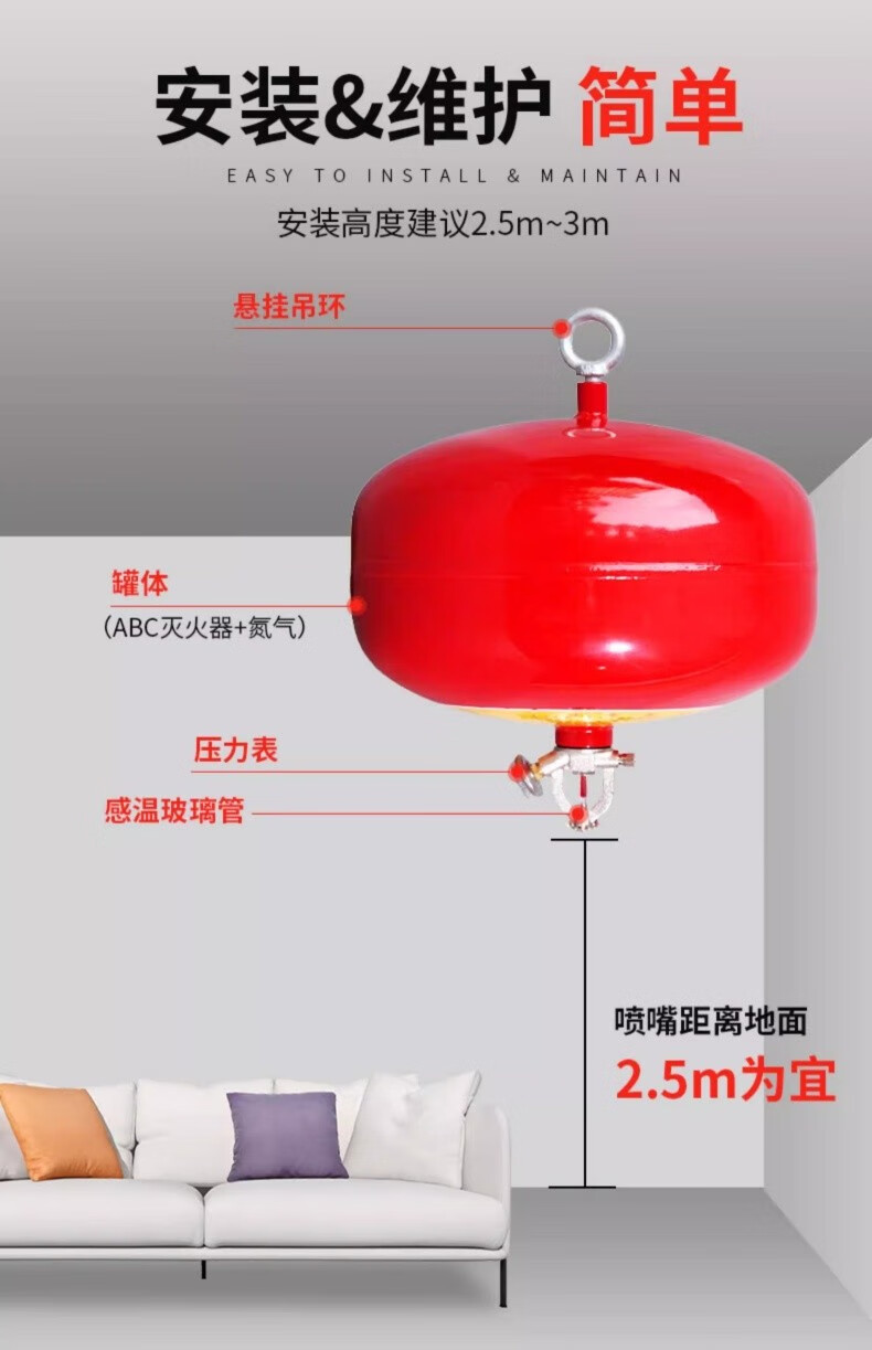 Chaoyiya automatic hanging 4/KG dry powder fire extinguisher 6/KG8 hanging lantern-type device 4kg temperature-controlled fire extinguishing ball 4kg dry powder hanging (68 degrees with hook hanging ring)