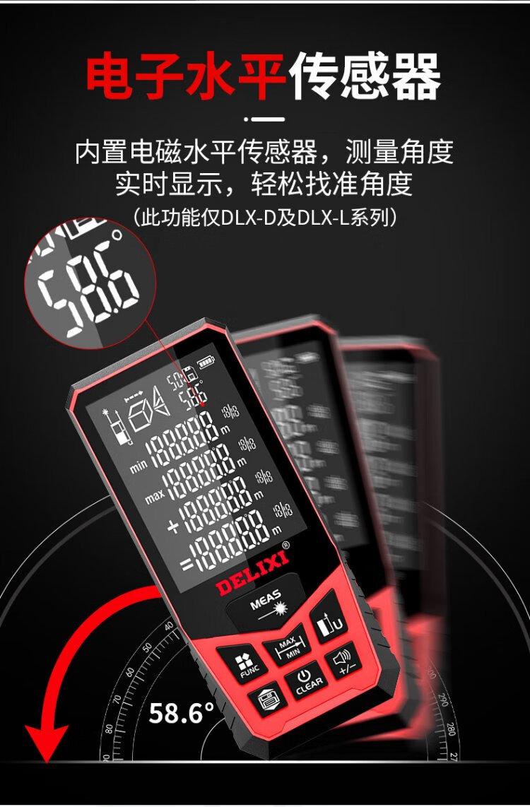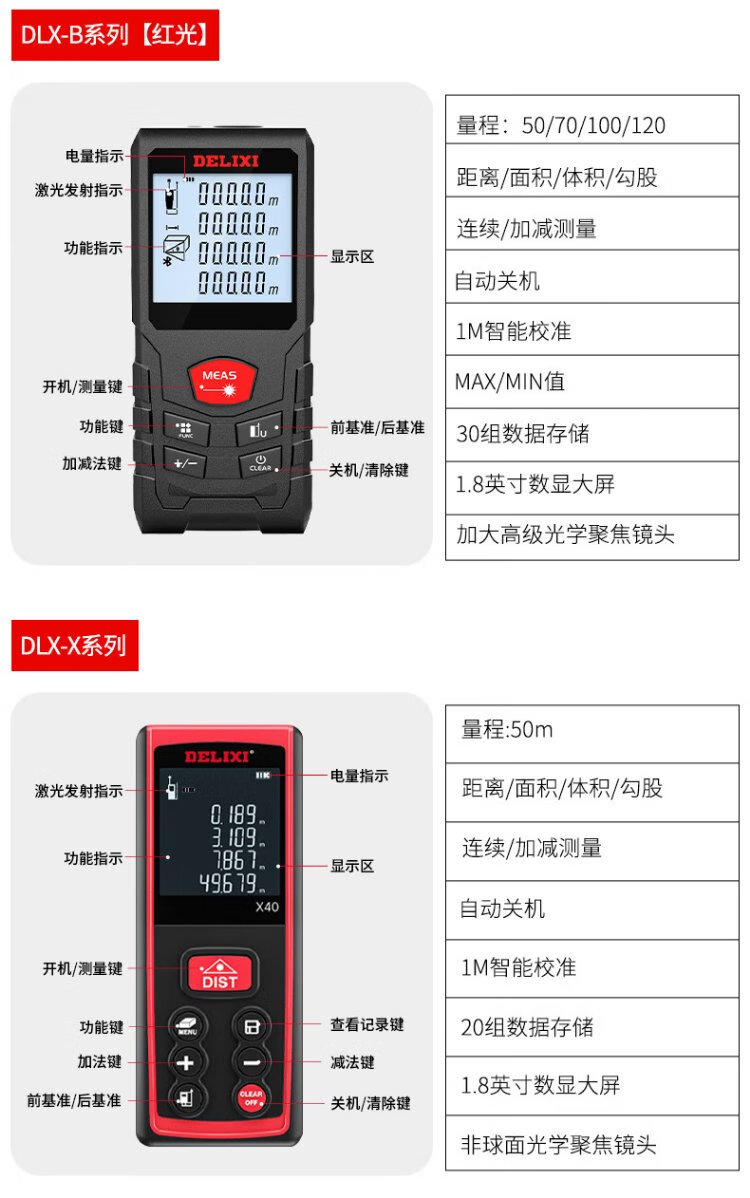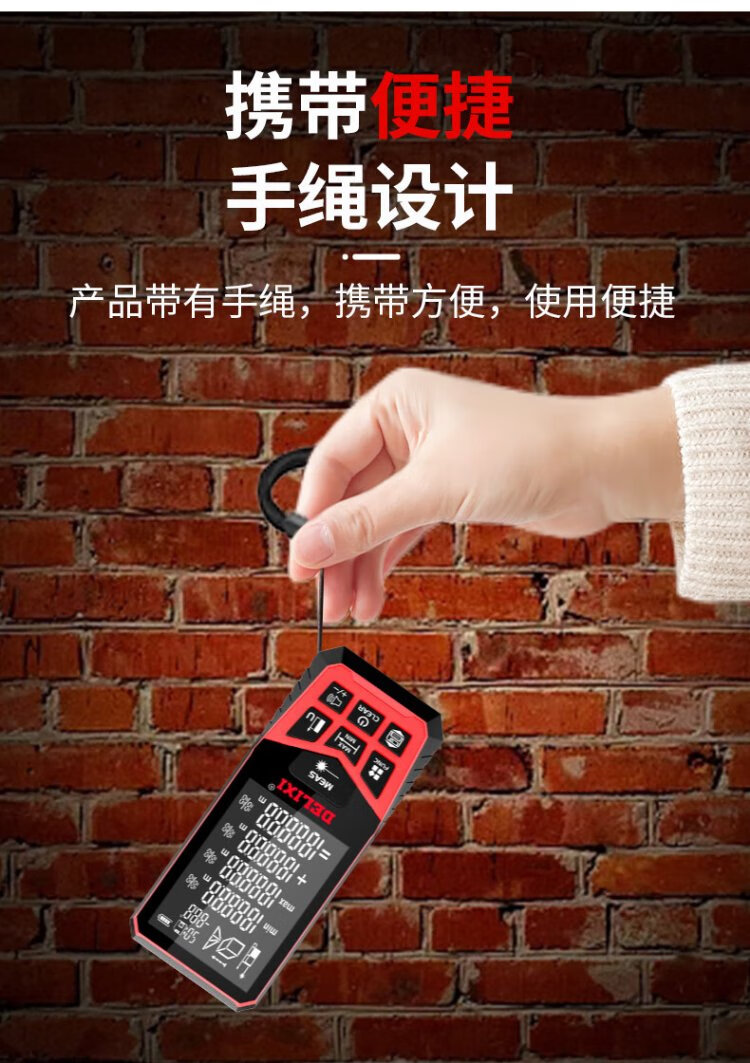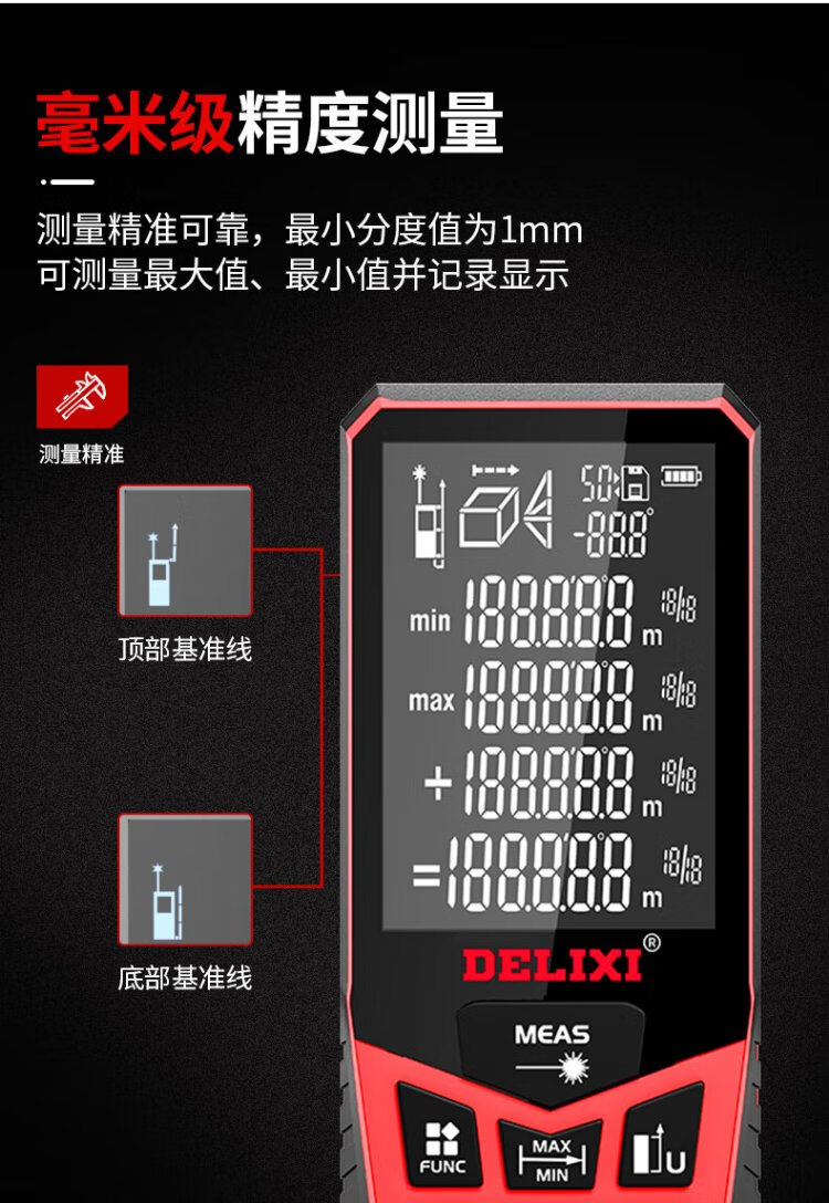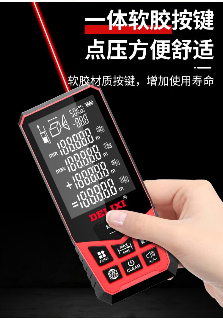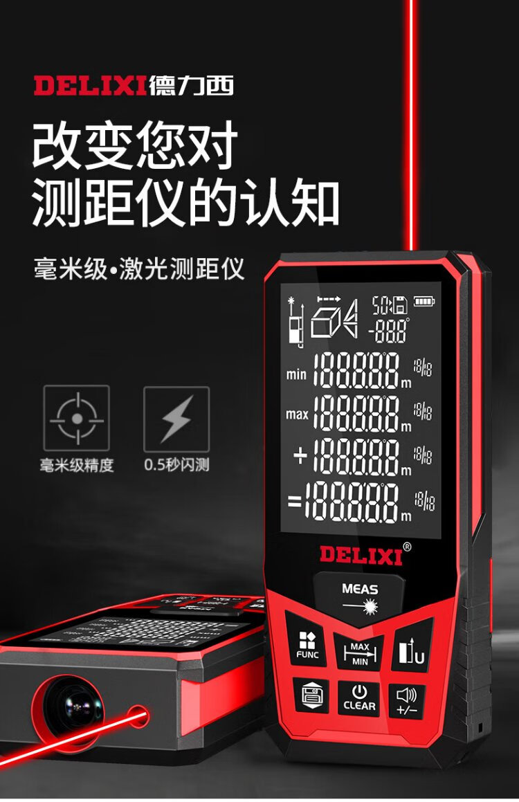 Delixi Electric Laser Distance Meter High-Precision Handheld Infrared Room Measurement Electronic Ruler Indoor and Outdoor Upgraded Range Finder Upgraded Type-Red Light Two-Way Level Bubble 50 Meters
