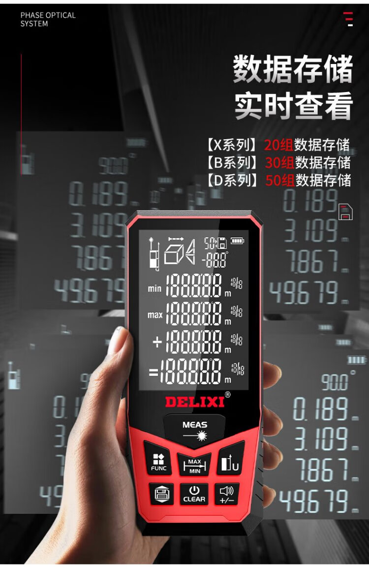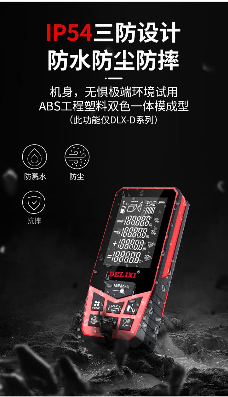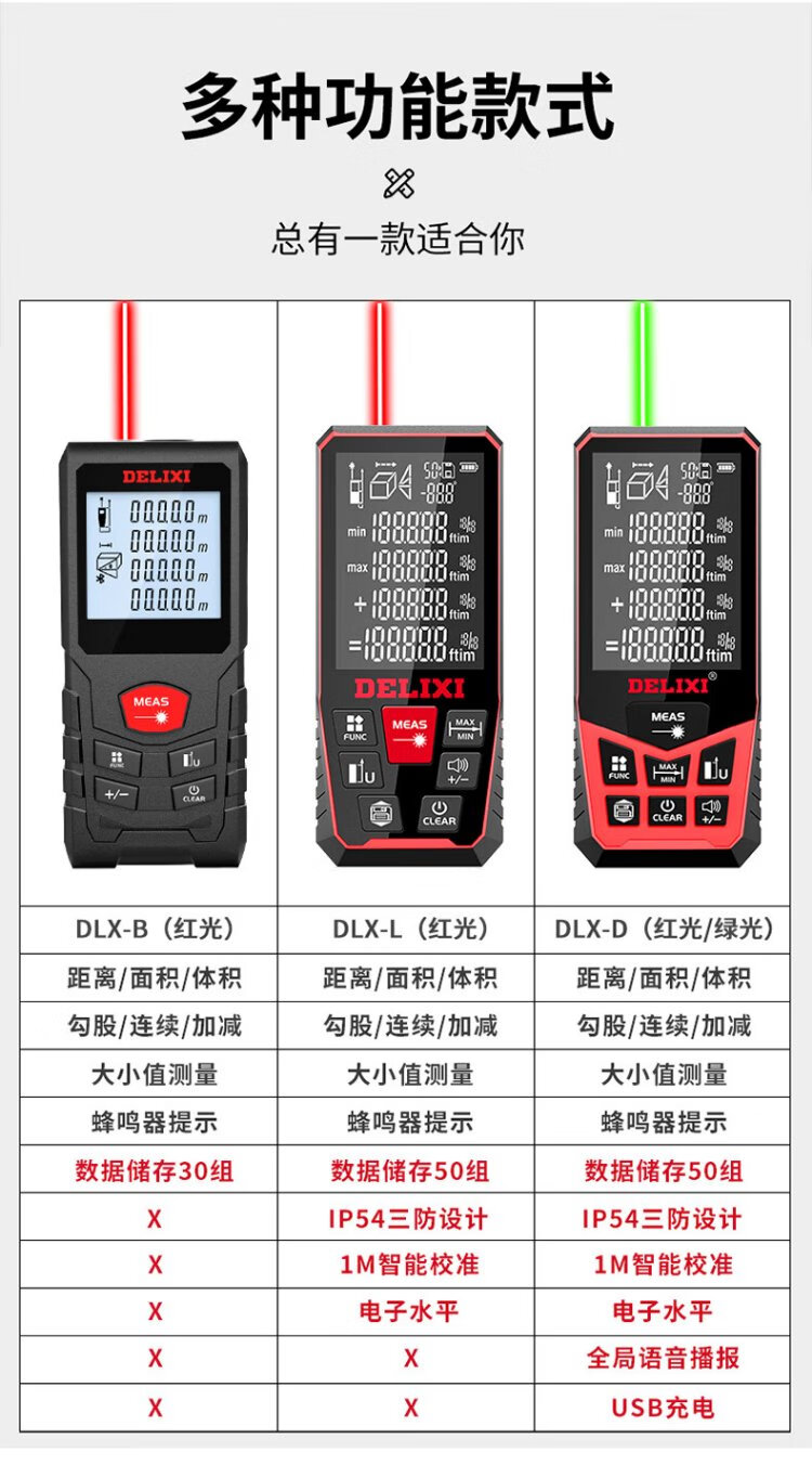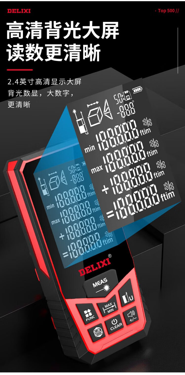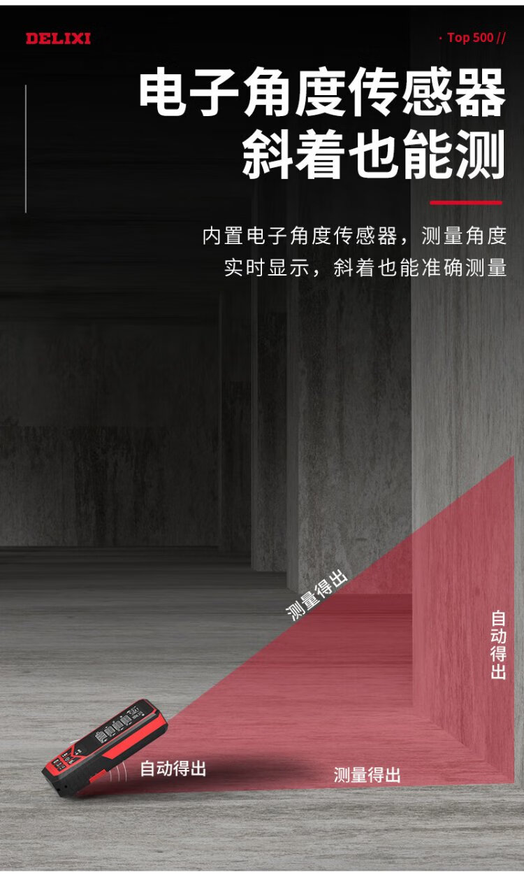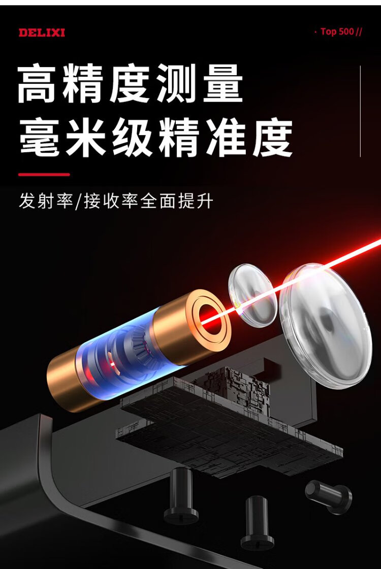 Delixi Electric Laser Distance Meter High-Precision Handheld Infrared Room Measurement Electronic Ruler Indoor and Outdoor Upgraded Range Finder Upgraded Type-Red Light Two-Way Level Bubble 50 Meters