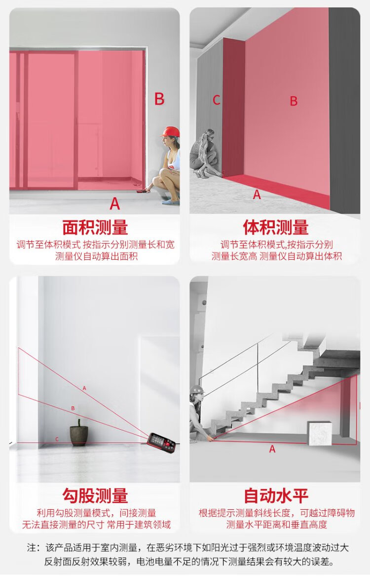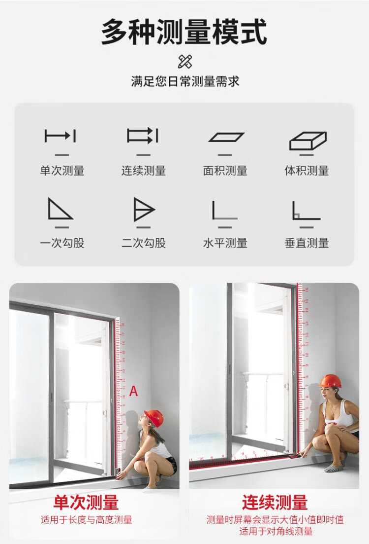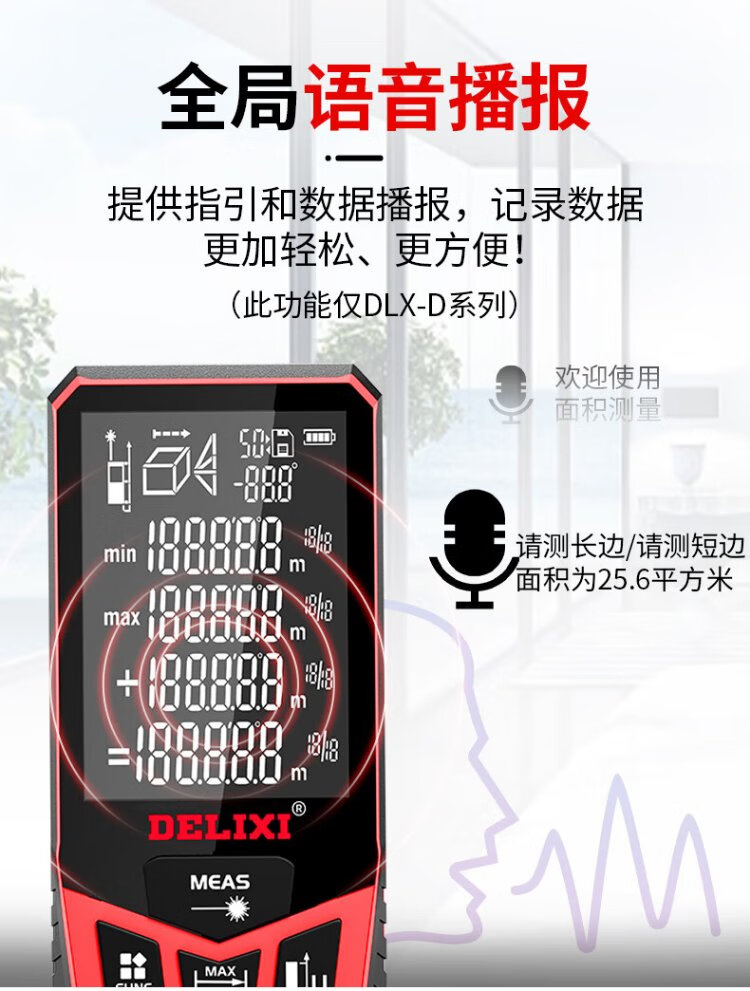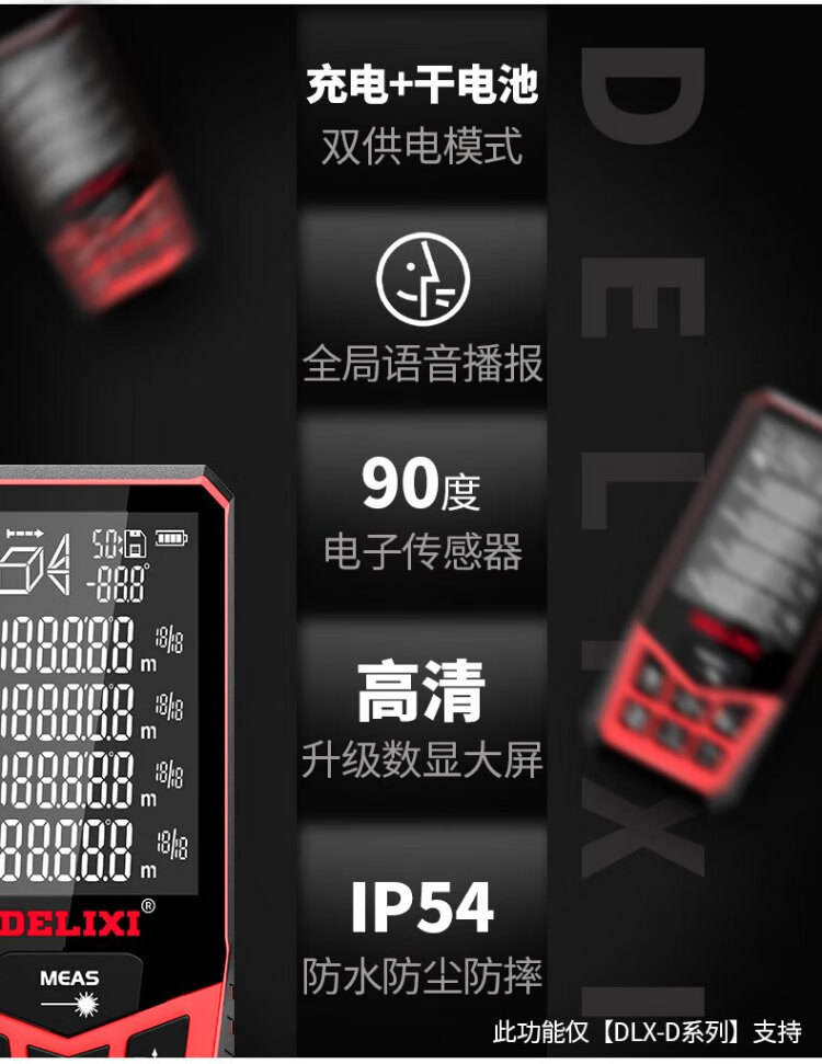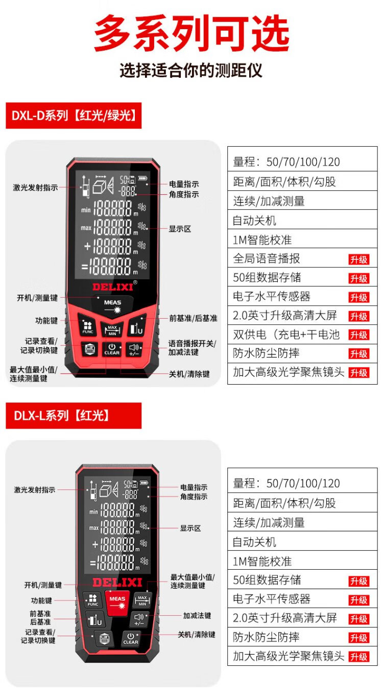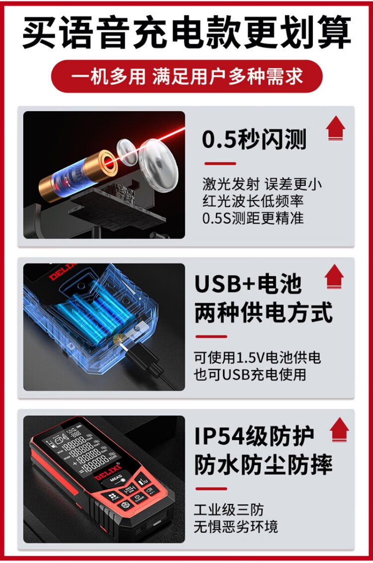 Delixi Electric Laser Distance Meter High-Precision Handheld Infrared Room Measurement Electronic Ruler Indoor and Outdoor Upgraded Range Finder Upgraded Type-Red Light Two-Way Level Bubble 50 Meters