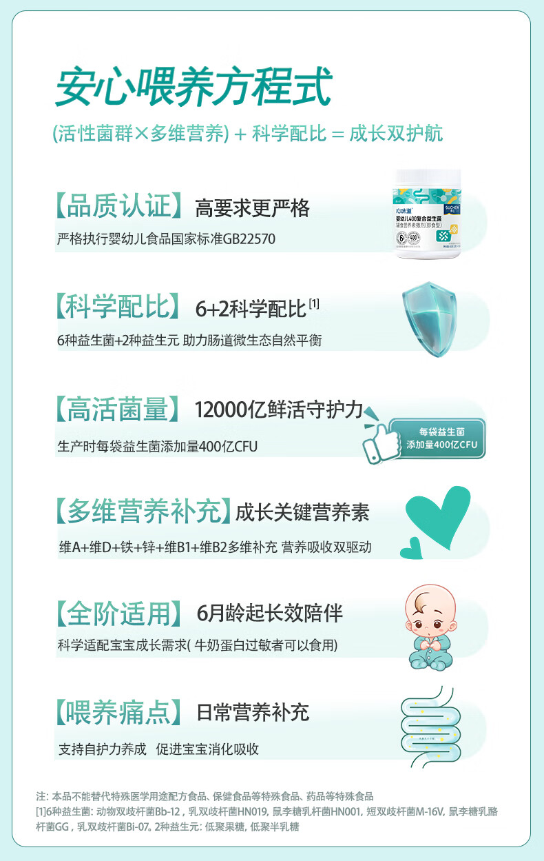 Suchen Six-Link Probiotics for Infants and Children Bifidobacterium Bb-12+HN019 Care for Gastrointestinal and Spleen Weakness 6-60 Months Six-Link Probiotics (Full Size) 30 Sticks*1 Can