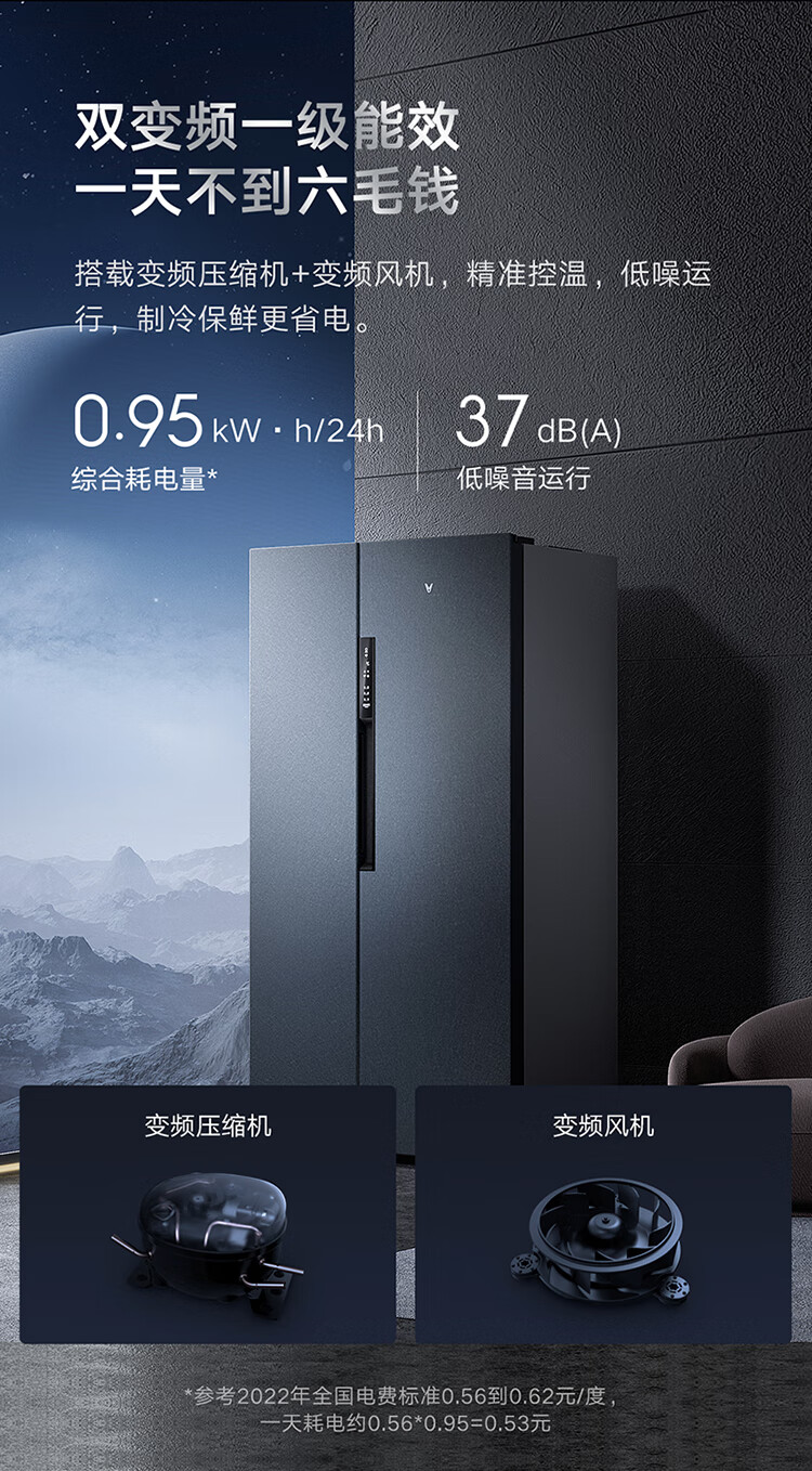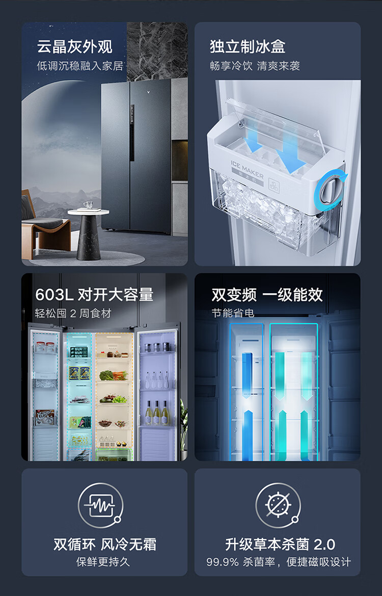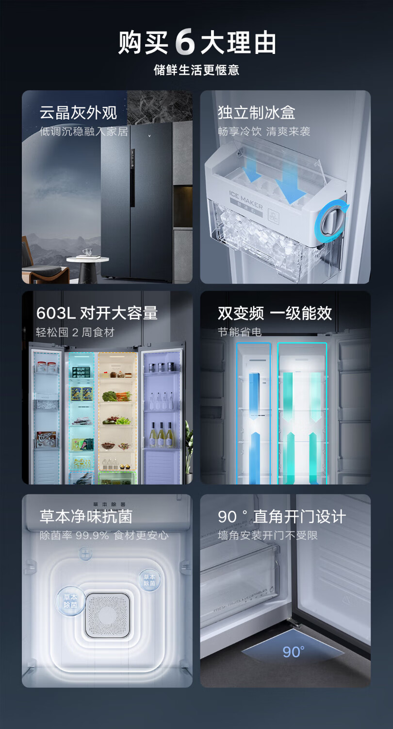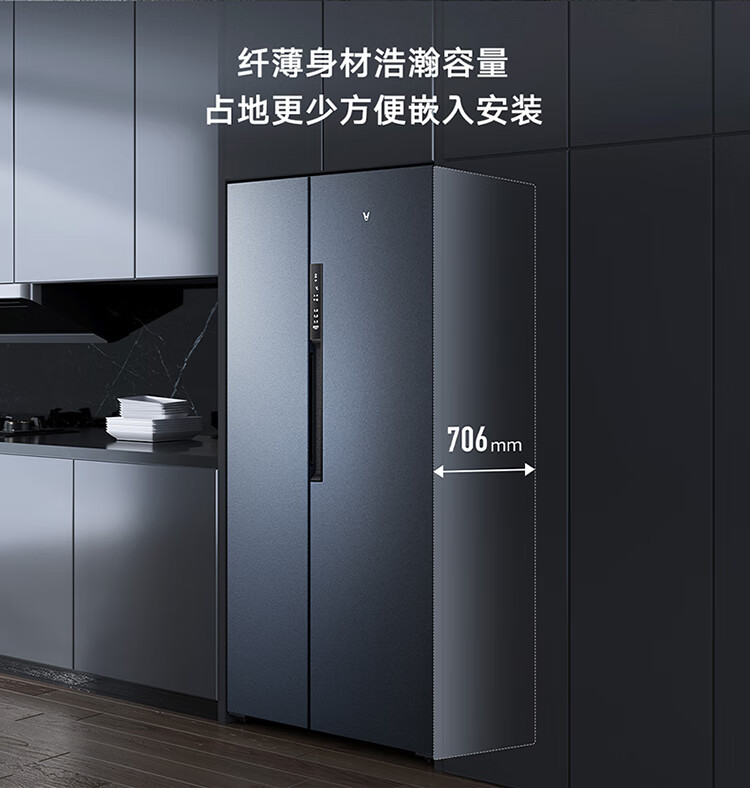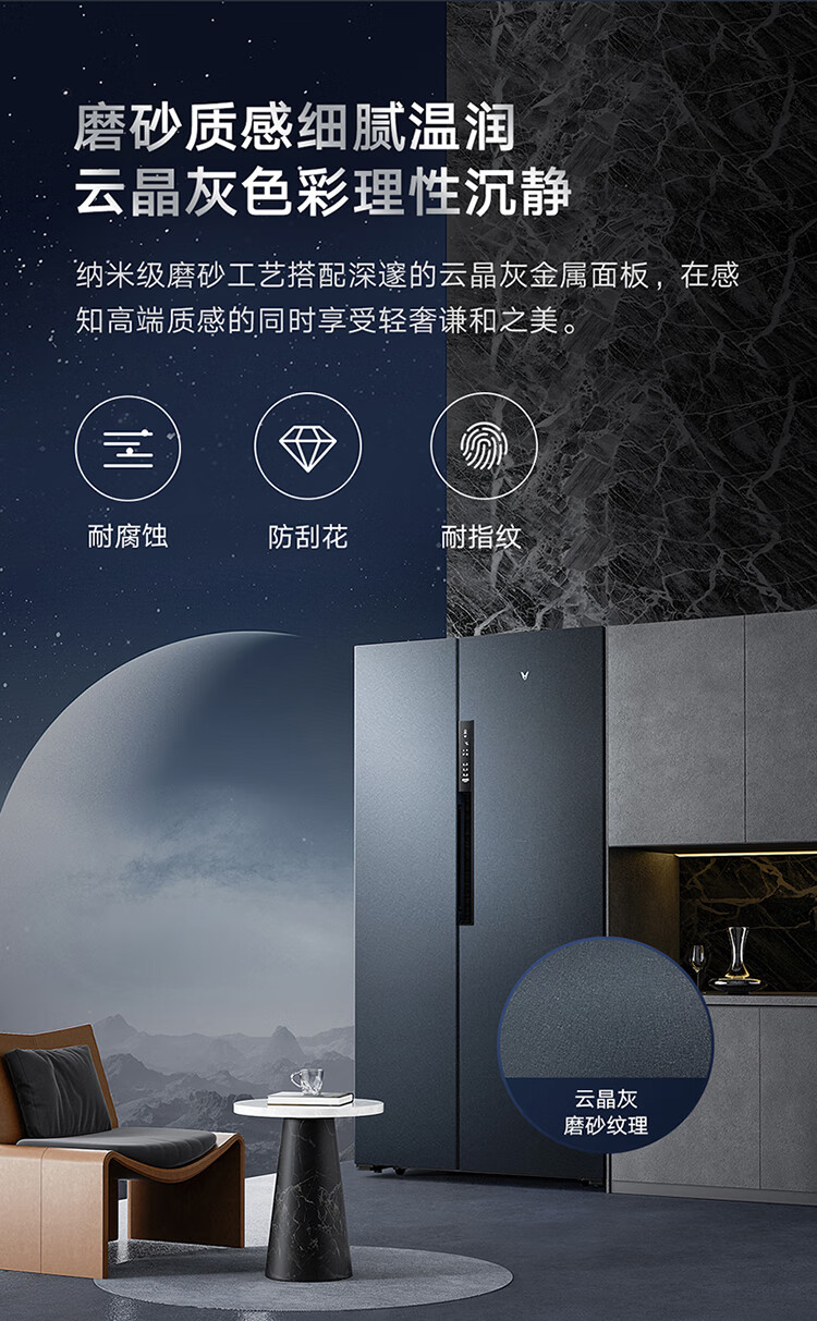 VIOMI refrigerator double door 603L large capacity with ice making function first-class energy efficiency household intelligent variable frequency air-cooled frost-free ice box embedded side-by-side refrigerator Yunjing Gray