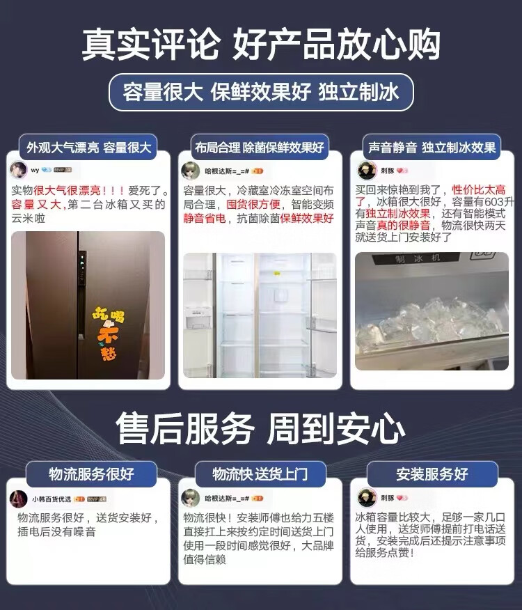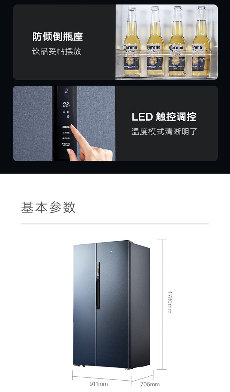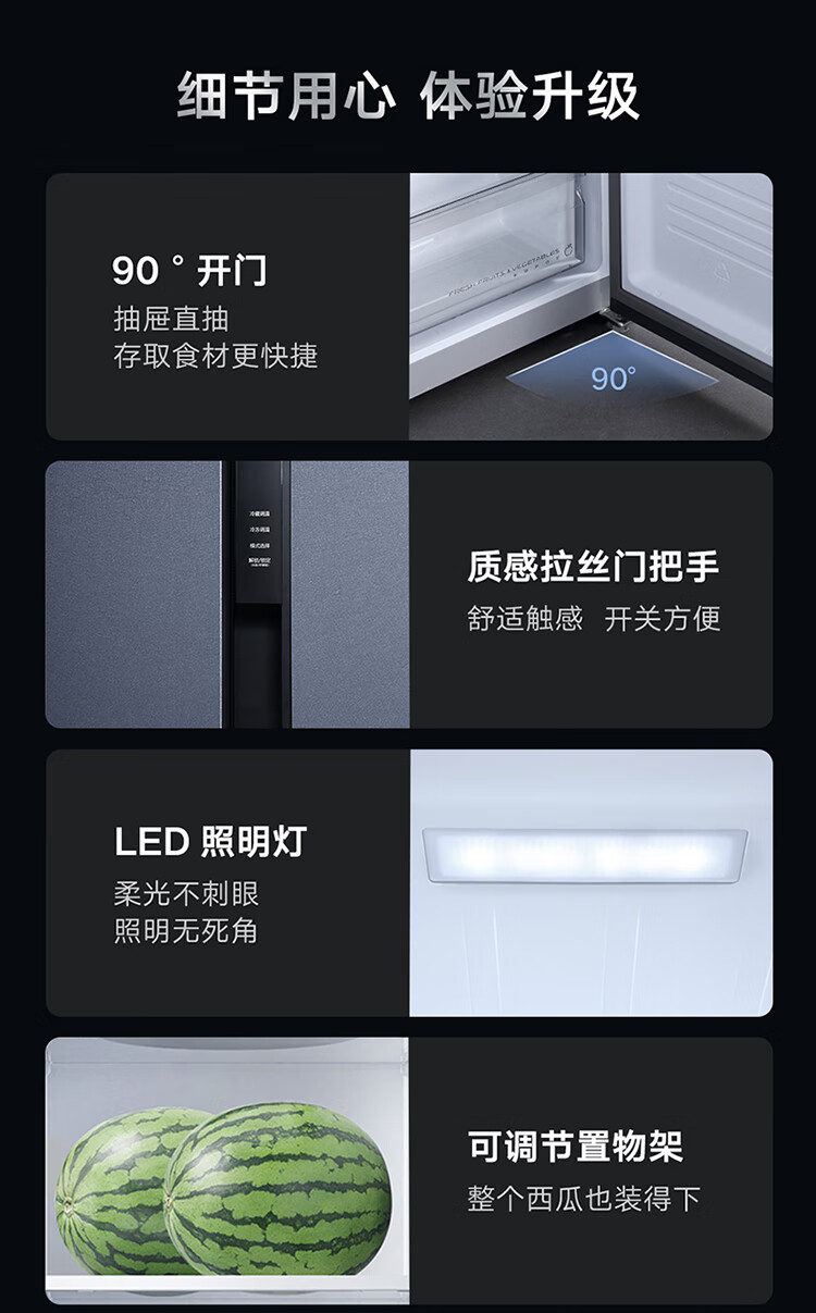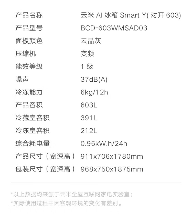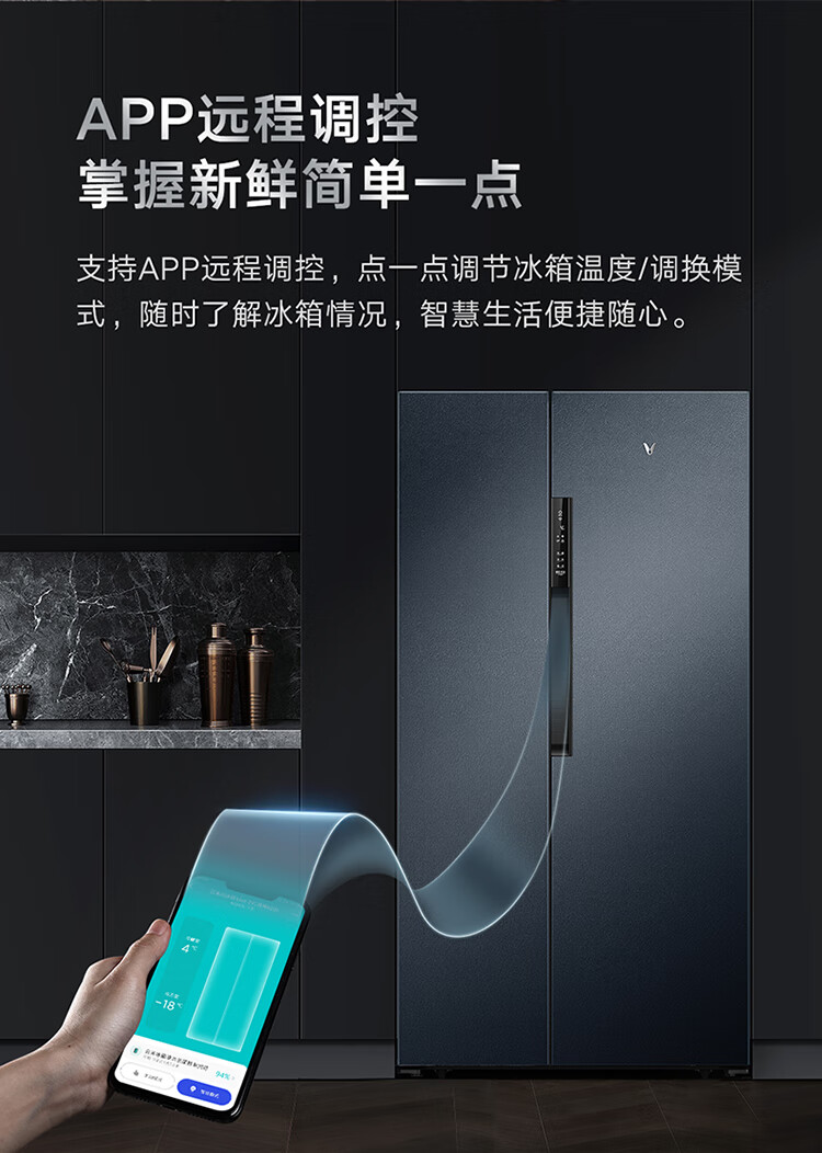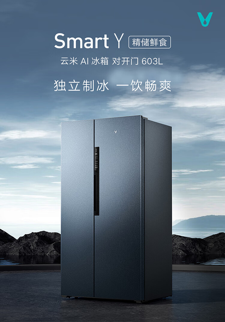 VIOMI refrigerator double door 603L large capacity with ice making function first-class energy efficiency household intelligent variable frequency air-cooled frost-free ice box embedded side-by-side refrigerator Yunjing Gray