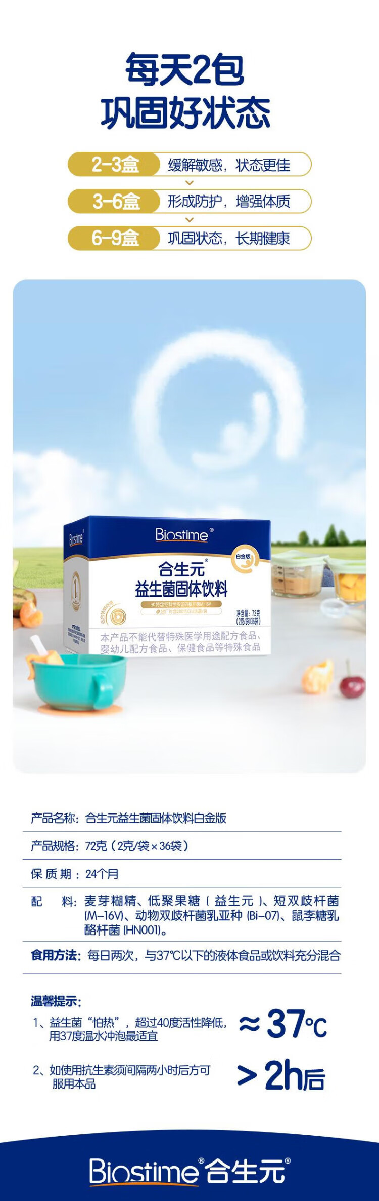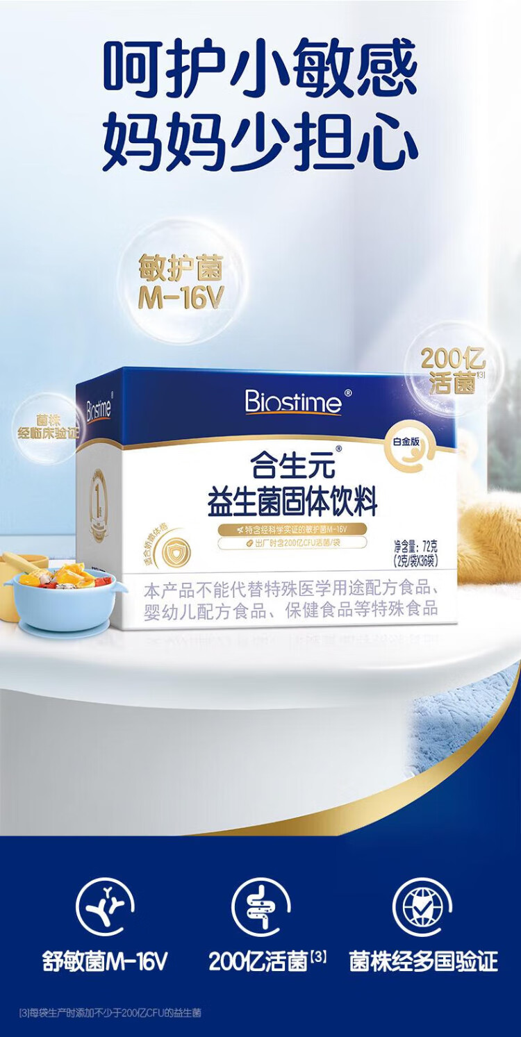 BIOSTIME Platinum Edition Probiotics Sensitive Savior Star Salmonella M16V Care for Sensitives Platinum Edition 36 Bags 36 Bags*2 Boxes